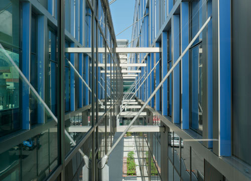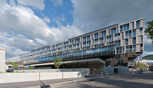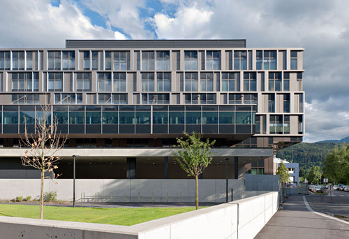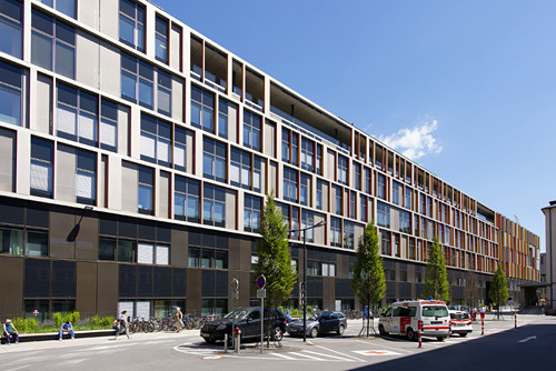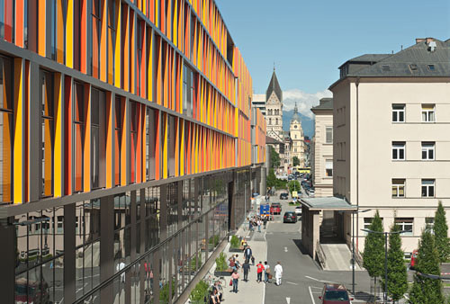 Eine der größten Baumaßnahmen, die in den vergangenen Jahren auf dem Innsbrucker Klinikareal durchgeführt wurde, ist die kombinierte Kinder- und Herzklinik. Zwischen der Kaiser-Josef-Straße im Osten und der Innerkoflerstraße im Westen erstreckt sich das KHZ – Kinder- und Herzzentrum des Landeskrankenhauses Innsbruck als langgestreckter Riegel, der städtebaulich die Kanten der vorhandenen Bebauungen aufnimmt und maßstäblich zwischen den verschiedenen Klinikhochbauten und dem angrenzenden Stadtviertel mit seiner Gründerzeitbebauung vermittelt.Das Grundkonzept stammt von Nickl & Partner, die 2005 den international ausgeschriebenen Architekturwettbewerb gewannen und auch 2008 den ersten Bauabschnitt (KHZ Ost) – eine dreigeschossige Aufstockung und einen daran anschließenden sechsgeschossigen Neubau, umhüllt von einer mehrschichtigen Fassade aus Faltlamellen – realisierten. Der zweite Bauabschnitt (KHZ West) entstand zwischen 2011 und 2015, das Ursprungskonzept wurde dabei von der Architekturhalle Wulz-König in Zusammenarbeit mit Malojer Baumanagement überarbeitet und den Nutzungsanforderungen und Wünschen der Bauherren entsprechend angepasst.