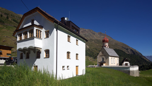 Das zur Gemeinde Sölden im Ötztal gehörende kleine Dorf Vent liegt auf ca. 1.900 m Höhe am Ende eines Tals. Wie im gesamten Ötztal spielt auch hier der Tourismus eine nicht unwesentliche Rolle und prägt durch die damit im Zusammenhang stehenden Bauten das Ortsbild. In diesem Zusammenhang erscheint es um so wichtiger, dass mit der Entscheidung gegen den Abriss und für die Sanierung des historischen Widums ein Stück ursprüngliche Authenzität erhalten und revitalisiert werden konnte.Wesentliches Ziel bei der Sanierung des mitten im Dorf gelegenen Gebäudes war es, dessen ursprünglichen Charakter wiederherzustellen. In respektvollem Umgang mit dem Bestand wurde das Widum entsprechend schlicht und mit viel Sensibilität restauriert. Dabei wurden die das Gebäude prägenden Materialien Holz sowie weiß verputztes Mauerwerk weiterverwendet und ergänzt um raumabschließende Bauteile aus Metall und Glas.