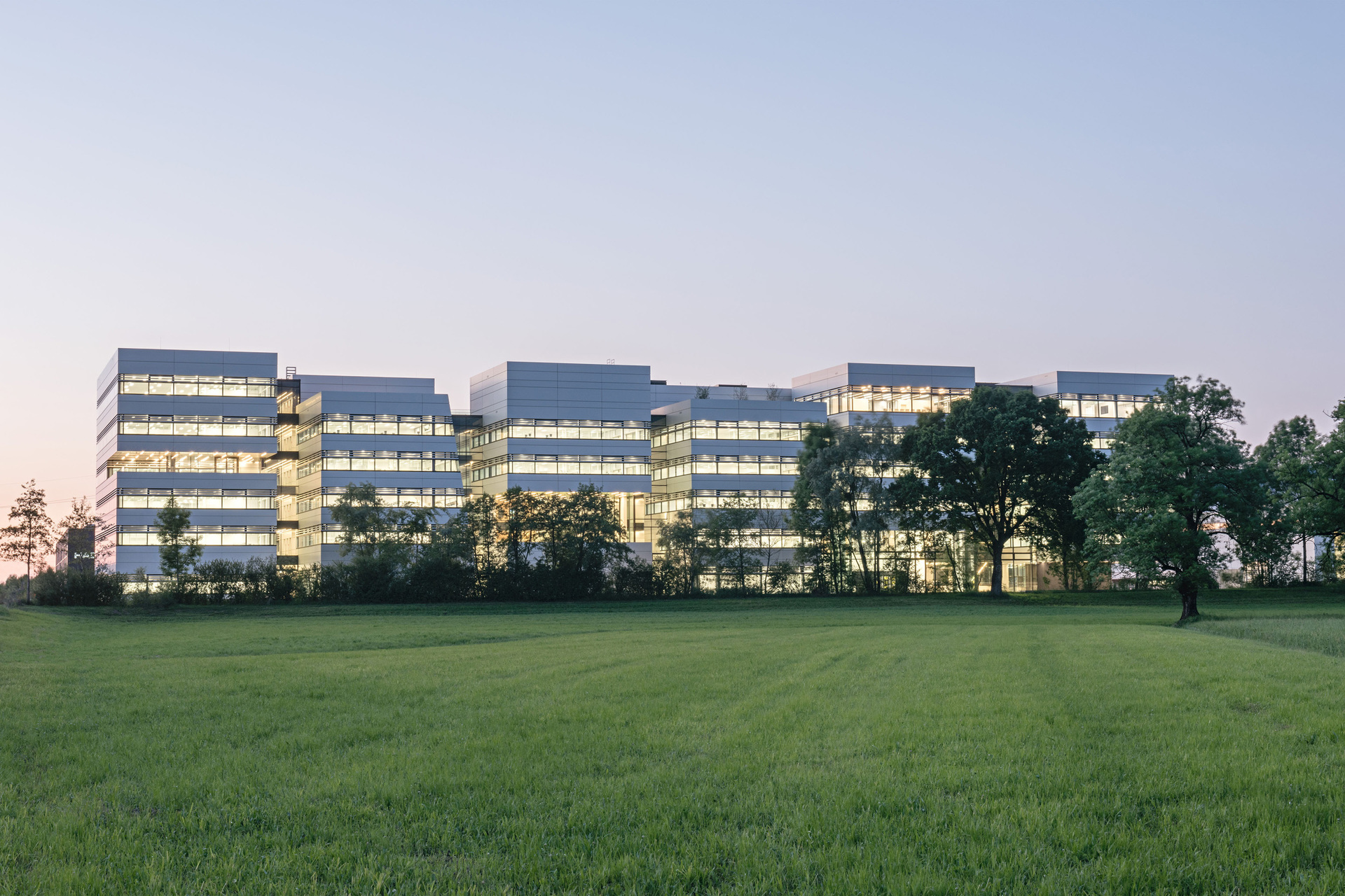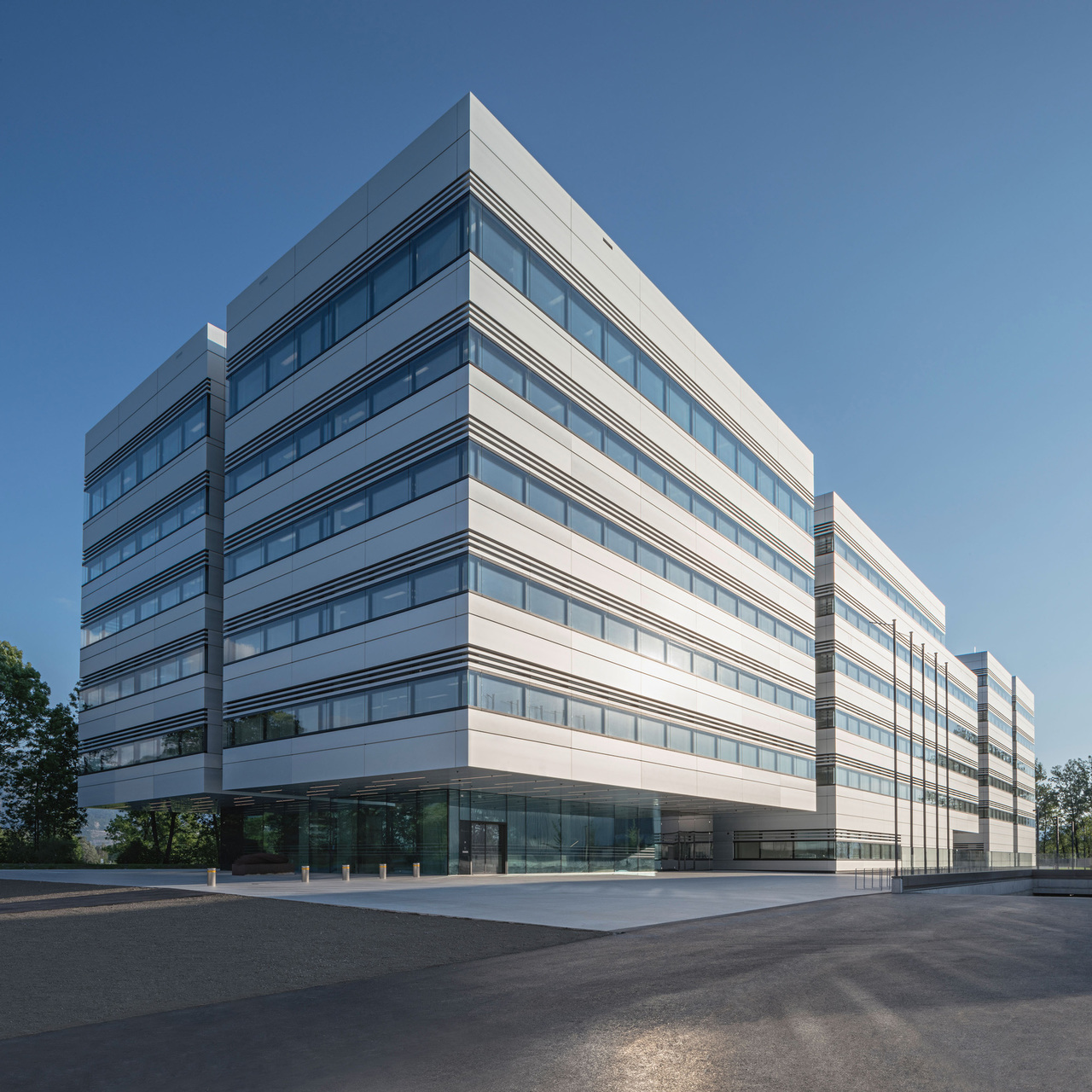 Die prägnante Silhouette der neuen Unternehmenszentrale markiert den Auftakt zum Gewerbegebiet Hohe Brücke in Wolfurt. Der in Einzelbaukörper aufgelöste Gebäudekomplex schafft trotz unterschiedlicher Volumina und Höhen ein überzeugendes Ganzes mit einer signifikanten Präsenz. Geprägt durch starke Identität und hohen Wiedererkennungswert wird das Unternehmen mit dem Neubau auch visuell in der Ebene des Rheintals verortet.Das führende Technologieunternehmen Doppelmayr ist traditionell in Wolfurt verwurzelt und seit jeher in die dörfliche Struktur des Ortsteils Rickenbach eingebettet. Die Neuinterpretation ebenjener städtebaulichen Situation am neuen Standort stellt das Leitmotiv des Neubaus dar. Entlang eines inneren Rückgrates, an dem alle Gemeinschaftsflächen situiert sind, gruppieren sich in den Einzelhäusern unterschiedlich große Bürobereiche.