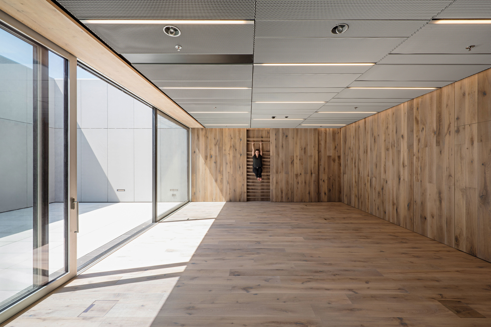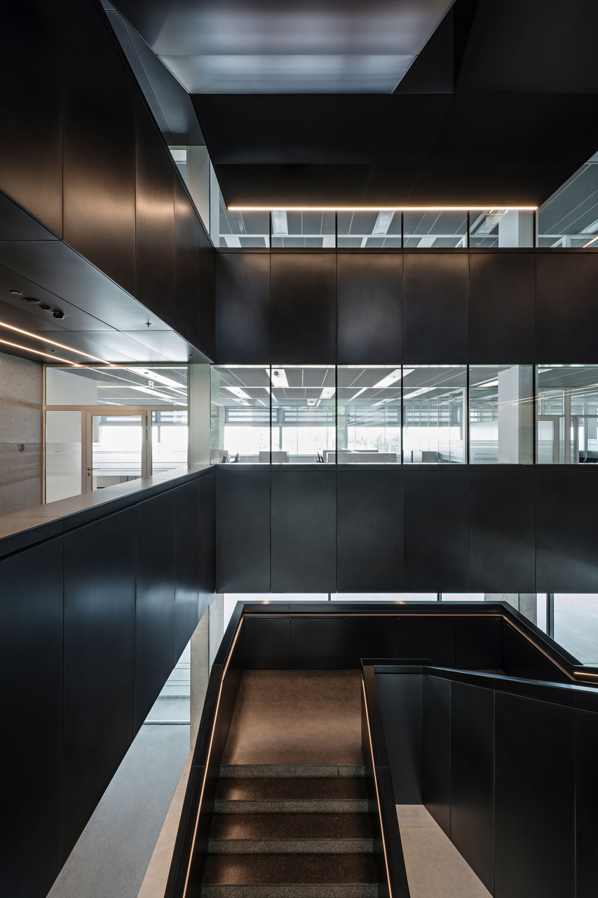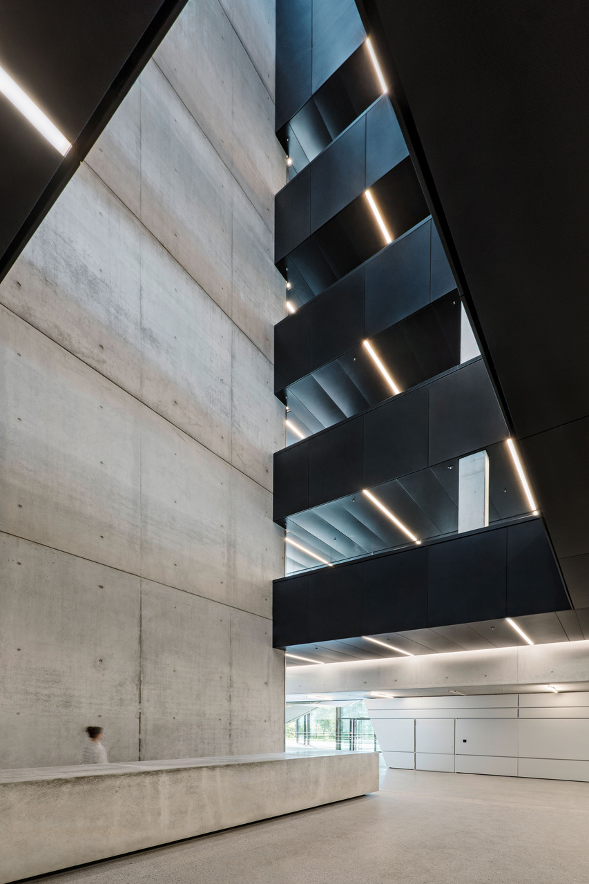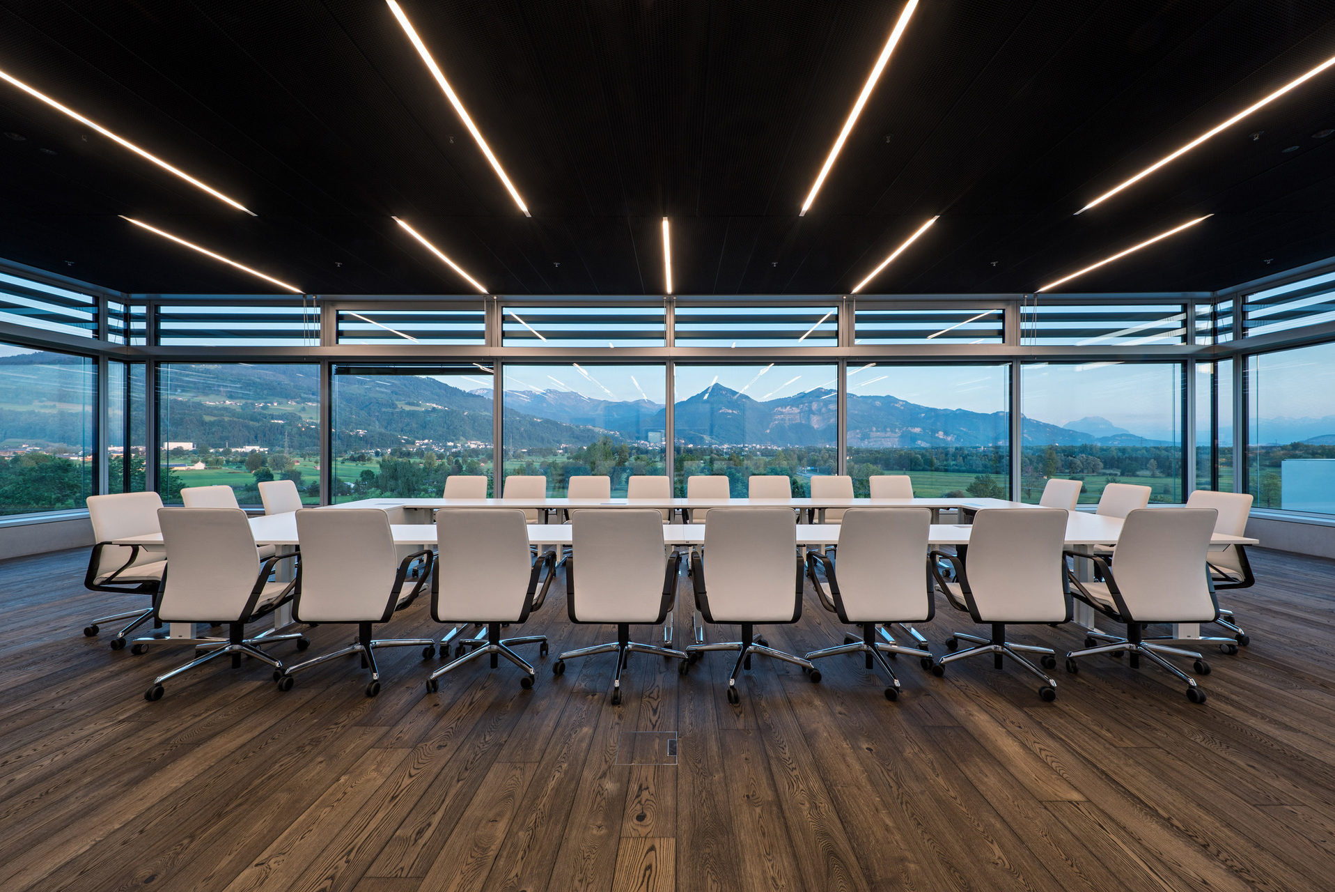 Der Bau unterstreicht Eigenschaften wie Präzision, Innovation und technische Avanciertheit, für die das Vorarlberger Unternehmen steht, gleichzeitig rücken die Mitarbeiter:innen, die hier arbeiten, in den Mittelpunkt. (Text: Architekt:innen)