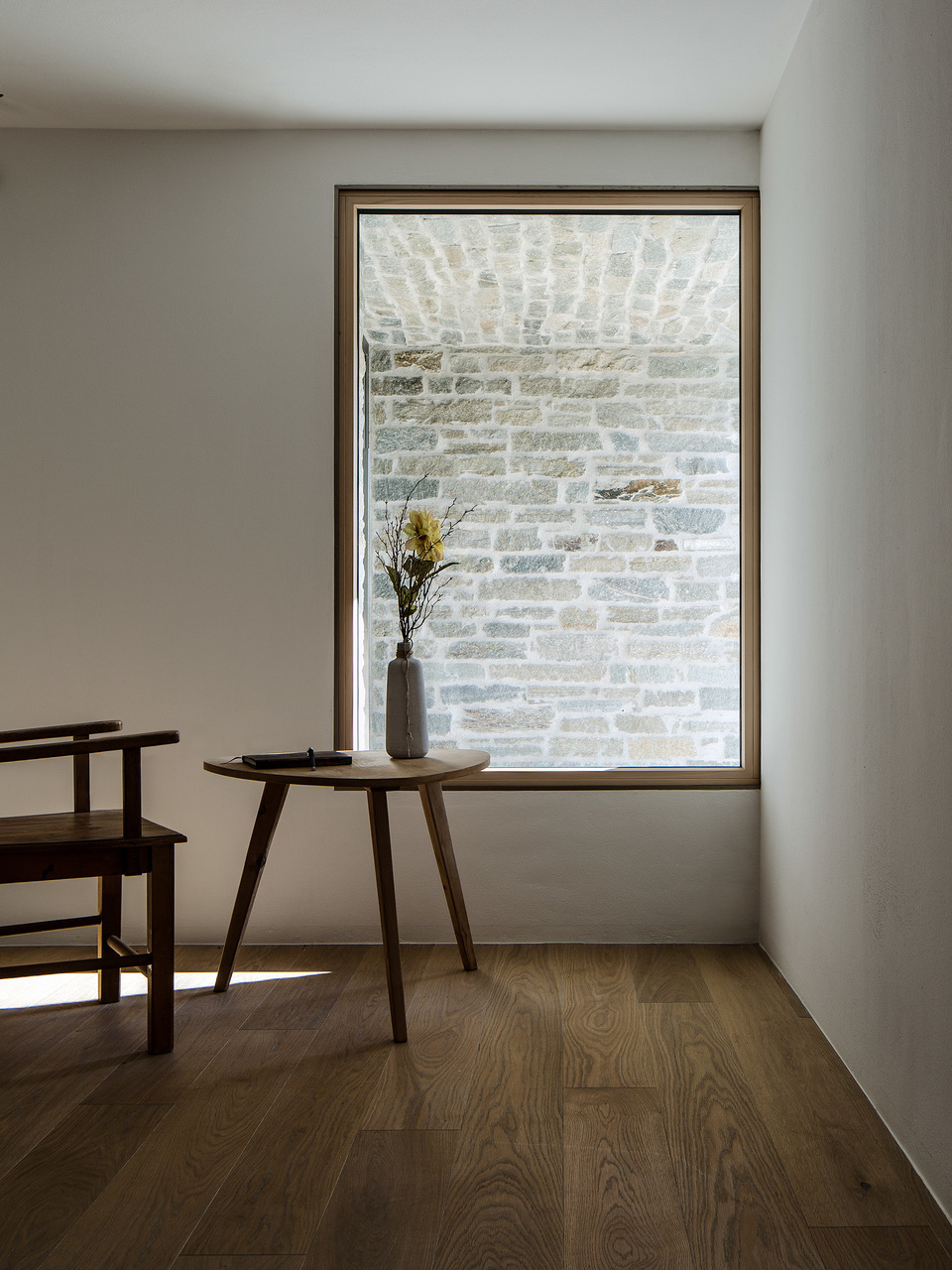 Die Fassade ist als Lochfassade konzipiert, wobei die Fensterpositionen über den Innenraum entwickelt wurden. Dadurch ergibt sich ein abwechslungsreiches Wechselspiel unterschiedlicher Fensteröffnungen, die dem schlichten Baukörper, gemeinsam mit der Materialwahl, seinen Charakter verleihen (Text: Architekt)