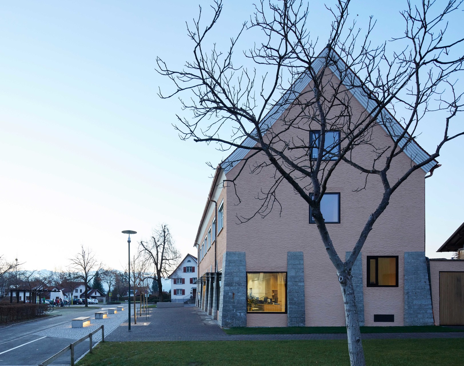 Das 1937 errichtete Gebäude war baulich nach wie vor in gutem Zustand. Von der Bevölkerung akzeptiert und geschätzt, sollte der Bestand wiedererkennbar bleiben, seine Identität wahren. Durch präzise gesetzte Maßnahmen wurde das Haus mit Rücksicht auf die vorhandenen Qualitäten für eine zeitgemäße Nutzung zur Verwaltung der Gemeinde adaptiert.