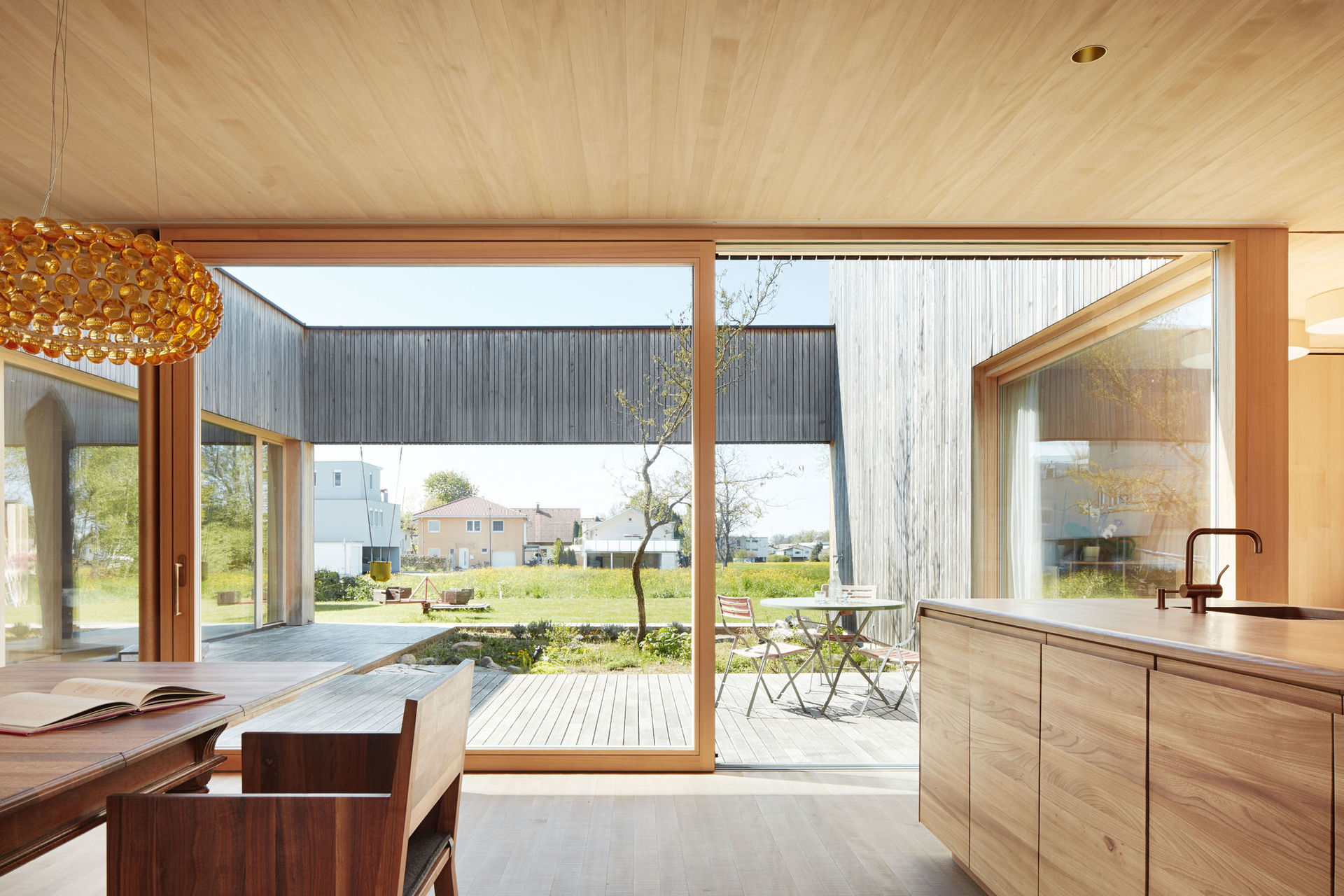 So beliebig und zufällig, wie sich die umliegende heterogene Nachbarschaft darstellt, so bewusst und zielorientiert wurde dieses Wohnhaus vom Konzept bis zur letzten Schraube (Holzdübel) entwickelt und umgesetzt. Das fachliche Know-how von Architekten und Holzbaumeister wurde mit dem unermüdlichen Einsatz des Bauherrn (Tischlermeister) - Massivholz immer und überall richtig und unbehandelt einzusetzen - ergänzt. Dort wo das Engagement drohte zu kippen, verzeiht die durchaus menschlich, sympathische Atmosphäre das in einigen Bereichen „Zuviel des Guten“. Die Gesamtlösung, die Maßstäblichkeit und die differenzierten Nutzungsmöglichkeiten (autarke Einliegerwohnung und Büronutzung) überzeugen auf allen Ebenen. (Text: Vorarlberger Holzbaupreis 2017 - Begründung der Jury)
