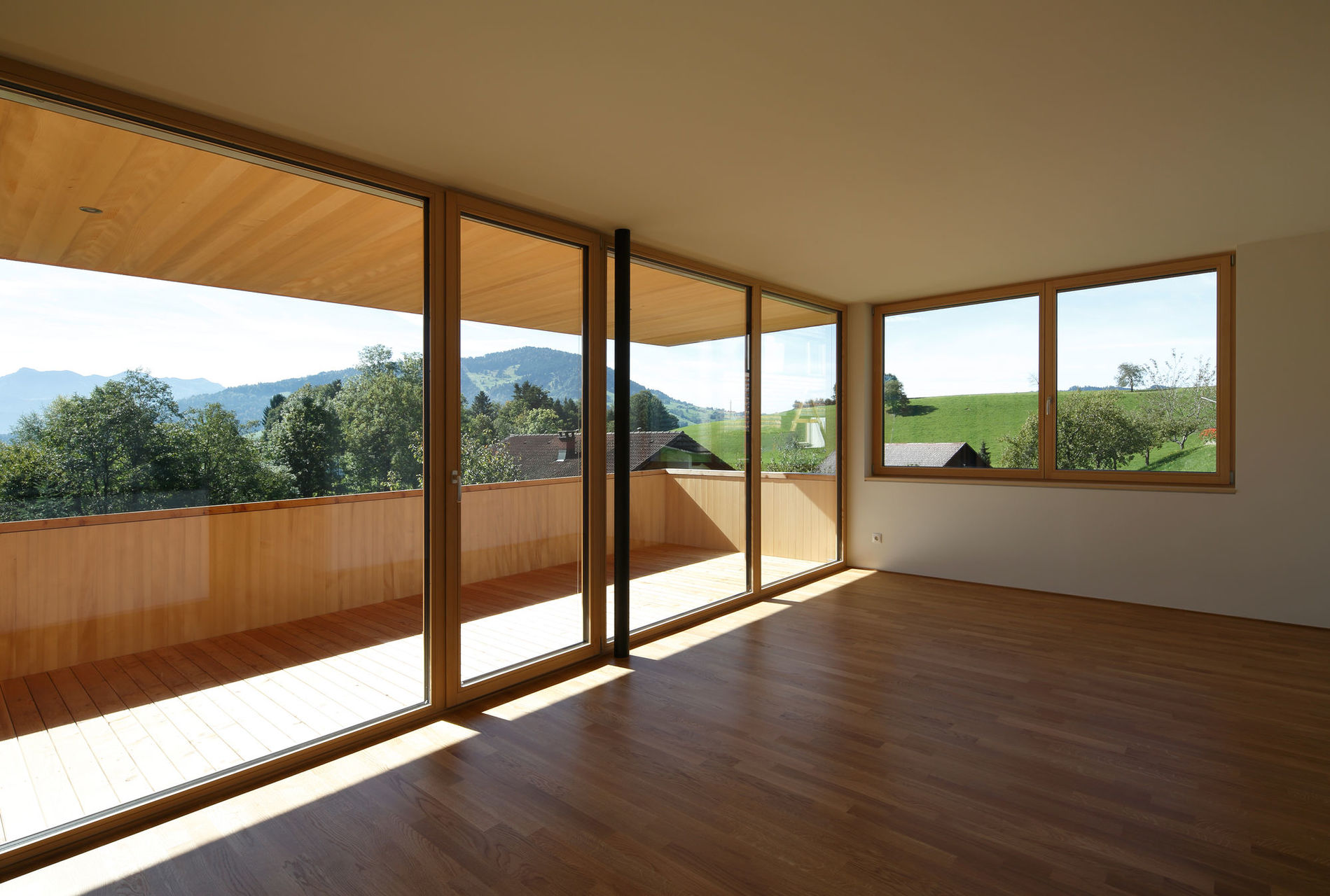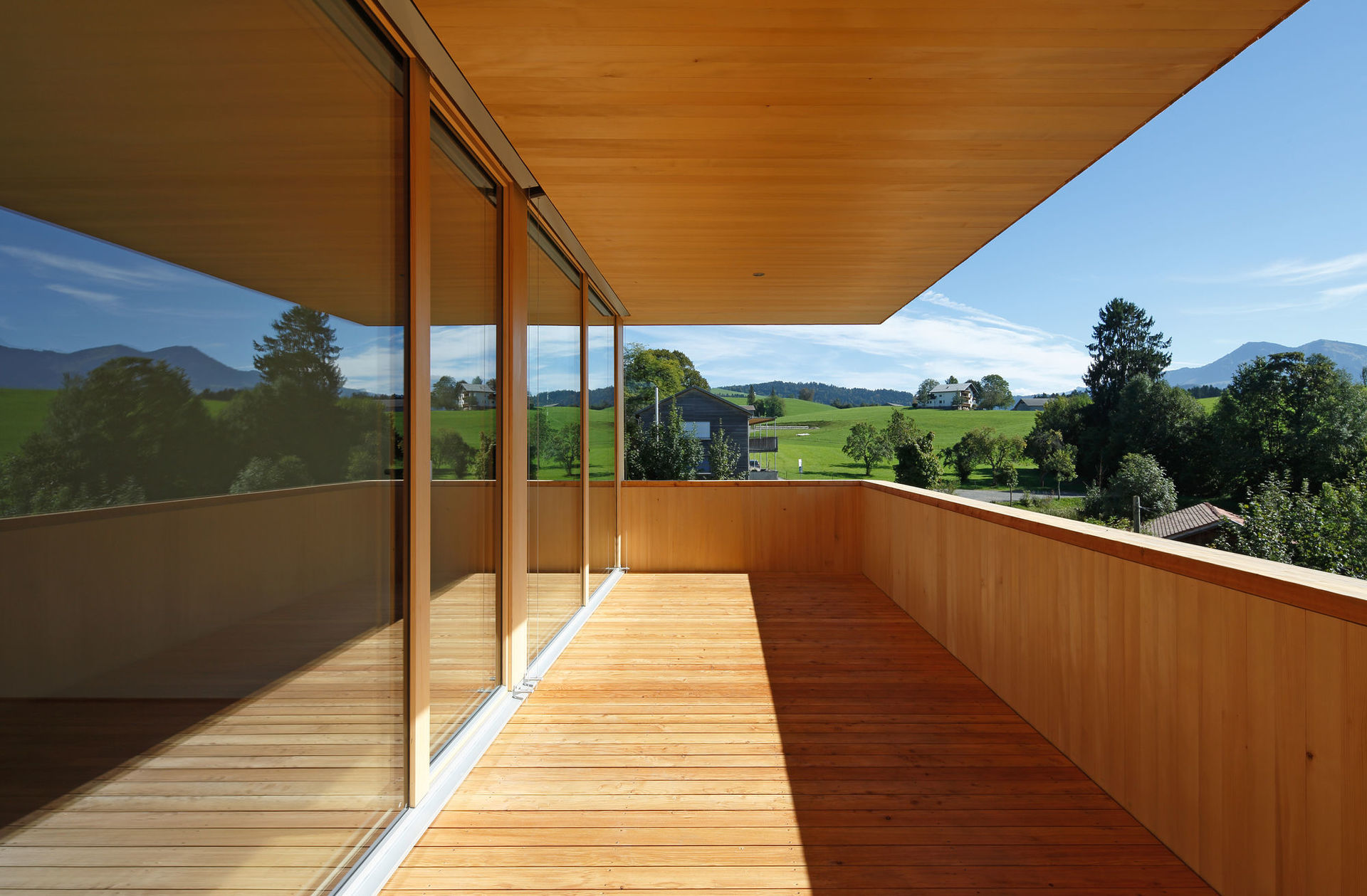 Dürfte man am Beispiel zeigen, wie der Alltag des Wohnbaus in Vorarlberg aussehen sollte, dann würde ein Besuch zu dieser Wohnanlage führen. In Größe und Form an den traditionellen Bauten des Bregenzerwaldes orientiert, finden zwei Baukörper zu einem überzeugenden Verständnis für ihren Ort, für seine anspruchsvolle Geländetopografie und für die Gesetzmäßigkeiten des Holzbaus. Zwei 3-Spännertypen, von höchster handwerklicher Sorgfalt, bieten ihren Bewohner:innen einen Freisitz und einen Freiblick auf die Landschaft, wie sie in dieser Qualität nur wenige Einfamilienhäuser zu bieten haben. In der für Vorarlberg idealtypischen Art finden Handwerk, Ökologie und Architektur zu ihrer Einheit und generieren einen Mehrwert, eine Angemessenheit und Selbstverständlichkeit, wie man sie dem Bau- und Wohnalltag wünschen würde. (Text: Vorarlberger Holzbaupreis 2017 - Begründung der Jury)