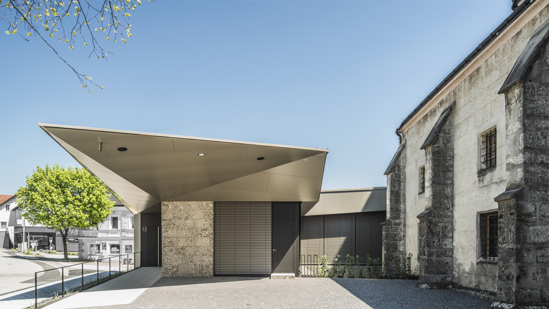 Das Pfarrheim der katholischen Pfarre St. Stephanus in Sierning wurde mit dem Neubau mitten ins Ortszentrum gerückt, ganz nah an die Kirche.