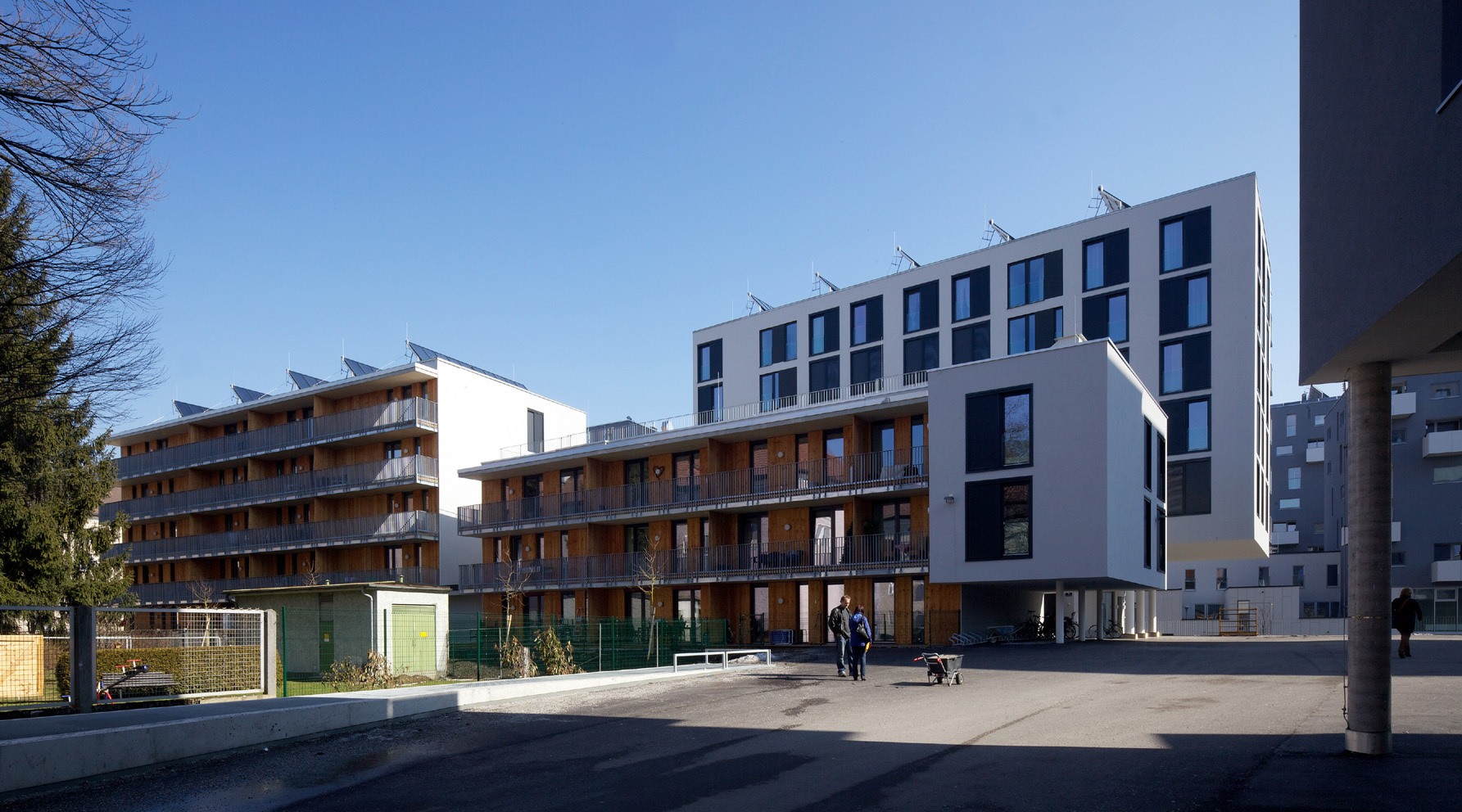 Weiters wurde das Stadtwerke-Hochhaus von 1968 revitalisiert (Riepl Riepl Architekten) und die 1750 errichtete Frey Villa in das Gesamtkonzept eingebunden. Die Fertigstellung des zweiten Bauabschnitts mit Forschungs- und Bildungseinrichtungen erfolgte 2017 und wird vom Freiraumkonzept des Büros Agence Ter ergänzt. Im Südteil liegen um eine diagonale Achse vier Bauten von Berger+Parkkinen und ein Wohnbau mit Lebensmittelgeschäft im Sockelbereich von Boris Podrecca. IAS