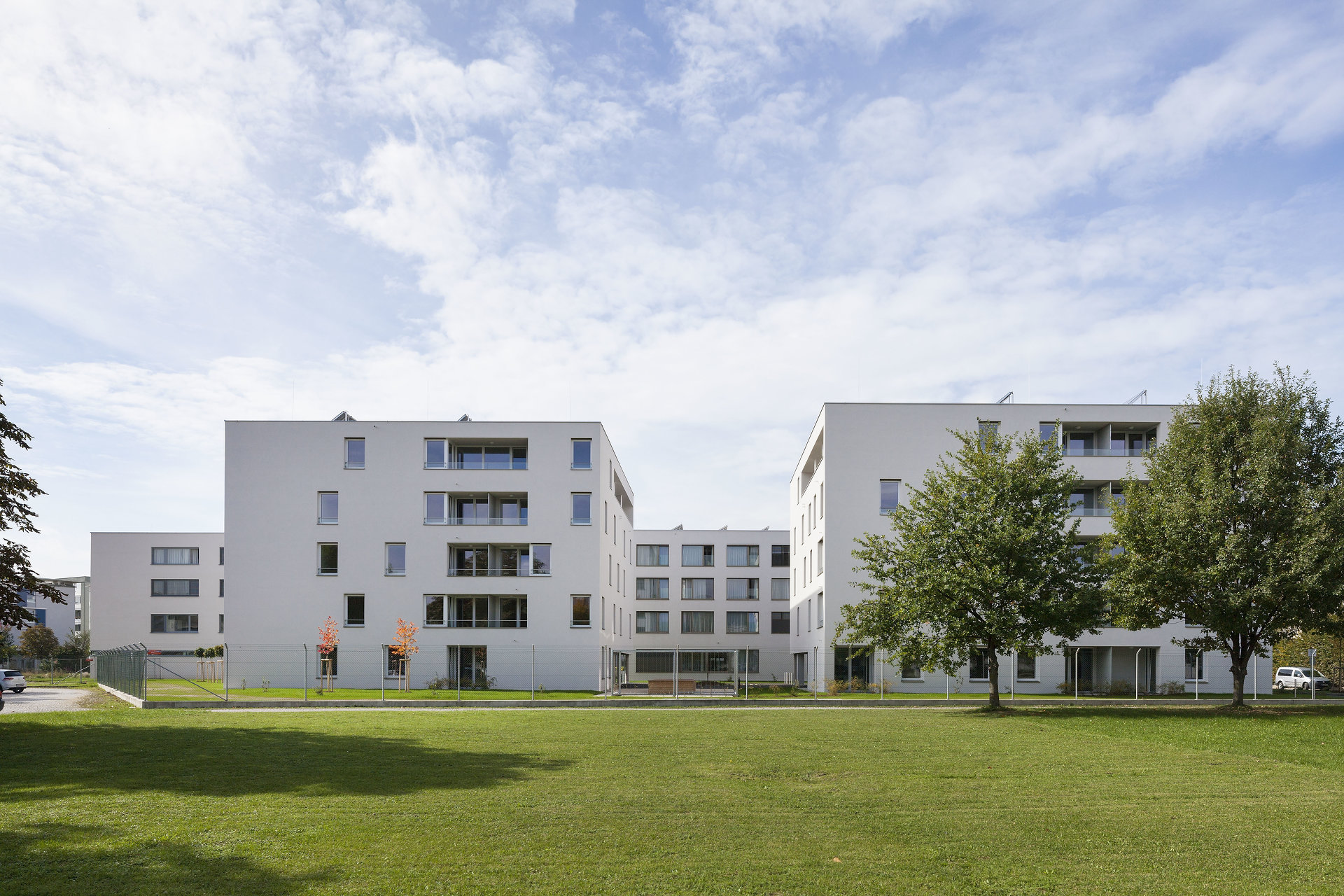 Kompakte, gut dimensionierte Baukörper mit klarer Fassadengestaltung ergeben ein günstiges Oberflächen-/Volumenverhältnis sowie einfache Statik und konnten dadurch kostengünstig errichtet werden. Die städtebauliche Konzeption, die räumliche Ausformulierung, angenehme Erschließungszonen bieten den Bewohner:innen hohe Lebensqualität. (Text: Architekten, bearbeitet)