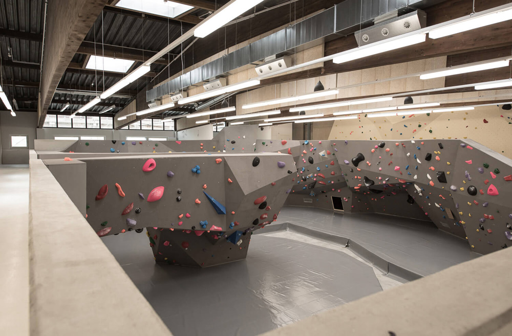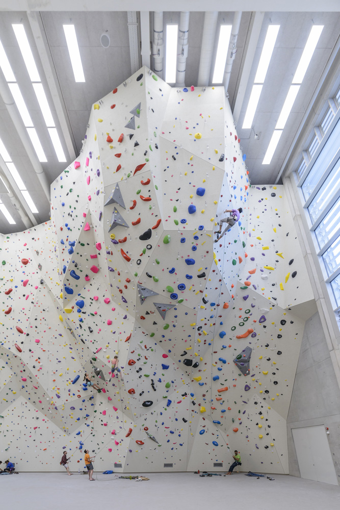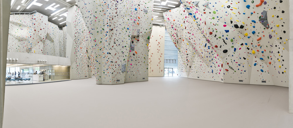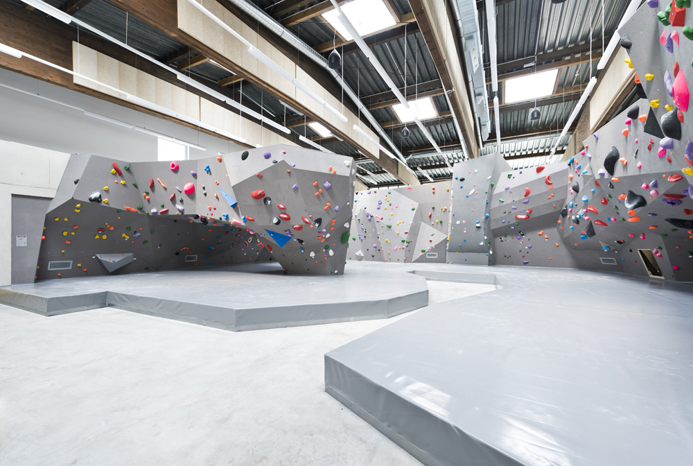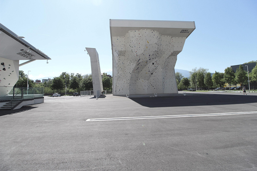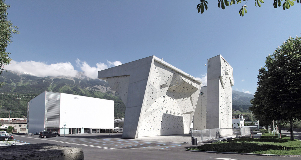Die Boulderanlage mit über 1.000 m² Boulderfläche wurde im Bestand untergebracht und im Westen um eine zugebaute Outdoor-Wand mit weiteren 175 m² Boulderfläche ergänzt. Weithin sichtbares Zeichen sind drei skulpturale Klettertürme mit 1.500 m² Kletterfläche, deren Publikumswände so orientiert sind, dass man von der Sillpromenade aus die Kletterer beobachten kann. (Text: Claudia Wedekind)