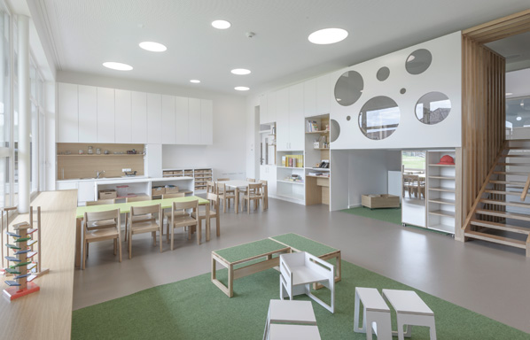 Die architektonische Lösung ist nach den aktuellen pädagogischen Erkenntnissen ganz auf die Bedürfnisse der jungen Nutzer ausgerichtet.