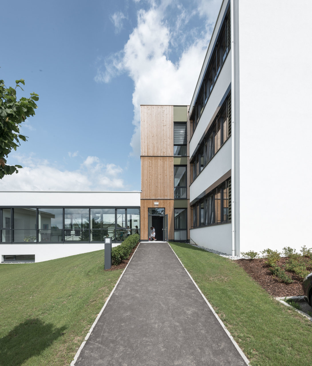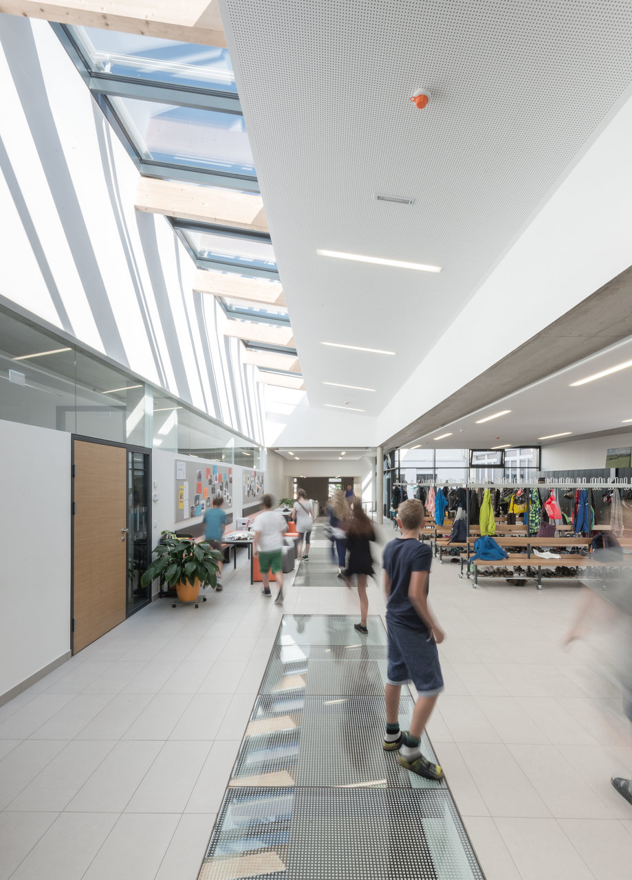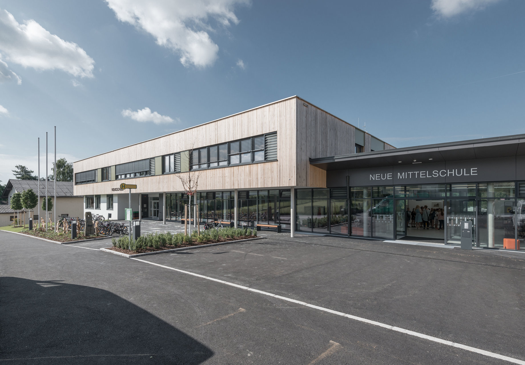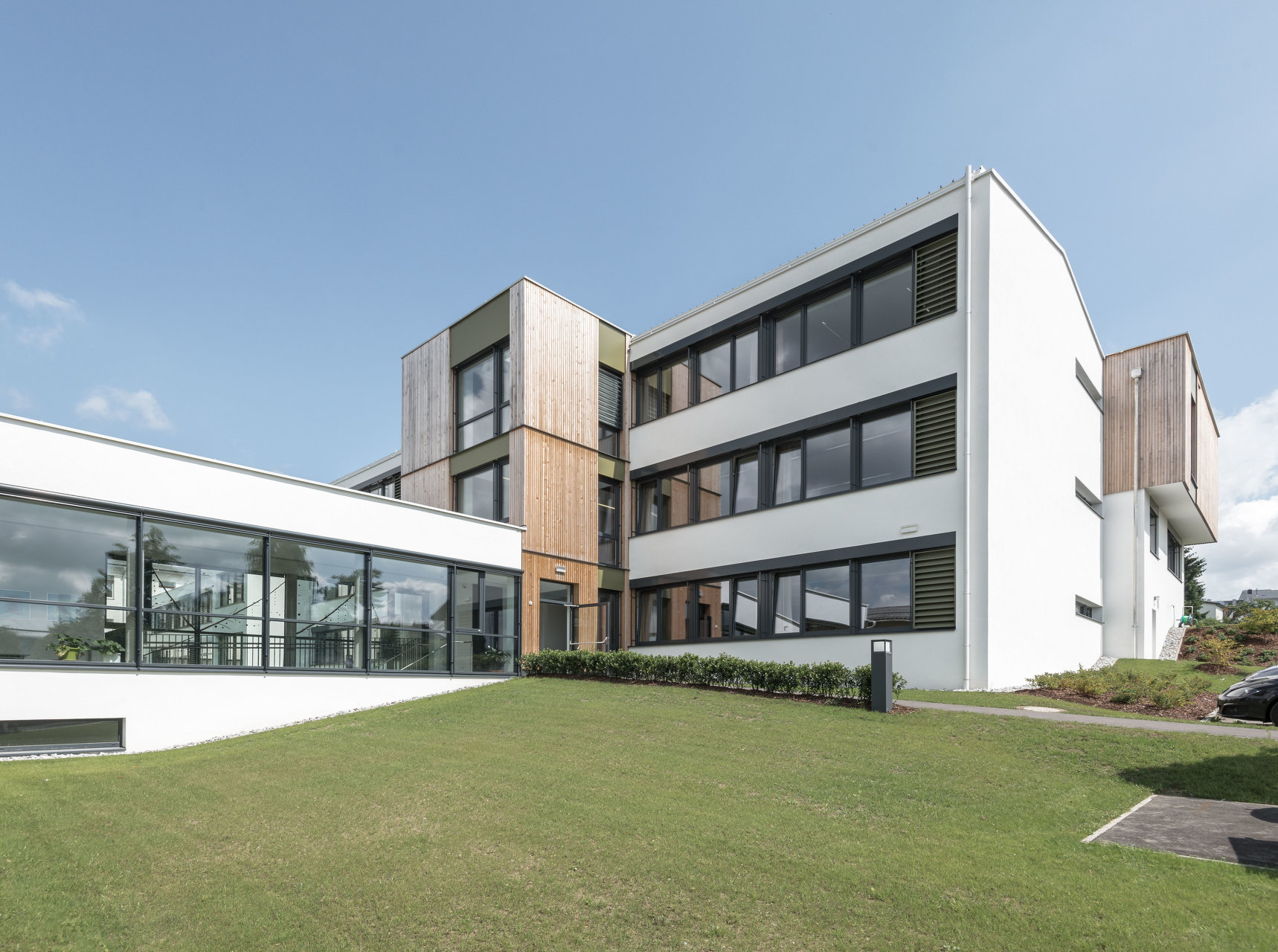 Die gesamte Erneuerung der Treppenanlage mit einem Liftzubau erschließt die Volksschule zu barrierefrei. Die Mittelschule verfügt nun über eine großzügige Aula. Es wurden zeitgemäße Arbeitsplätze in Form neuer Konferenzräume geschaffen.