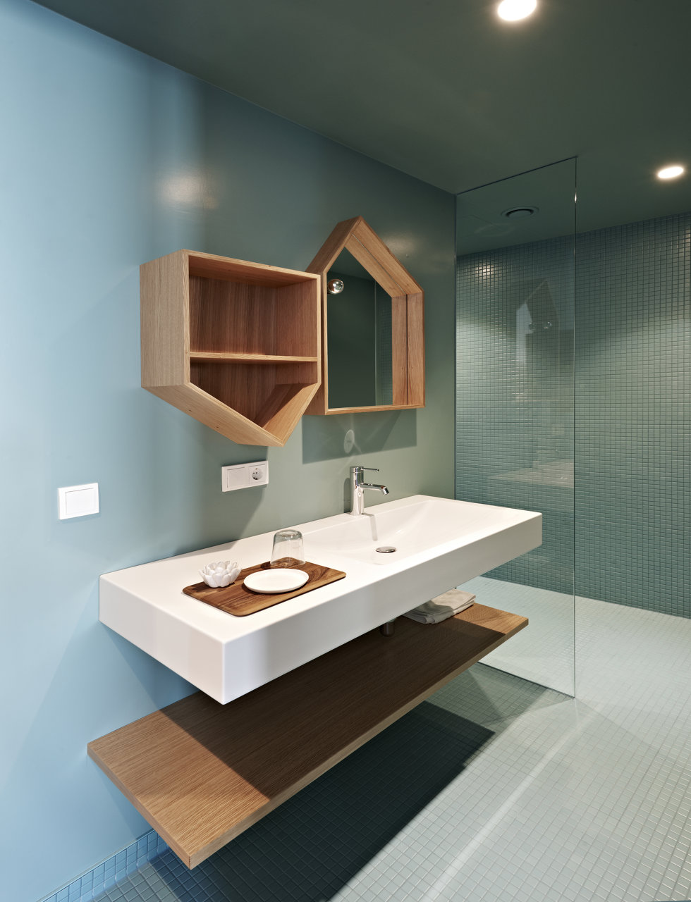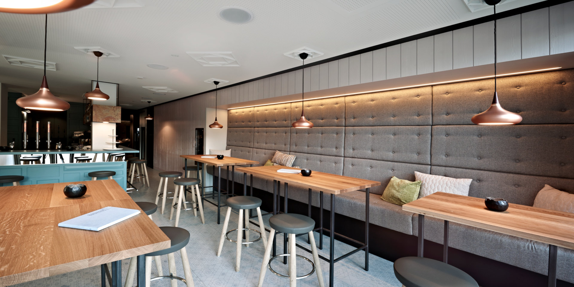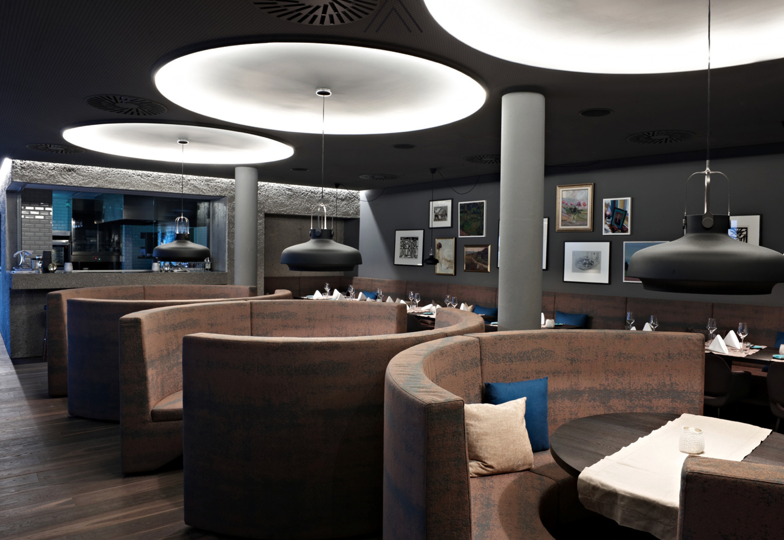 Der neue Baukörper im Hinterhof ist schmal und langgestreckt und entspricht der historischen Stadtstruktur. Die Zimmer bilden übereinandergestapelt „Häuser“ mit aneinandergereihten Satteldächern und Giebeln. Der Hofanbau fügt sich mit seiner Dachlandschaft in die historische Umgebung ein und interpretiert diese, durch den Einsatz von zeitgemäßen Materialien, neu.