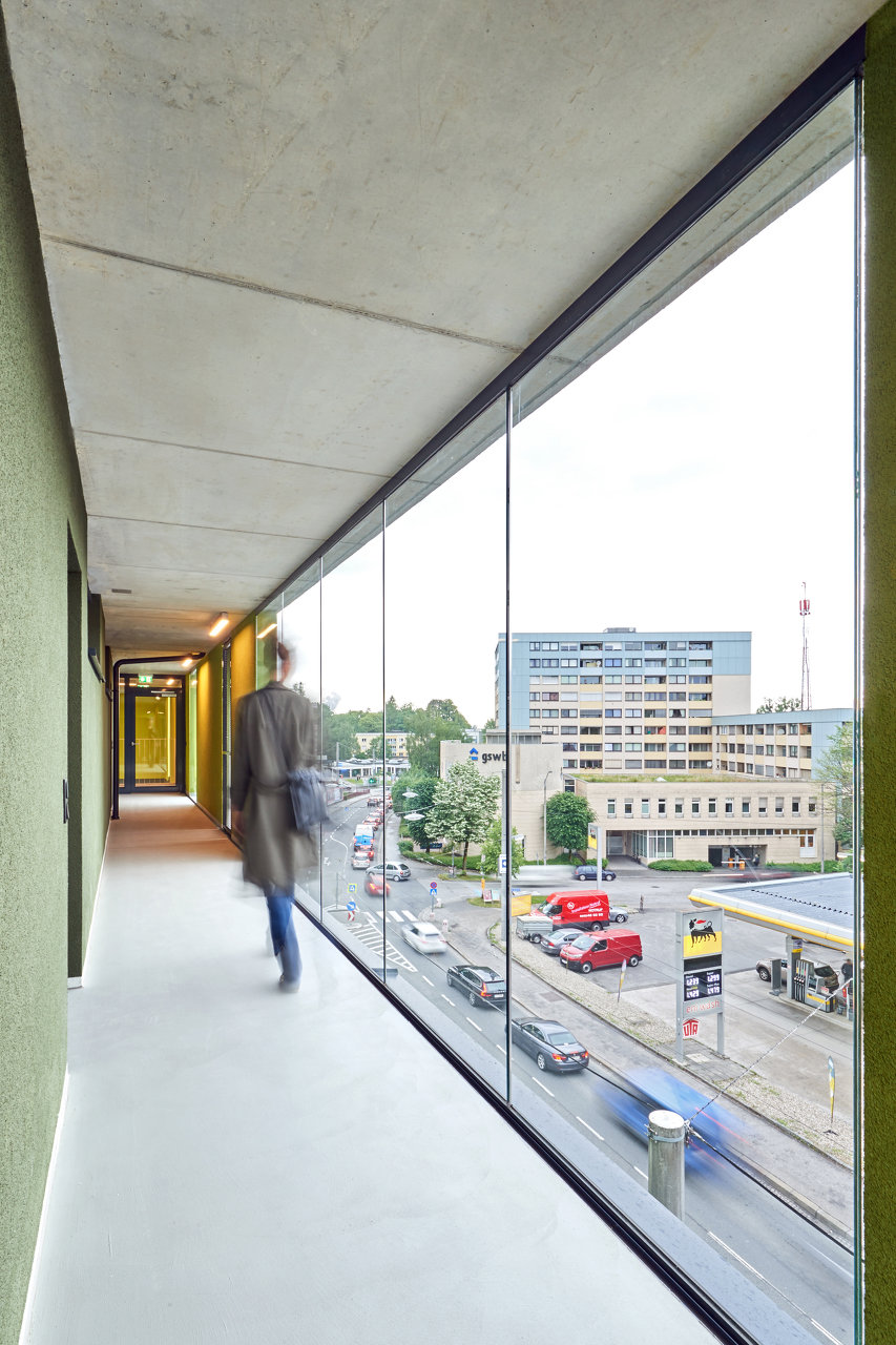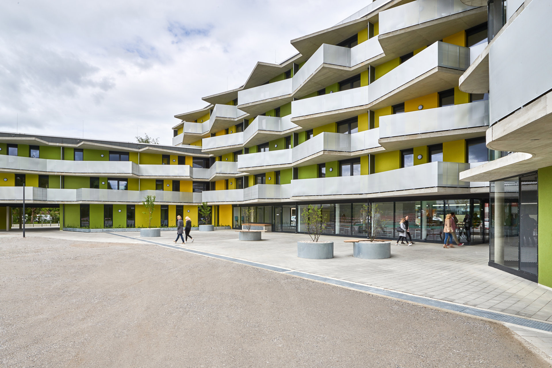 Das neue Wohnquartier Ignaz-Harrer-Straße - Gailenbachweg - Lehenerstraße entwickelte sich im Spannungsfeld zwischen dem städtischen Raum mit der hoch frequentierten Ignaz-Harrer-Straße im Norden und der offenen Parklandschaft im Süden. Die Bebauung wurde in durchgehend geschlossener Anordnung konzipiert und reagiert auf die Erfordernisse infolge der bestehenden Schallemissionen entlang der Ignaz-Harrer-Straße sowie auf die vorgefundenen Besitzverhältnisse (im Besonderen auf die nicht absehbare Verfügbarkeit der Baufläche 4). Stadträumlich kontrastiert die Ausbildung einer geschlossenen, urbanen Kante entlang der Ignaz-Harrer-Straße der beruhigten, erholungsräumlich geprägten Parklandschaft im Süden des Bebauungsgebietes und schafft die räumliche Differenzierung in eine urbane „Bewegungsseite“ im Norden und in eine „Wohn-, Park- und Gartenseite“ im Süden. Durch die mäandrierende Anordnung der Bebauung werden Bewegungsseite und Gartenseite verwoben und in Beziehung zueinander gesetzt. Gezielt verortete Durchgänge gewährleisten die Durchlässigkeit des Quartiers. Entlang der Ignaz-Harrer-Straße wird eine Sequenz von unterschiedlich großen Plätzen geschaffen, die vielfältige Bespielungen ermöglicht und ein urbanes Vorfeld für das Wohnquartier schafft. Architektonisch kontrastiert die Ausbildung der geschlossenen Laubengangfassade entlang der Ignaz Harrer-Straße den durch eckige und runde Balkone geprägten Charakter der zum Park gerichteten Wohnfassaden.Das Projekt ging 2012 als 2.platziertes Projekt aus einem geladenen Wettbewerbes hervor, ex aequo mit Martin Oberascher & Partner Architekten. Nach vielen gemeinsamen Planungsworkshops und Denkphasen, Terminen und Besprechungen konnten das Projekt schlussendlich 2016 in die Realisierungsphase gehen. Das Baufeld 01 wurde im Frühling 2018 fertiggestellt. Das ursprüngliche Konzept des Wettbewerbs blieb von der Geste her erhalten, obwohl das gebaute Ergebnis – wie immer im Planungs- und Bauprozess - von zahlreichen Einflüssen abhängig ist. (Text: Architekt:innen)