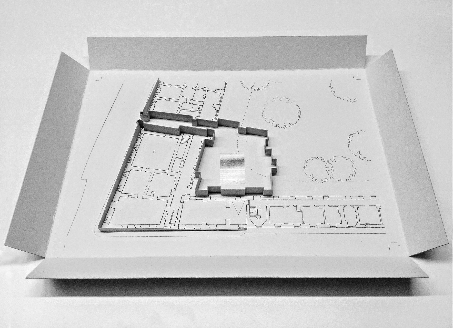 Am Haupteingang knickt sich die Kulisse wie ein gefaltetes Band durch eine Passage, von der aus Ticketbüros, Ausstellungsräume und Bar erschlossen werden – und grenzt schließlich im Hof des Palais einen eigenen Bereich, einen „Backyard“, ab.