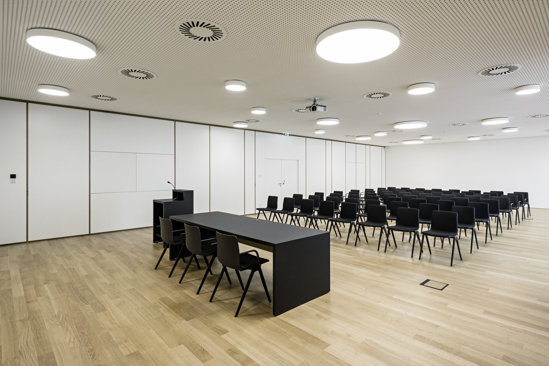 Der multifunktionale Sitzungssaal im Erdgeschoß ist klar vom Bürgerservicebereich getrennt und ist dadurch vom übrigen Gebäude unabhängig für Sitzungen und externe Veranstaltungen nutzbar.
