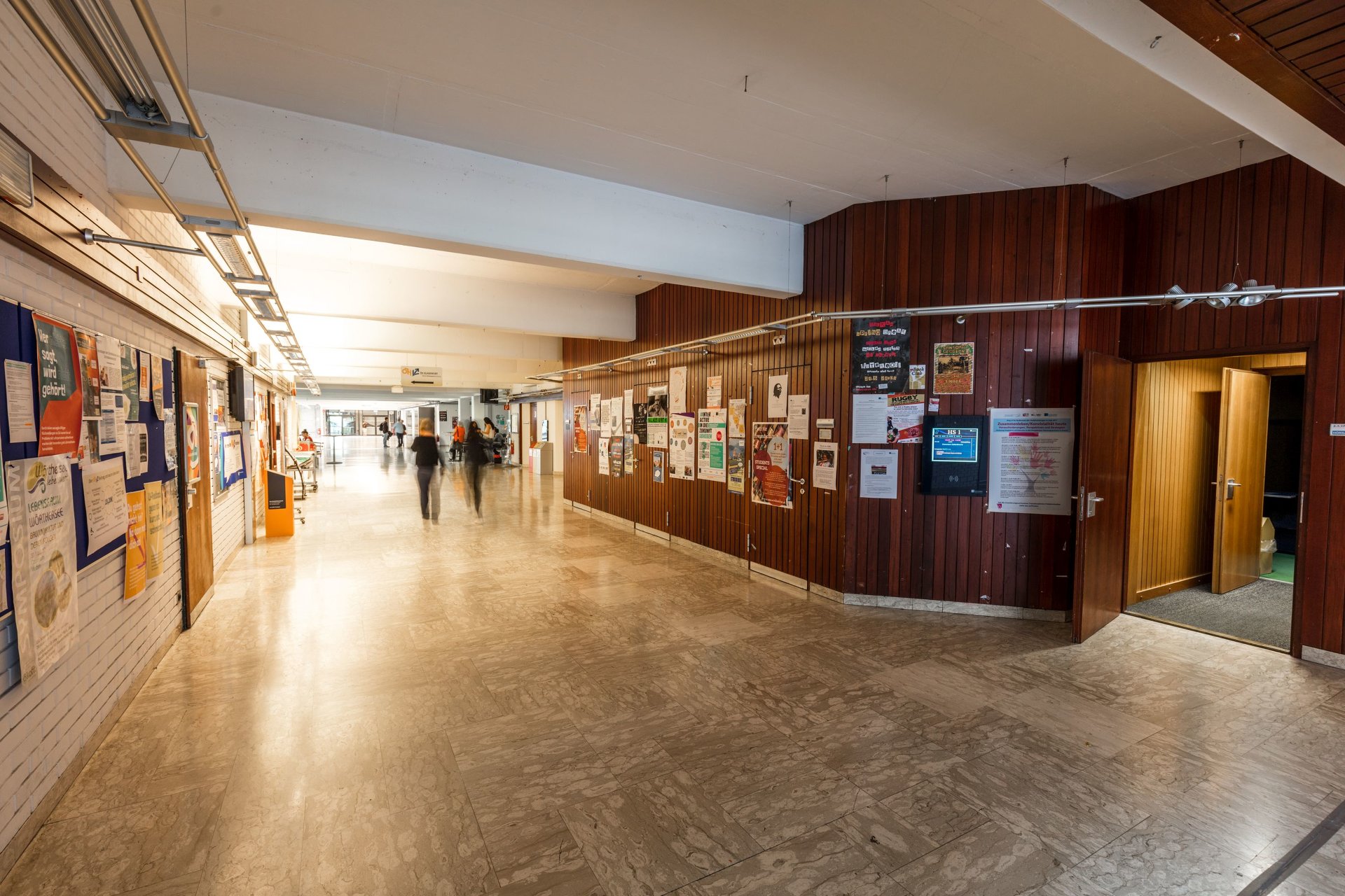 Die Büros der HochschülerInnenschaft werden im Bereich der ehemaligen Büros und Portiersstelle untergebracht. Somit befinden sich neben dem Studienservice, den Computerterminals und dem Empfang alle organisatorischen Servicestellen gemeinsam im Foyer der Universität.