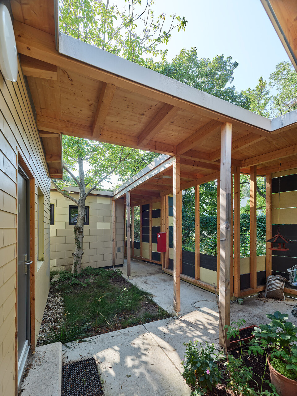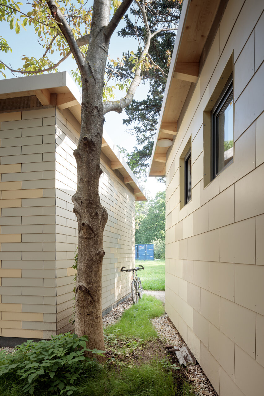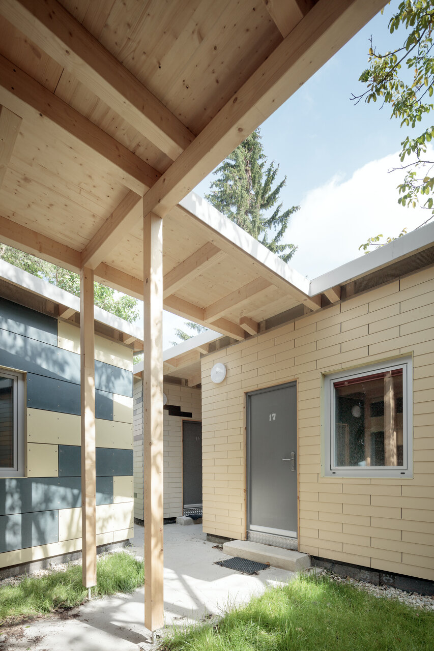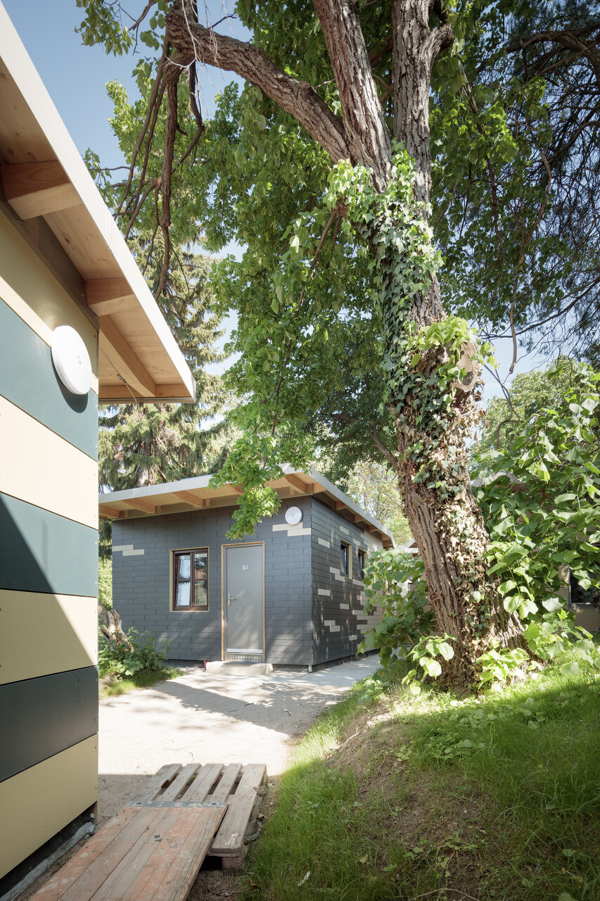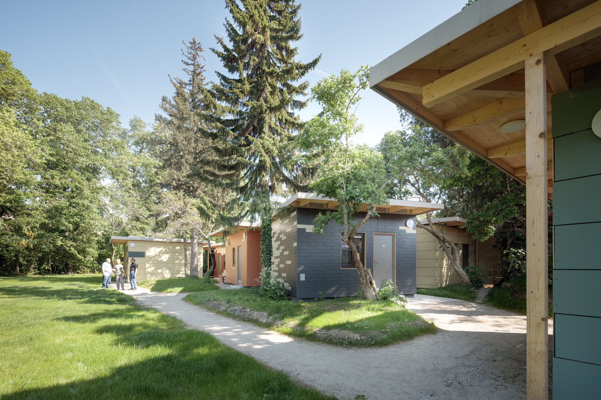Das Wiener Architekturbüro gaupenraub +/– engagiert sich seit langem in der Obdachlosenhilfe. Gemeinsam mit Pfarrer Wolfgang Pucher konnte es nun in Wien ein Wohndorf für langzeitobdachlose Menschen errichten. Auf einem Grundstück der Lazaristen in Hetzendorf wurde es mit einfachsten Mitteln und mit gespendeten Baumaterialien – Fenstern, Bodenbelägen und Fassadenplatten – errichtet. Das Ergebnis präsentiert sich nicht als Notlösung, sondern als Architektur, die Bescheidenheit nicht als qualitatives Hindernis begreift.Helfende Hände sind bei Projekten wie diesem essenziell: Die 16 Wohnmodule in Holzrahmenbauweise wurden von Schülerinnen und Schülern der HTL Mödling in den Schulwerkstätten vorfabriziert und am Bauplatz aufgestellt. Das VinziDorf Wien erhält wegen seiner sozialen Nachhaltigkeit und der pädagogisch wertvollen Praxis-Erfahrung im Rahmen einer HTL-Ausbildung einen Sonderpreis. (Jurytext wienwood 21)