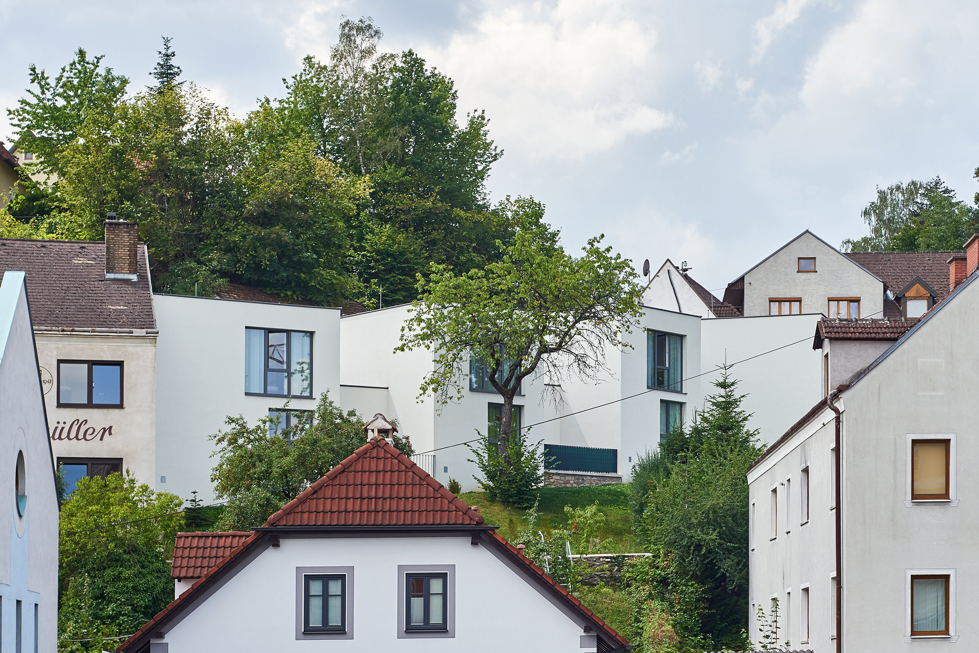 Die Herausforderung im Planungsprozess war die Nordausrichtung des Hanggrundstücks und die damit verbundene Lichtsituation. Die Entscheidung für vier abgegrenzte Baukörper ermöglichte einen durch leicht unterschiedliche Ausrichtungen und Gebäudeöffnungen optimierten Lichteinfall für alle Wohnungen. Die Planung orientierte sich am kleinstrukturierten Altbestand, nimmt durch die zweigeschoßigen Neubauten Rücksicht auf städtebauliche Gegebenheiten der zum Zwettler Zentrum hin orientierten Hanglage und achtet auf Maßstäblichkeit sowie eine am umgebenden Bestand orientierte Proportionierung.