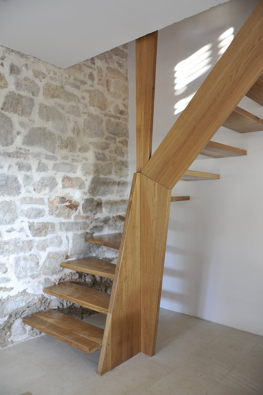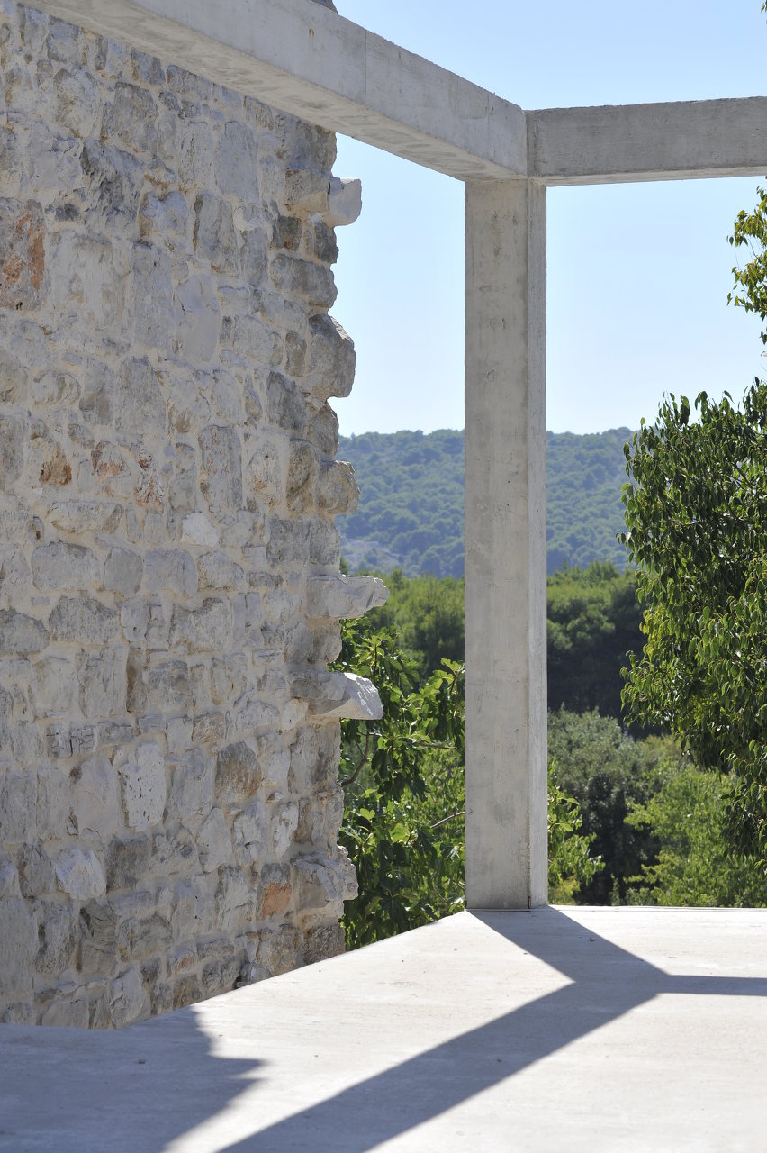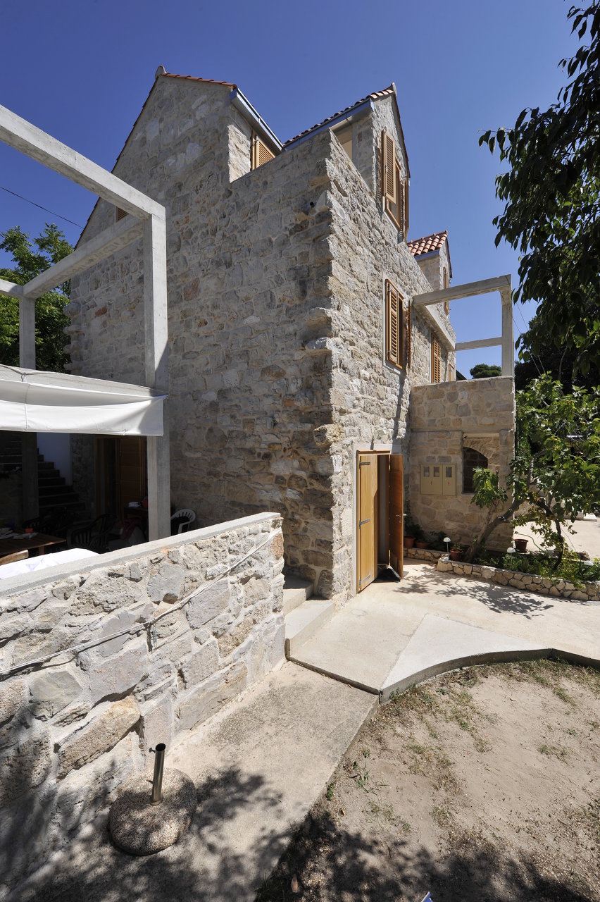 Das ca. 300 Jahre alte Steinhaus liegt in Ostrica, außerhalb des alten Stadtkerns von Zlarin auf dem nördlichen Kap der Insel. Die gleichnamige Insel befindet sich vor der Küstenstadt Sibenik in der Mitte der kroatischen Küste. Sibenik ist eine Stadt mit der berühmten romanischen Kirche des St. Jakobs und drei bedeutsamen Burgen.Der Umbau in ein Ferienhaus umfasst eine umfangreiche bauliche Sanierung sowie eine Änderung des Wohnkonzeptes. Die Häuser wurden damals ohne Fundamente direkt auf den Felsen gebaut. Wegen der im Winter aufsteigenden Erdfeuchtigkeit wurden die oberen Etagen bewohnt. Das Erdgeschoss war „Konoba“ Raum, wo „Prosciutto“ und Olivenöl gelagert wurde. Im ersten, eventuell zweiten Geschoss befanden sich die Schlafräume, im Dachgeschoss wurde gekocht und gewohnt. Eine Feuerstelle als gemauerter Kamin befand sich immer unter dem Dach.