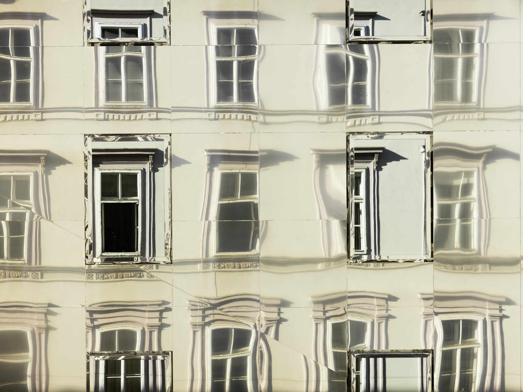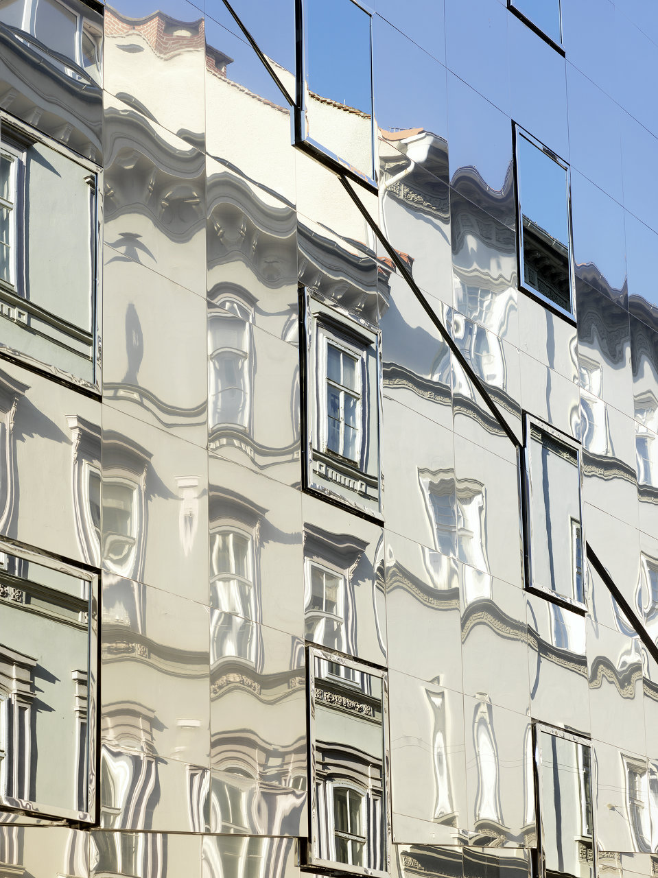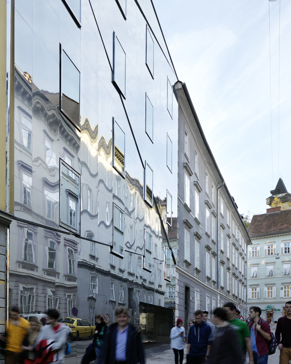 Inmitten der als Weltkulturerbe gelisteten Grazer Altstadt war eine Baulücke in der Ballhausgasse durch einen Neubau mit Wohnnutzung zu schließen. Die Regeln des Altstadtschutzes fordern die Einfügung in den Kontext, geben jedoch Spielraum für eine Interpretation mit zeitgenössischen Mitteln.Eine Fassade aus poliertem Nirosta-Blech gibt die für die Umgebung charakteristische Plastizität des Licht- und Schattenspiels der Gesimse, vorspringenden Fenster und Fensterumrandungen wieder, ohne diese nachzubilden. Dabei erzeugen leicht unterschiedlich geneigte Dreiecksflächen, deren Kanten die in verschiedener Höhe liegenden Gesimse der Nachbargebäude verbinden, Kaleidoskop-artige Brechungen.