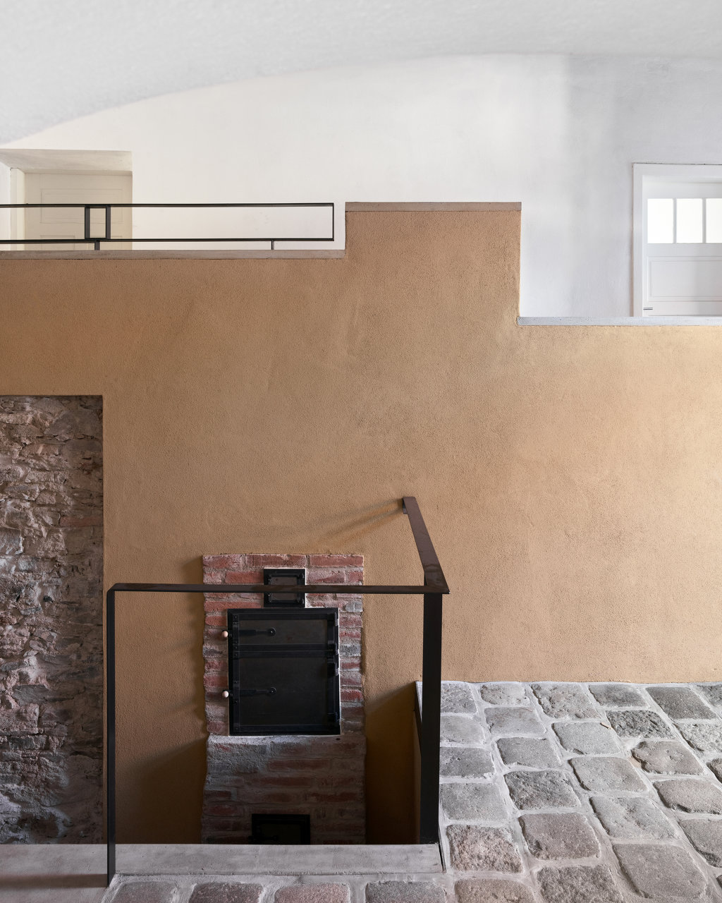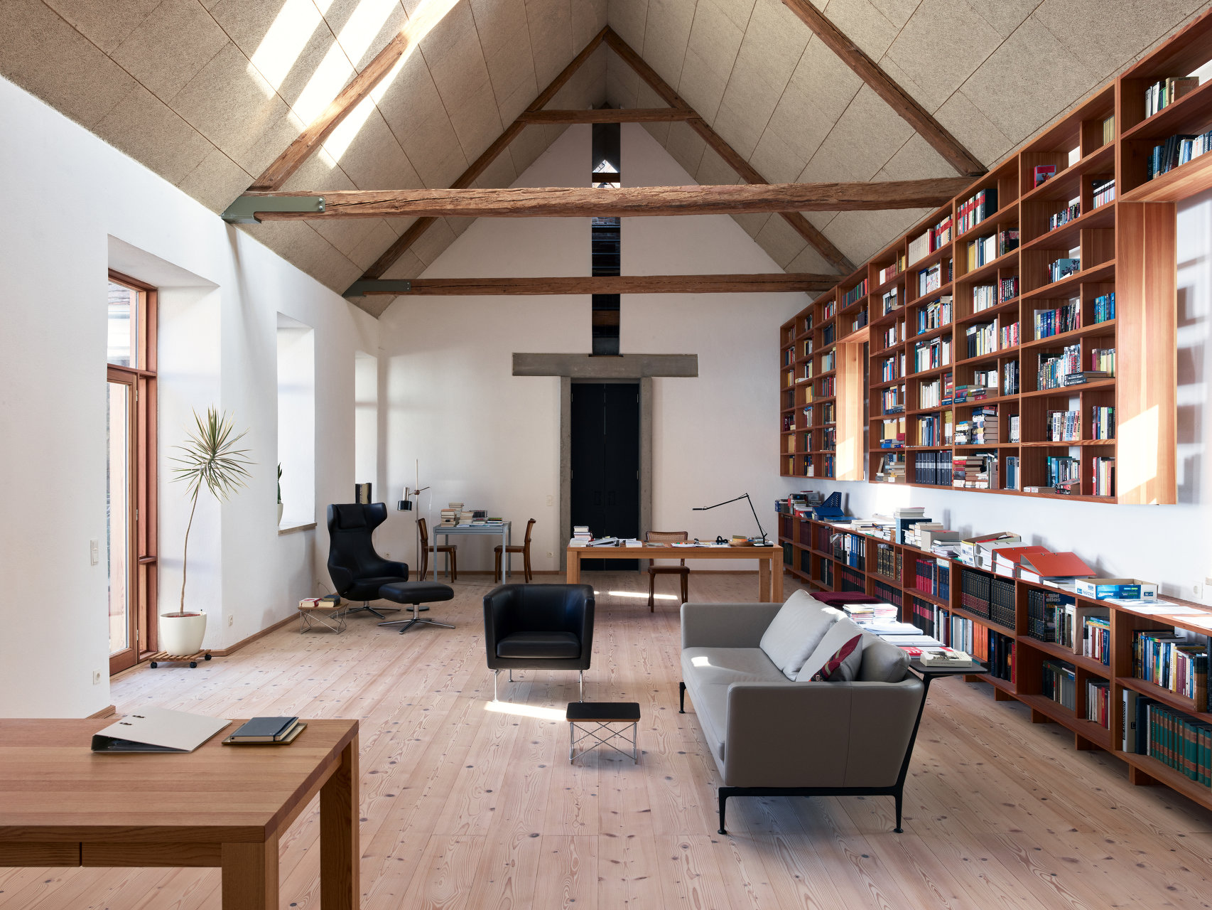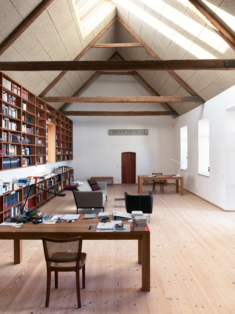 Im nördlichen Waldviertel fegen eisige Winterstürme nahezu ungehindert über die leergeräumte Landschaft, die Ortschaften ducken sich tief in die Mulden und Senken, Kirchturmspitzen zeigen sich oft erst beim Näherkommen. Dort oben, nahe an der tschechischen Grenze, hat sich ein Paar ein Refugium geschaffen und das älteste und wohl auch stattlichste Haus im Ort zu seinem Rückzugsort gemacht. Einst war das alte Haus Gutshof und Vorposten des Stiftes Geras, wovon ein gut erhaltener Wehrturm im Gebäudeverband Zeugnis ablegt, später eine einfache Landwirtschaft mit Stallgebäuden, Scheunen sowie einer kleinen Schmiede. Der bereits renovierte Wohntrakt aus dem 19. Jahrhundert wird von der Bauherrschaft bewohnt, der geschlossene Vierseithof als abgeschiedenes Wochenenddomizil genutzt. Nun ist ein weiterer Ausbau geplant: der ehemalige Kuhstall soll Heimstatt für Bücher werden: Über 2000 Bände aus ihren privaten Beständen will die Bauherrschaft dort in einer Bibliothek vereinen.Der Stall, teils aus mächtigen Granitsteinen gemauert, ist bei Planungsbeginn ein gedrungener, dunkler Raum. Das zentrale Problem der zukünftigen Bibliothek besteht in der unbefriedigenden Anbindung an das Haupthaus: der Zugang erfolgt über eine kellerartige, unattraktive Zwischenzone. Die räumliche Lösung für die neue Situation ist zwingend: Durch Abbruch der Zwischendecke mit darüber befindlicher, ehemaliger Mehlkammer, Verlegung des Haupteingangs und Verkürzung der Trennwand zum Gang auf Parapethöhe entsteht eine großzügige Eingangshalle. Sie bildet als zentraler Verteiler einen Schwellenraum, dessen adaptierte Topographie die verschiedenen Niveaus angrenzender Räume erschließt. Mit seinem Bodenbelag aus Granitsteinen erscheint er wie ein überdachter, beinahe mittelalterlich anmutender Platz. Von Eingang kommend gelangt man rechts über einen ansteigenden Gang zu Bad, Schlafzimmer und Küche, links betritt man die Bibliothek, die als hoher, lichtdurchfluteter Raum ausreichend Platz zum Arbeiten, Wohnen und Lesen bietet. Sämtliche Bücher werden in einem großen Regalelement, das eine ganze Längswand ausfüllt, zusammengefasst. Die bunten, dichtgereihten Buchrücken verleihen dem strengen Großraum eine heitere Note. Große Öffnungen schaffen den visuellen Bezug zum Innenhof, ein großzügiges Oberlicht bringt die Nachmittagssonne in den Raum. Die angrenzende, ehemalige Futterkammer wird zur abtrennbaren Gästeeinheit mit Teeküche, Badezimmer und eigenem Zugang. Eine an der Rückseite des Traktes angebaute Saunakammer, die sich in das große Volumen der angrenzenden Scheune schiebt, komplettiert das Raumangebot.