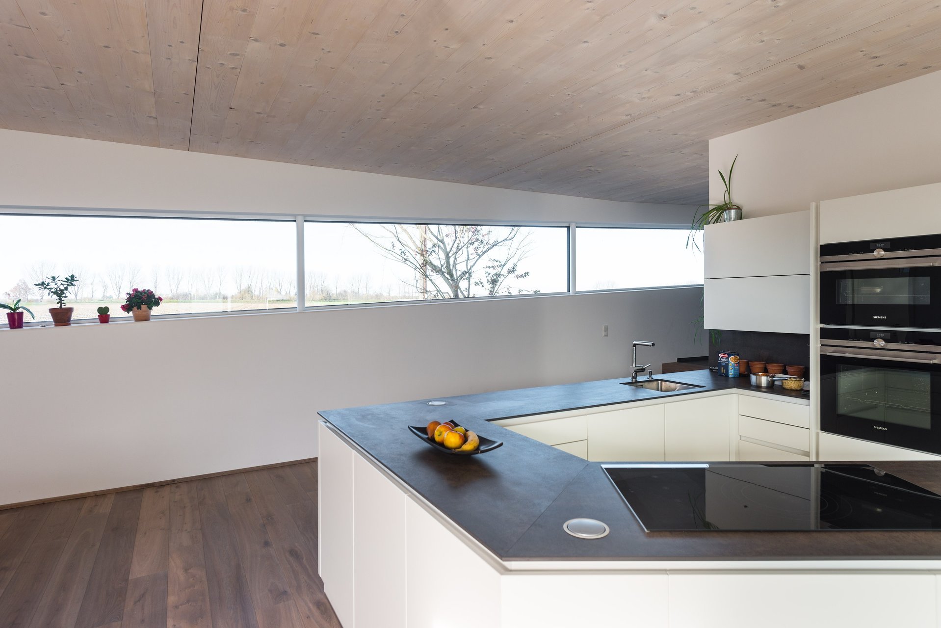 Die wichtigsten Parameter in der Planung waren: offener Grundriss mit fließenden Raumübergängen (loftfeeling),optimale Eingliederung in die Umgebung am Dorfrand, Öffnung des Wohnbereichs zum Garten, offene Küche im Wohnbereich, zwei Bäder, Kinderbereich etwas abseits des Elternbereichs, Arbeits-/Gästezimmer, eine Spielzone für Kinder aber vor allem auch ein ökologisch sinnvolles Haus in kurzer Bauzeit zu realisieren.