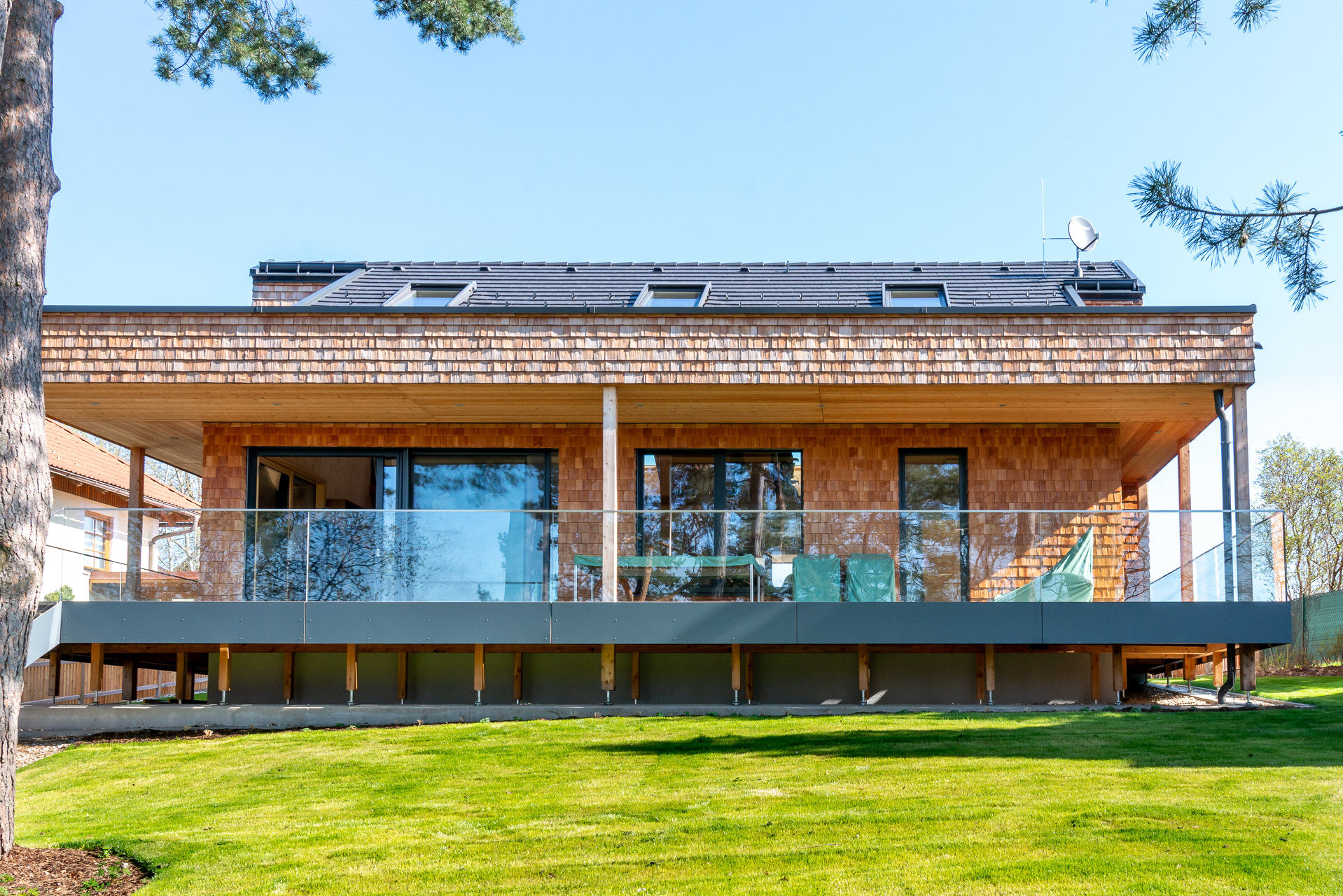 - Holzbau, Überwiegende Verwendung von Dämmstoffen aus nachwachsenden Rohstoffen, Vermeidung von PVC für Fenster, Türen, Vermeidung von PVC im Innenausbau