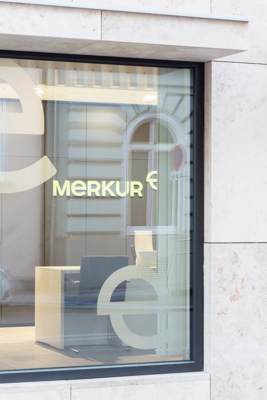 Mit dem Ziel einer harmonischen Einordnung in die Umgebungsarchitektur wurde bei der Neugestaltung der Fassade auch das ursprüngliche Fassadenkonzept aus dem Jahre 1912 analysiert. Die schlichte Steinfassade der ersten beiden Geschoße spricht eine ruhige und unaufgeregte Sprache und greift das damalige und gängige Gestaltungsmittel einer 2-geteilten Fassade auf. (Text: Architekten, bearbeitet)