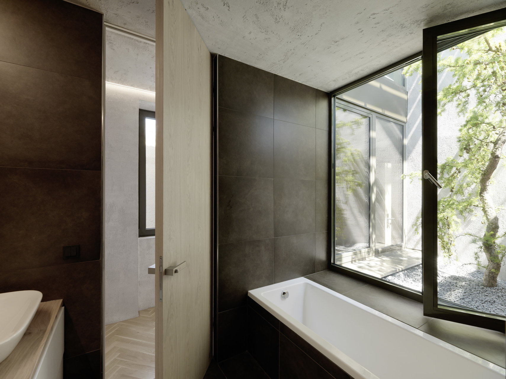 Von Außen unbemerkt findet mit diesem Bauwerk eine Nachverdichtung statt, die den Wohnvorstellungen im Einfamilienhaus gerecht wird, und das mitten in der Stadt. (Text: Martina Pfeifer Steiner)