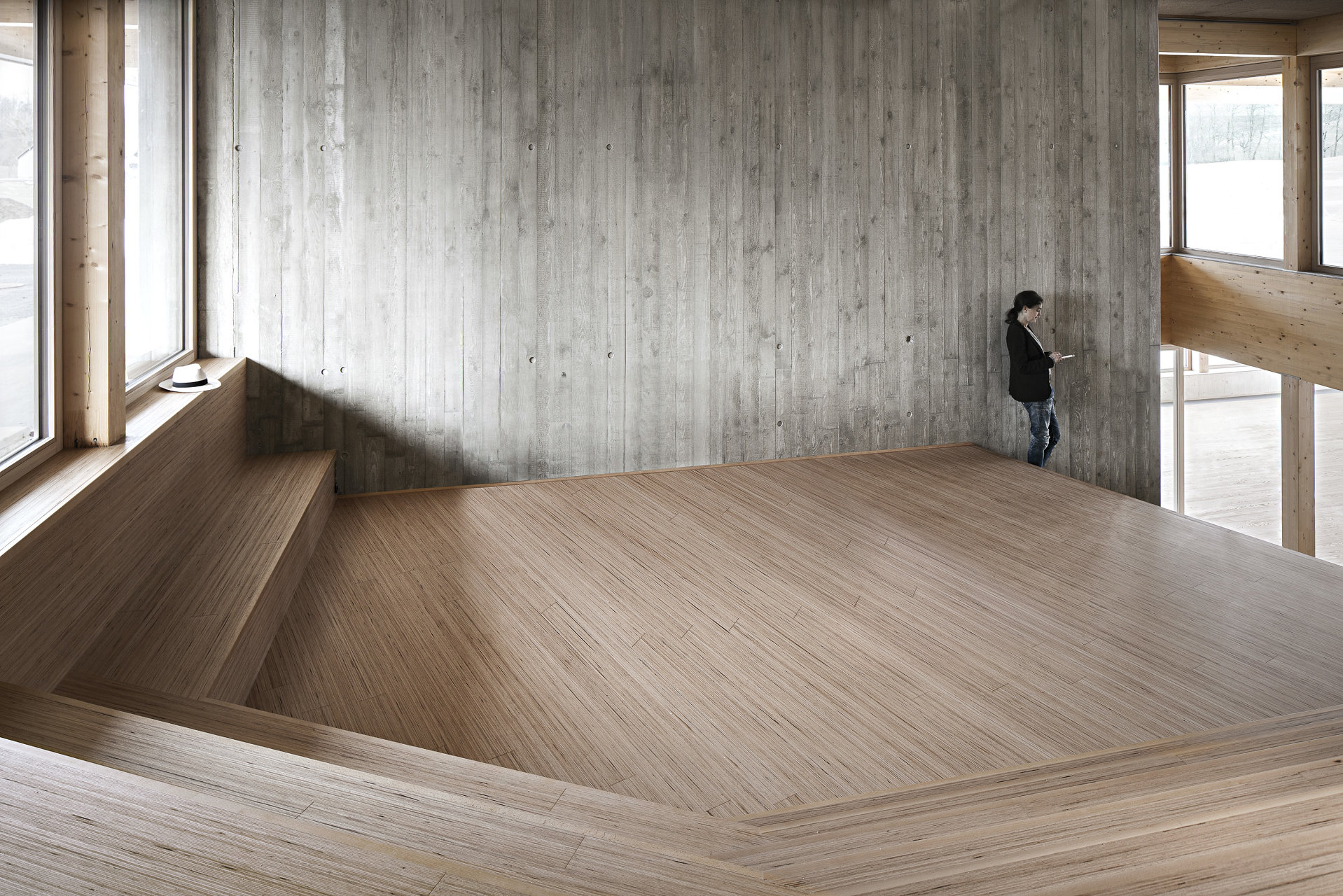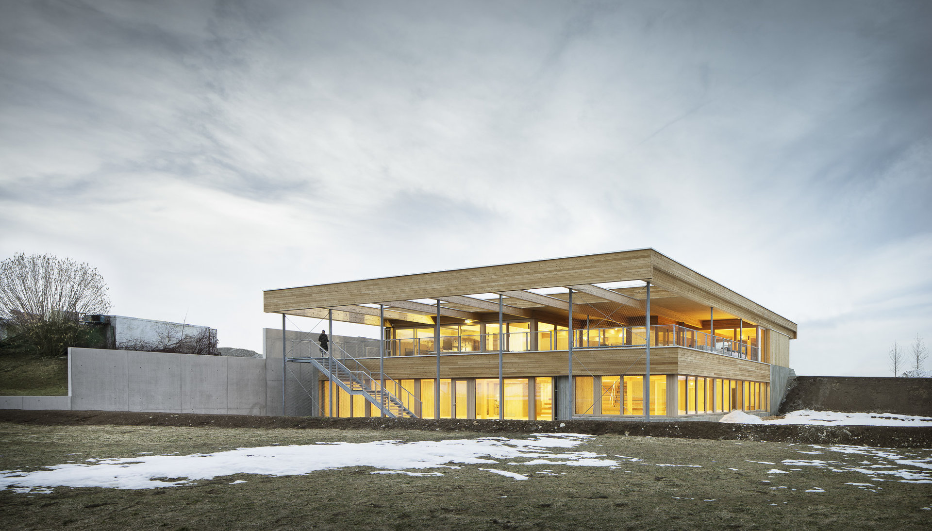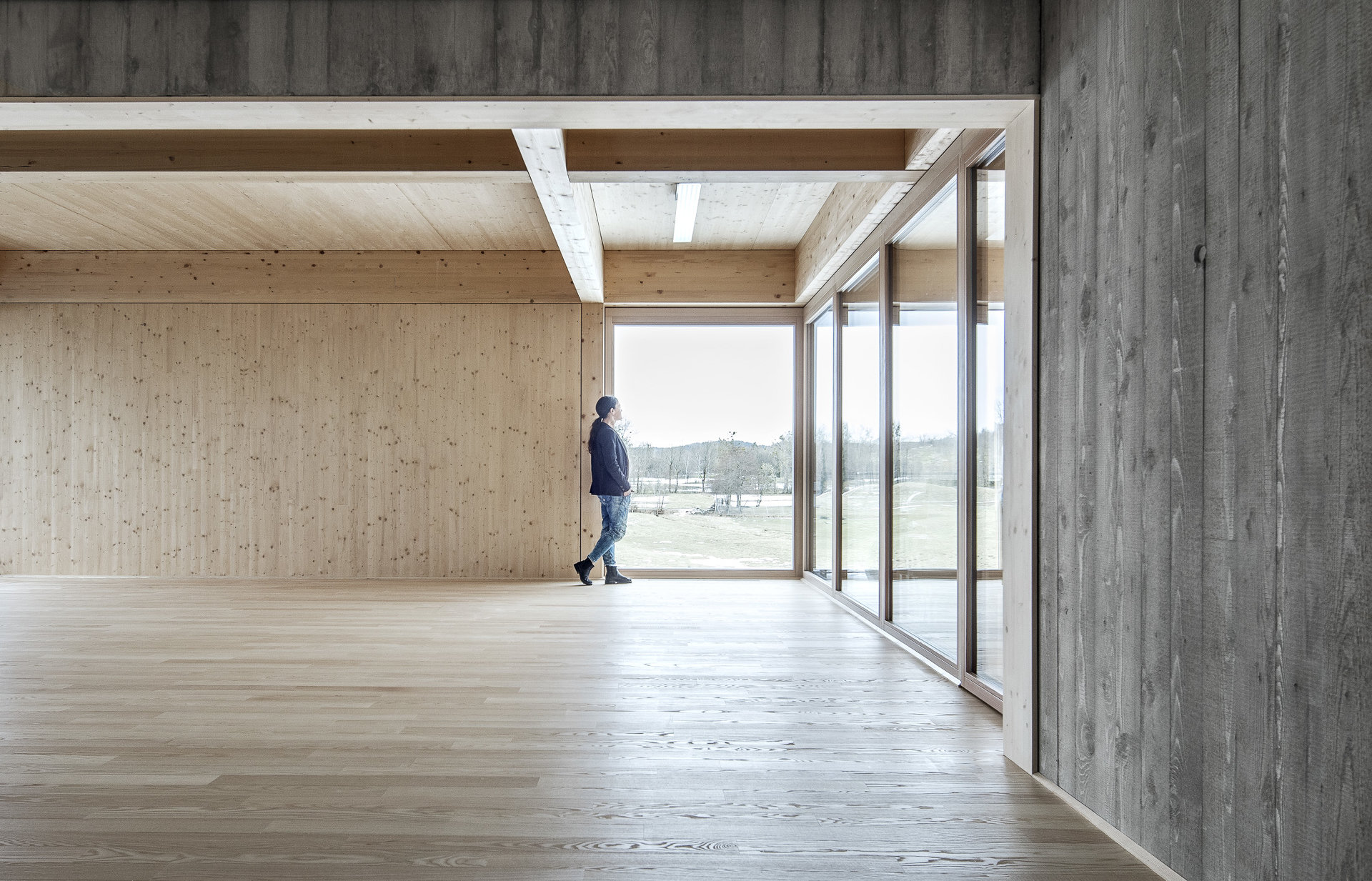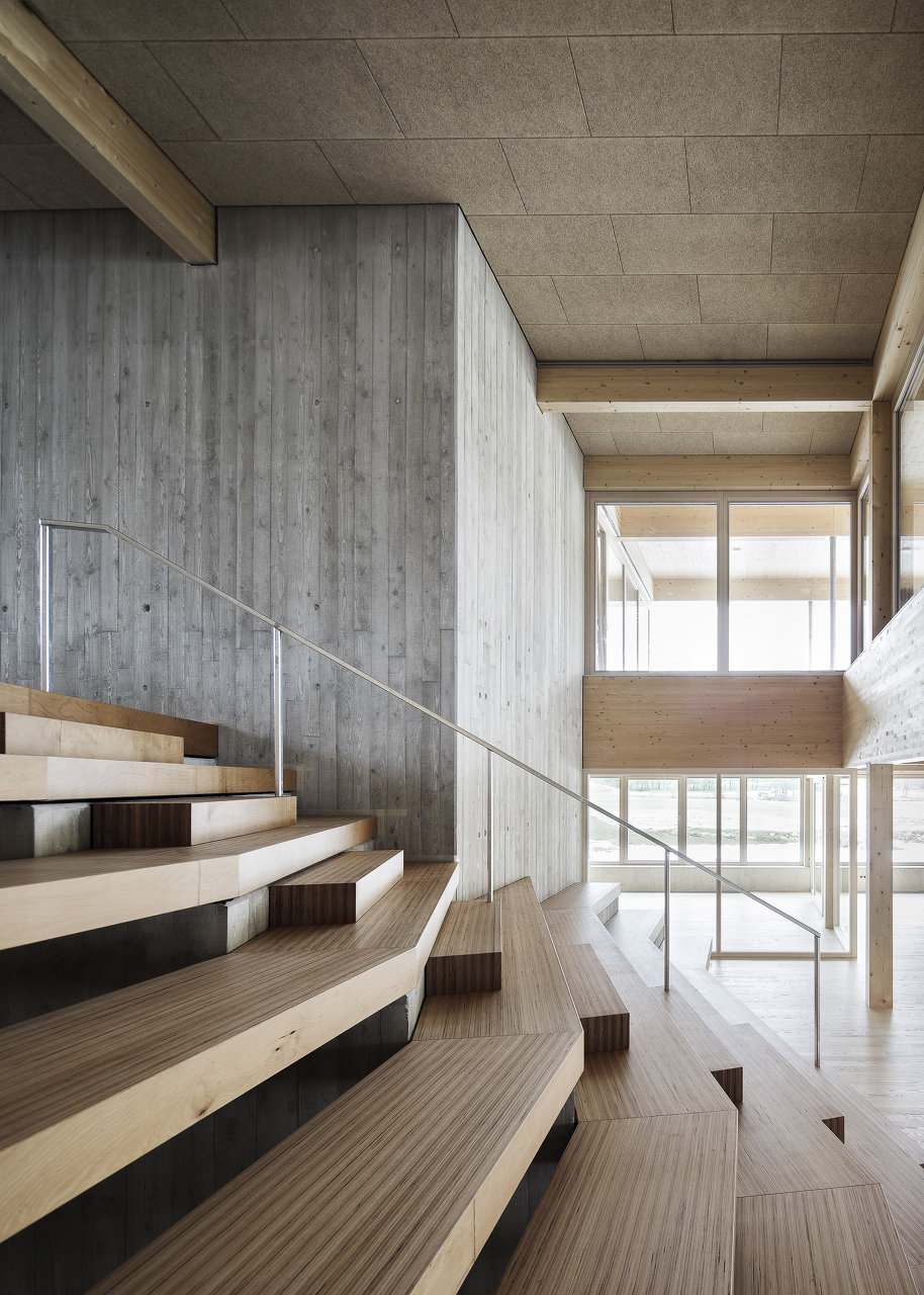 Mit einem offenen Raumfluss und maximaler Flexibilität wurden Raumsequenzen entwickelt die unterschiedlichen Qualitäten und starke Bezüge untereinander aufweisen. Darüber hinaus vermitteln die Räume auf eine großzügige, zum Teil gedeckte Terrasse oder in den davorliegenden Garten. (Text: Architekt)