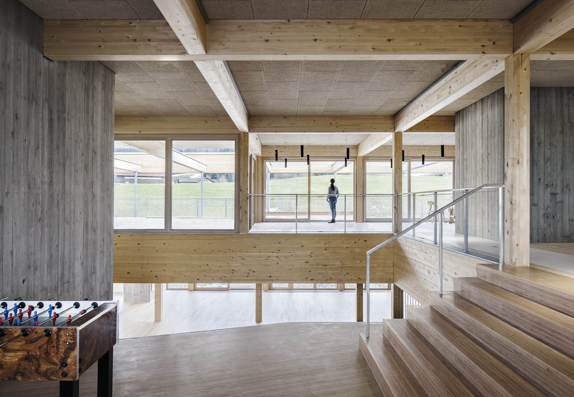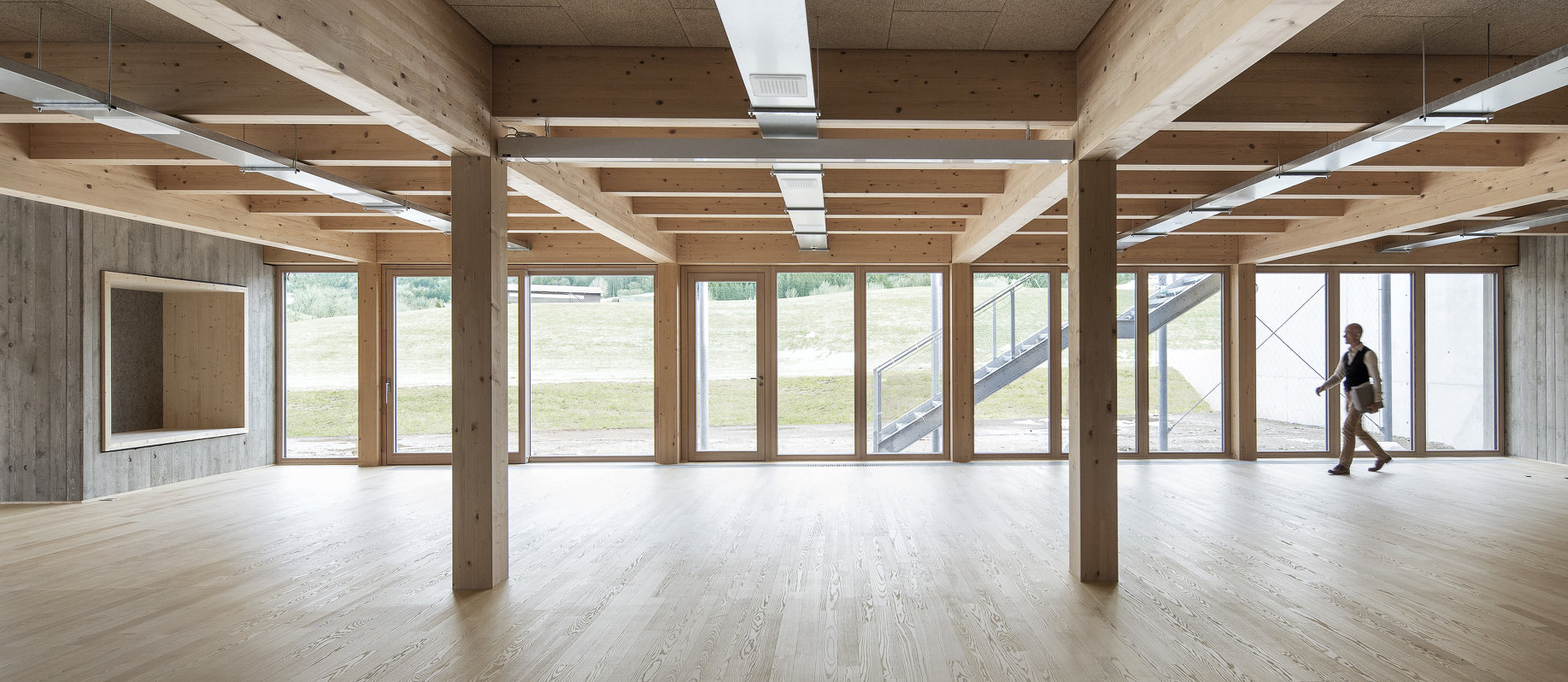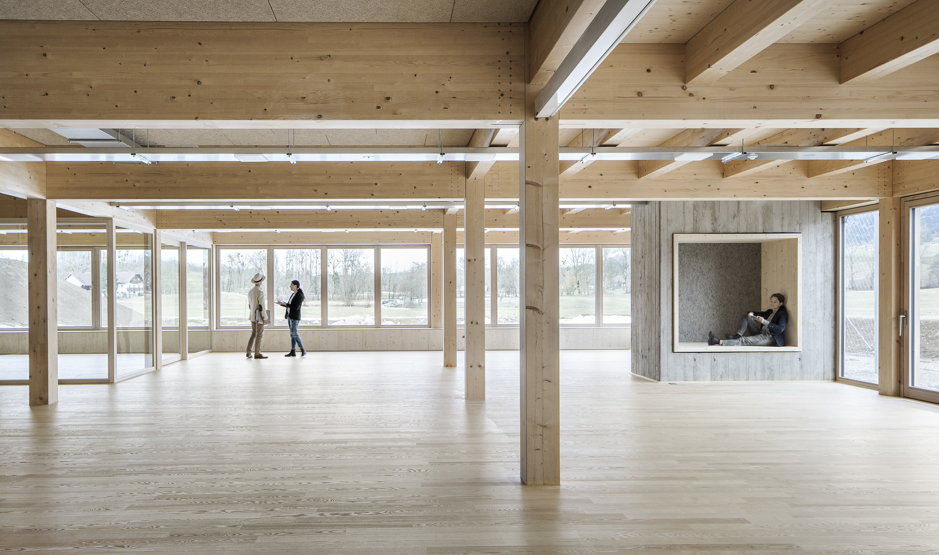 Mit einem offenen Raumfluss und maximaler Flexibilität wurden Raumsequenzen entwickelt die unterschiedlichen Qualitäten und starke Bezüge untereinander aufweisen. Darüber hinaus vermitteln die Räume auf eine großzügige, zum Teil gedeckte Terrasse oder in den davorliegenden Garten. (Text: Architekt)