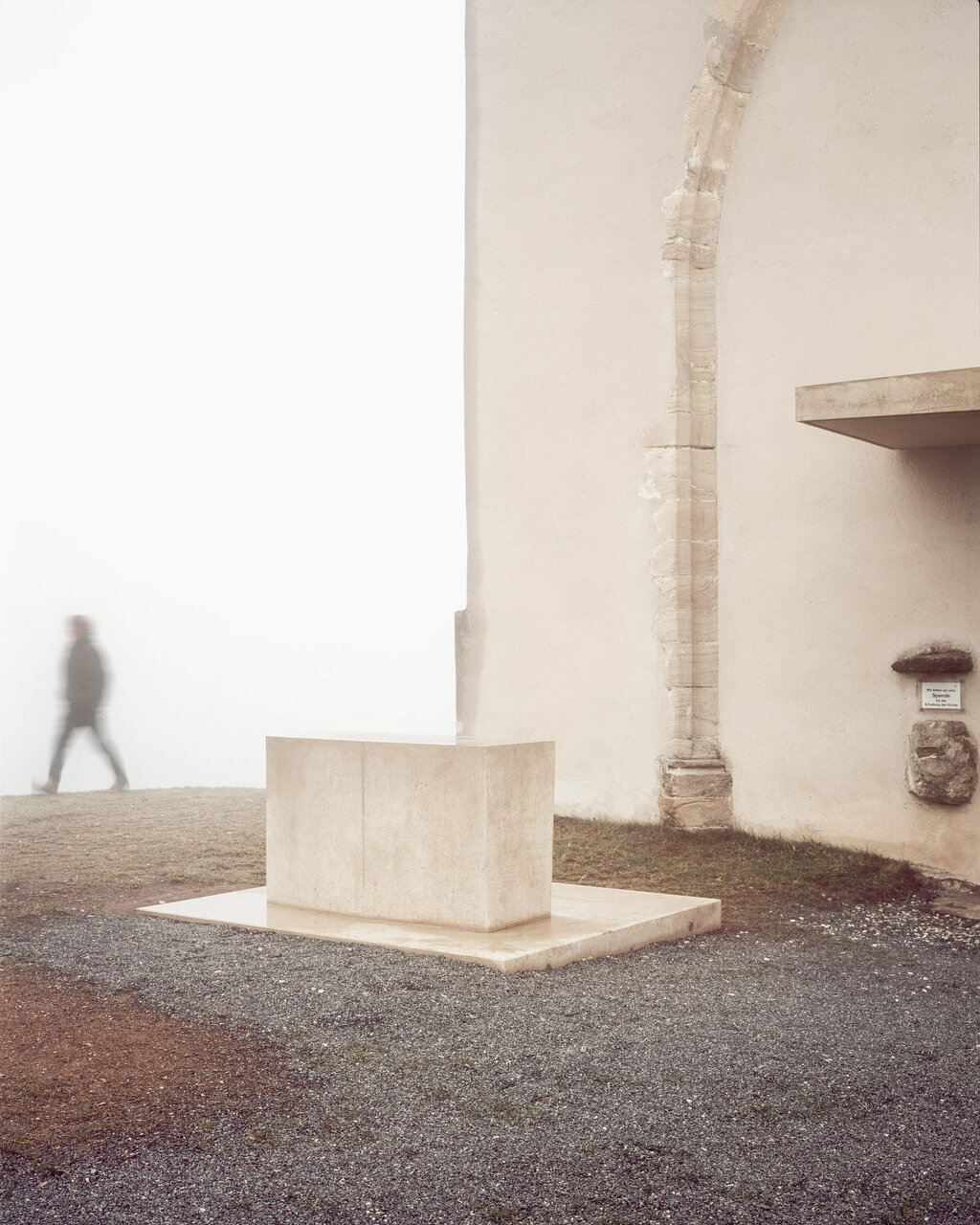 So wie die Kirchebaukörper sind auch die neuen Bauteile scharf in das Gelände geschoben. Durch eine schmale Fuge zwischen Vordach und Bestand kommt es zu keiner Beeinträchtigung des denkmalgeschützten Kirchenbauwerks. Der farblich an die verwendeten Natursteinmaterialien der Kirchenfassade angeglichene Beton wurde in Fertigteilen gegossen und teilweise geschliffen, sodass die Steinkörnung zum Vorschein kam. Durch das Konzept und die zeitgemäße Material- und Formensprache schafft die neue Portalgestaltung der Wolfgangikirche einen Dialog zwischen Alt und Neu. (Text: Architekt)