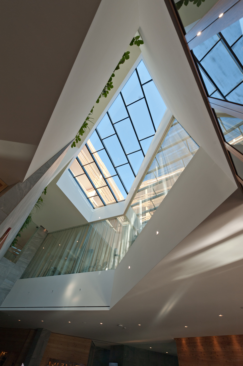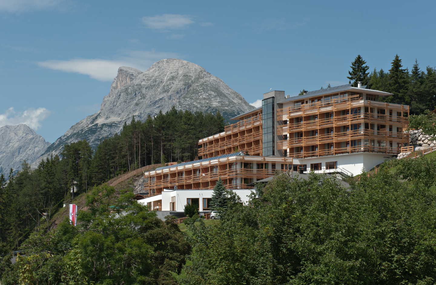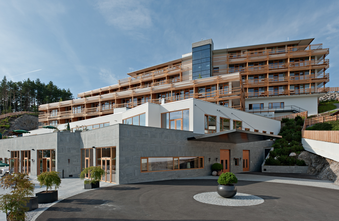 Das Hotel bietet neben einem großen, luftigen Eingangsbereich, ein Wellnessgeschoß, eine Bibliothek, eine Cigar Lounge und eine Lobby Bar. Der Kids Club befindet sich direkt neben der Rezeption und kann somit eingesehen und betreut werden. Die Restaurant Bereiche und die Vinothek sind direkt an die Showkitchen und Küche angebunden und individuell bespielbar. Eine großzügige Terrasse ermöglicht ein ganztägiges Sonnenbad mit Rundumpanorama. Die Einrichtung der Hotelzimmer spiegelt die landschaftlichen Akzente der Umgebung wieder. Es dominiert die natürliche Kraft der Materialien, wie Lärchenholz, Loden, Leder, Leinen und Wolle. Die Regionalität der Produkte steht ebenso im Vordergrund, wie auch die Fühlbarkeit des natürlichen und ehrlich produzierten Naturmaterials. Durch die optimale Ausrichtung der Gästezimmertrakte ist eine angenehme und vor allem natürliche Belichtung der einzelnen Zimmer sicher gestellt. (Text: Architekt, bearbeitet)