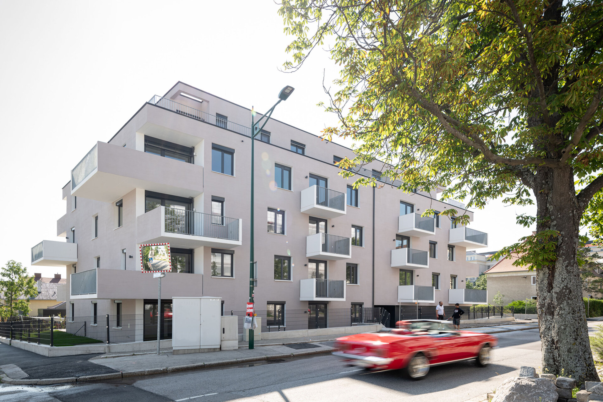 Die Widmung für das östlich der Grutschgasse gelegene Gebäude sieht eine L-förmig zur nordöstlichen Freifläche orientierte Bebauung mit Trakttiefen zwischen 18 und 20 m vor. Darauf aufbauend wurde das Gebäude 2-hüftig rund um ein zentrales Atrium organisiert. Der Zugang zum Gebäude erfolgt über die Grutschgasse. Die gemeinschaftlichen Flächen befinden sich zentral im Gebäude im Erdgeschoss und verfügen über einen Zugang zum Garten. Durch die Integration der Tiefgarageneinfahrt in die Gebäudekubatur im Südwesten können die hochwertigen Freiflächen im Süden für Wohnungsgärten genutzt werden.