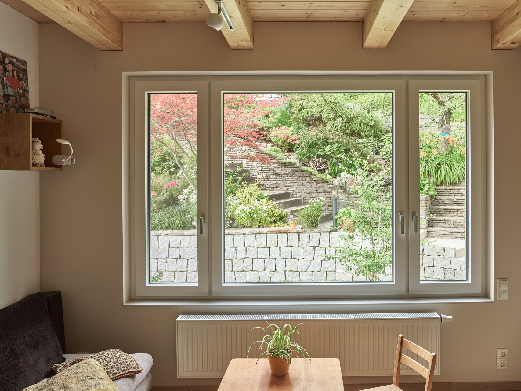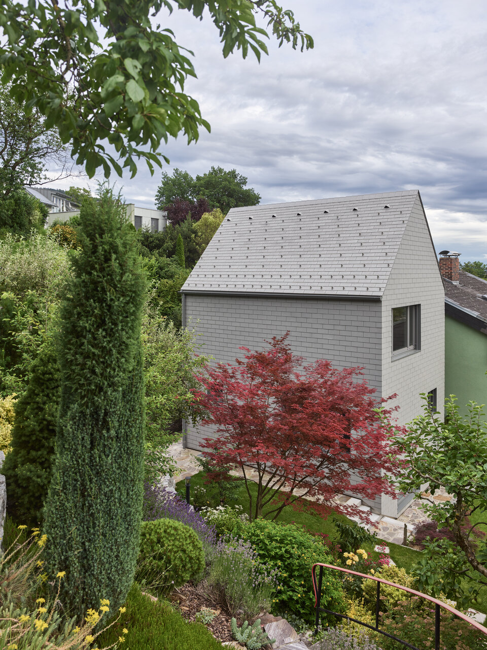 Das Raumprogramm und hohe handwerkliche Ausführungsstandards sowie Eichenparkett, kalkweiße Wände und freiliegende Holzdeckenkonstruktionen garantieren gediegenen Wohnkomfort für zwei bis drei Personen. Präzise gesetzte Fensteröffnungen durchfluten die Innenräume mit Tageslicht. (Text: Architekten)