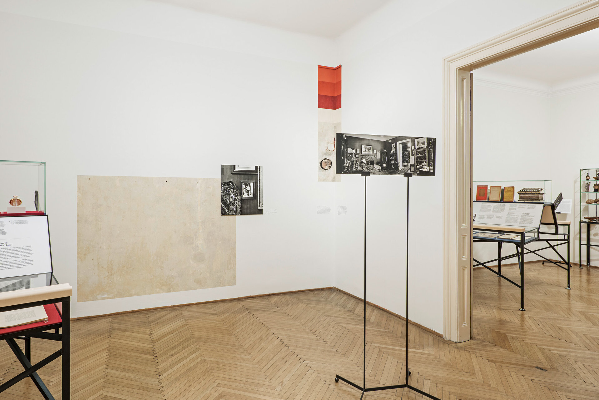 Die Leere der Wände und die Leichtigkeit des Ausstellungsdesigns stehen im Kontrast zu Freuds eigener Einrichtungsweise mit orientalischen Teppichen und Decken, dunkelfarbigen Wänden und dicht an dicht gehängten Bildern und lassen Imaginationsspielraum.
