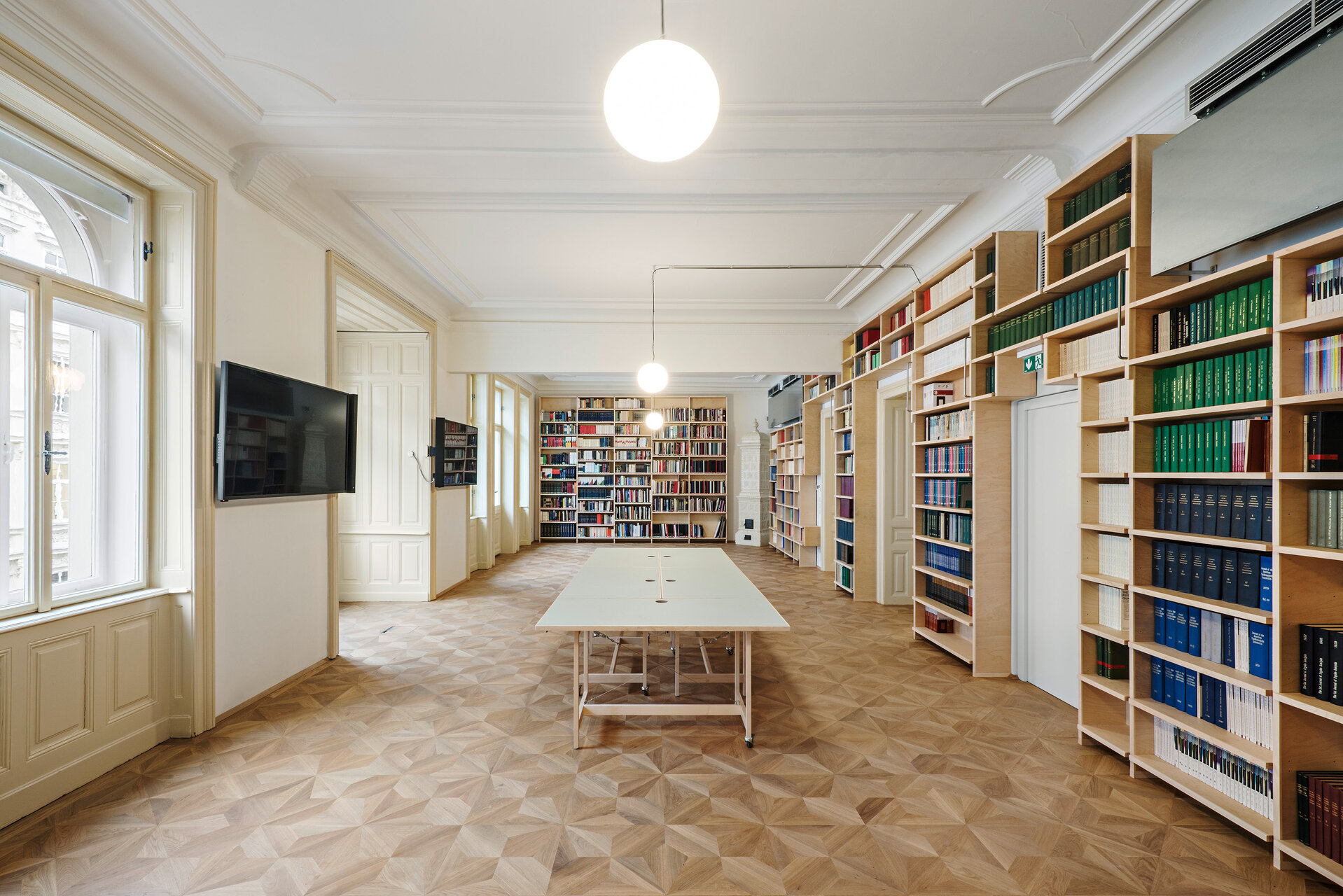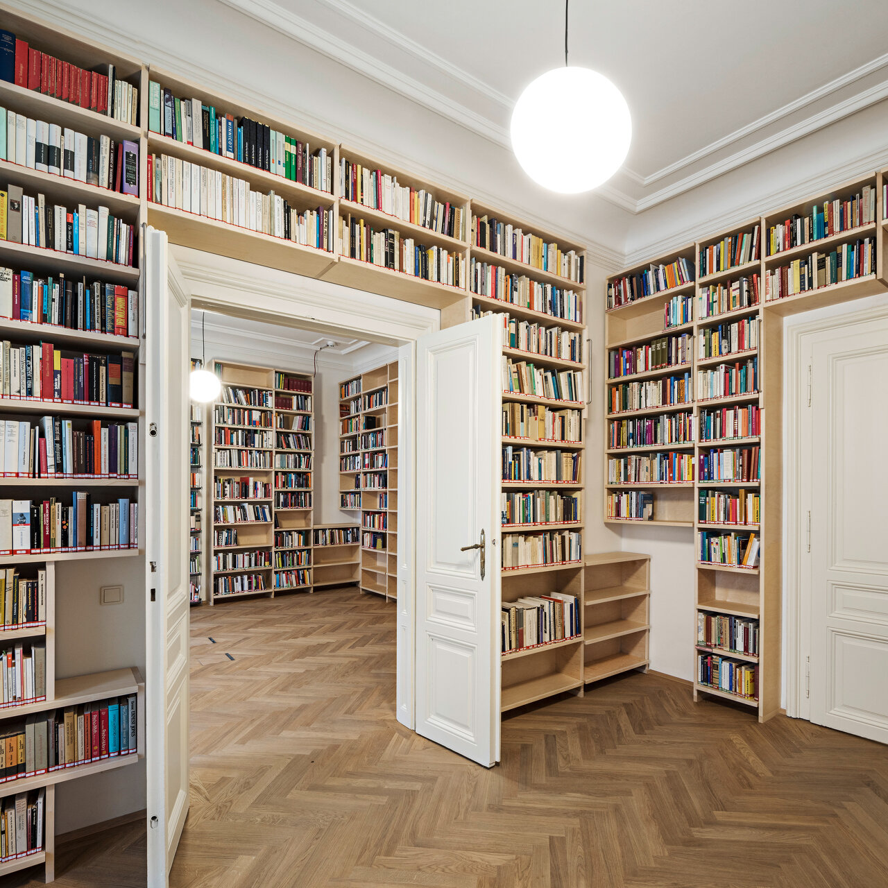 Im ersten Stock befinden sich die Bibliothek, eine der weltweit bedeutendsten Bibliotheken zur Psychoanalyse, Lesesaal und Archiv. Im Erdgeschoß entstand ein neues Foyer mit Café und Shop. Ebenfalls neu ist die Stiege, die nun alle Museumsgeschoße zu einem Rundgang verbindet.