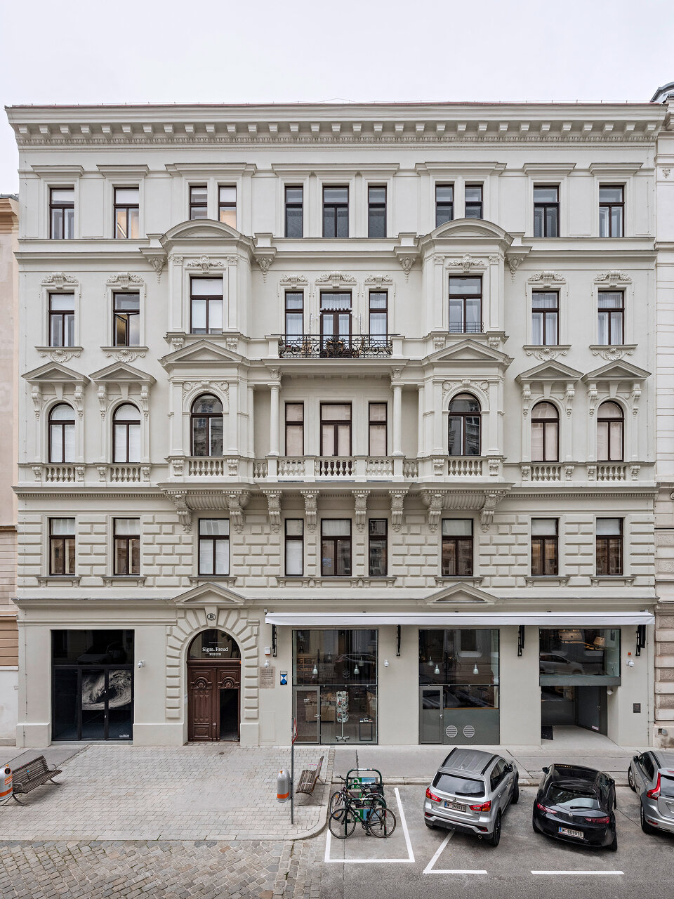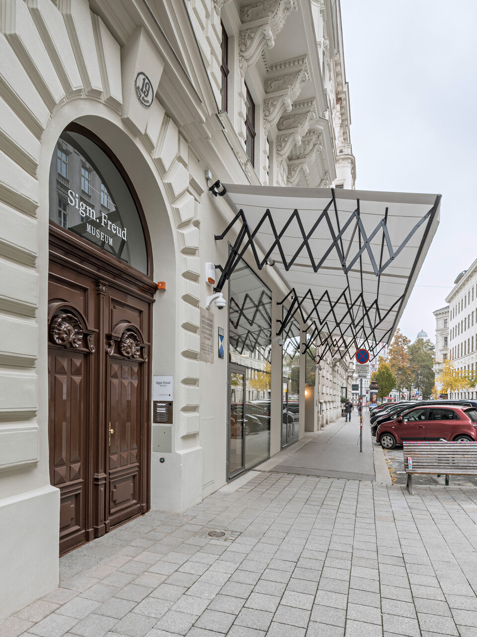 Das 1889 errichtete Haus Berggasse 19, ein fünfgeschossiger, etwas schwerfälliger Bau, ist architektonische „Standardware“ der Hochgründerzeit. Das Haus wurde im Zuge des Umbaus saniert. Über die Neugestaltung der Erdgeschoßzone teilt sich seine inhaltliche Bedeutung nun verstärkt nach außen, zur Stadt hin mit.