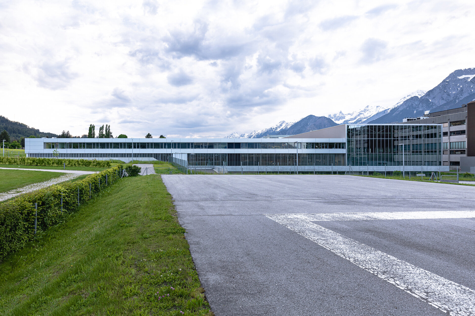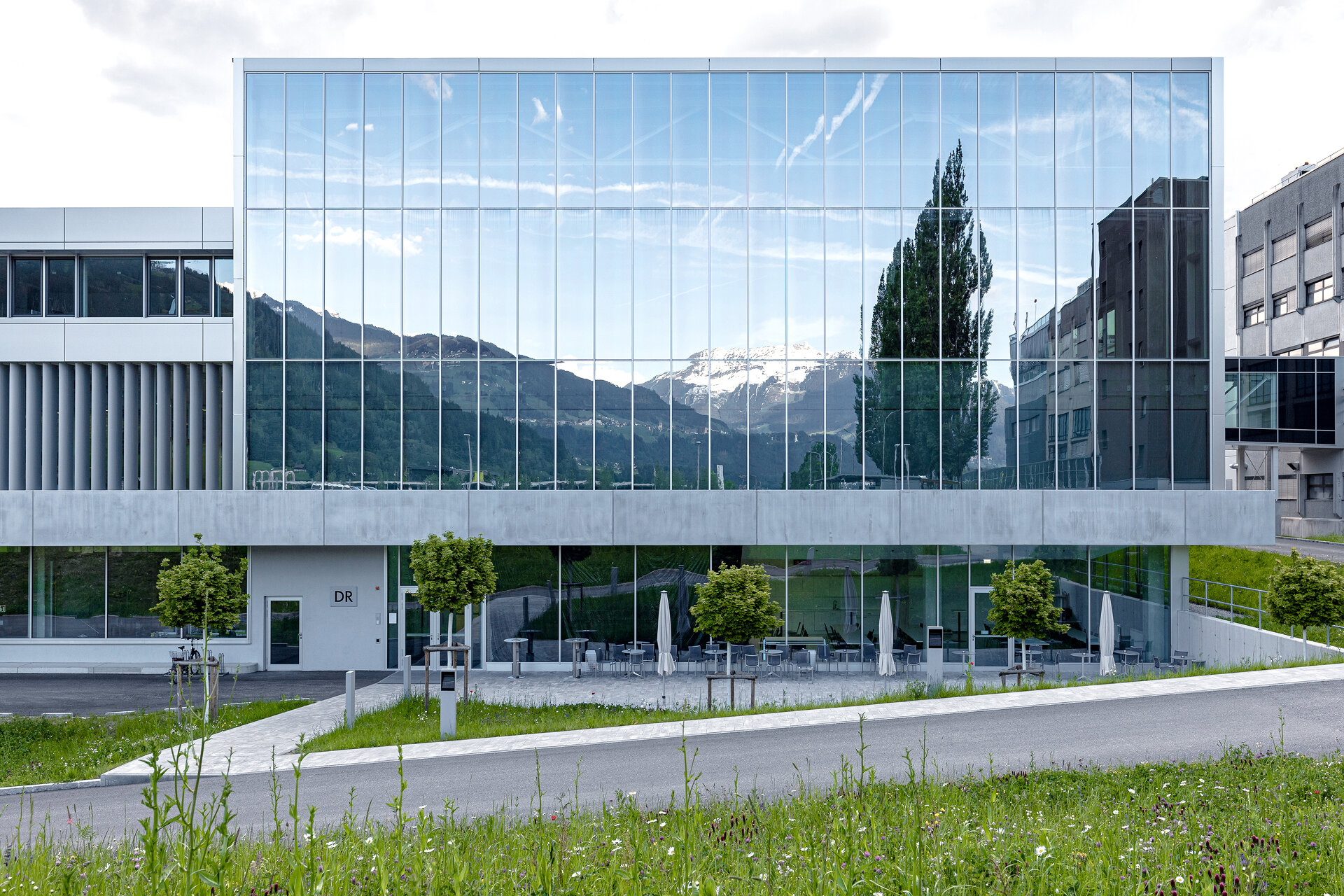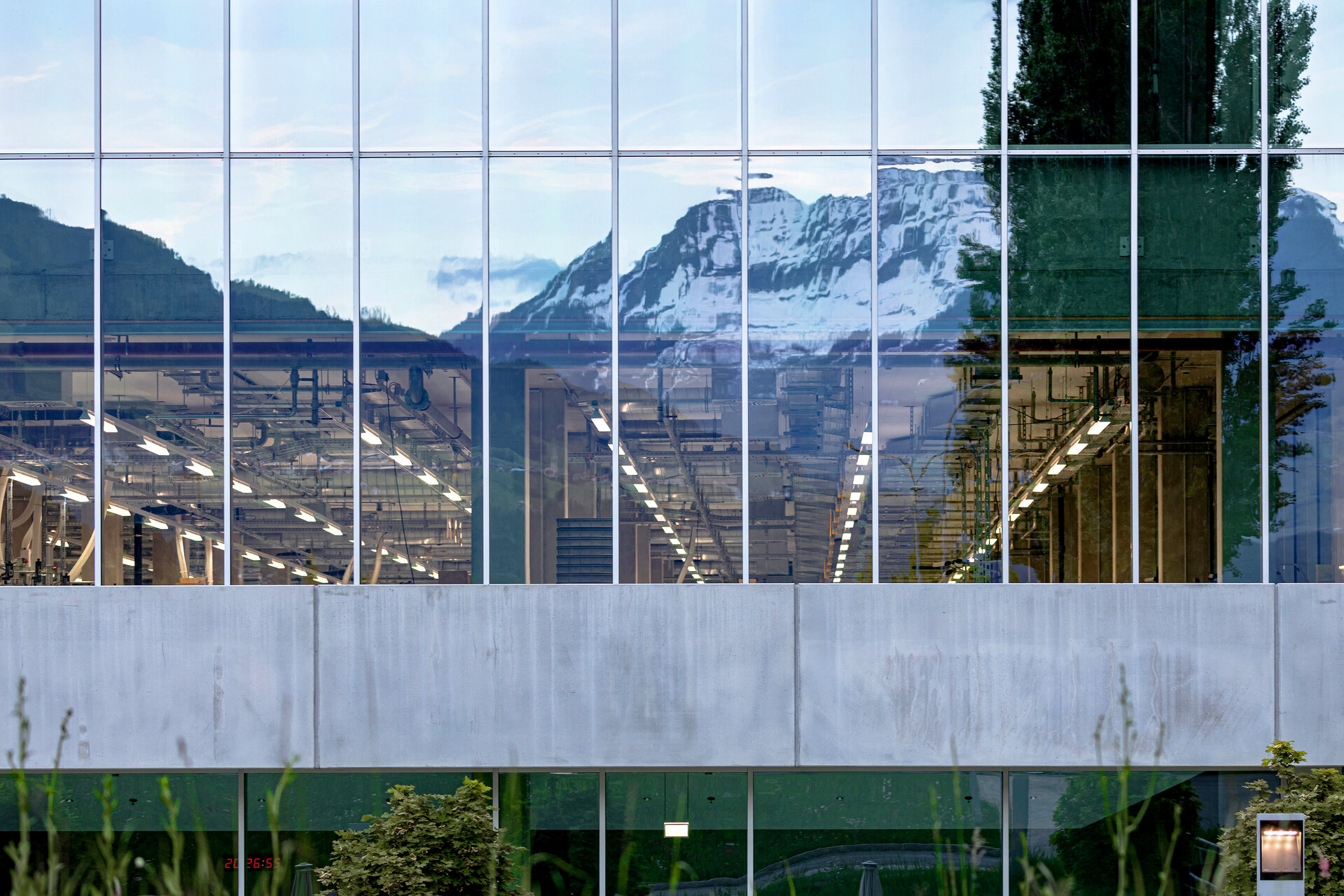 Gekleidet ist das moderne Industriegebäude in eine großflächige Glasfassade (4.700 m²), die nicht nur ein ruhiges Bild, sondern gleichzeitig eine angenehme Arbeitsatmosphäre für die Mitarbeiterinnen und Mitarbeiter schafft. Denn die großen Fenster fluten die Produktions- und Büroflächen mit natürlichem Tageslicht und erzeugen sowohl thermischen als auch visuellen Komfort – ein Ambiente, das in gewöhnlichen Fabrikshallen selten zu finden ist.
