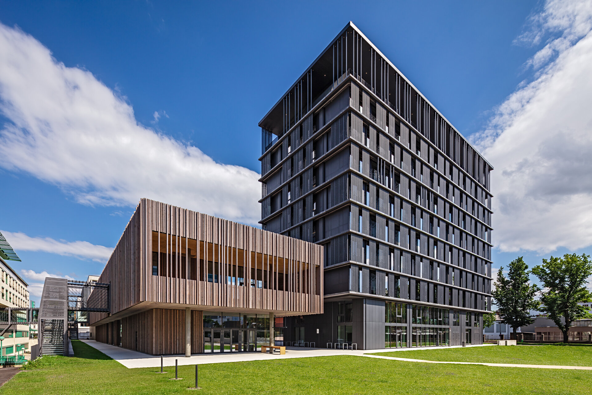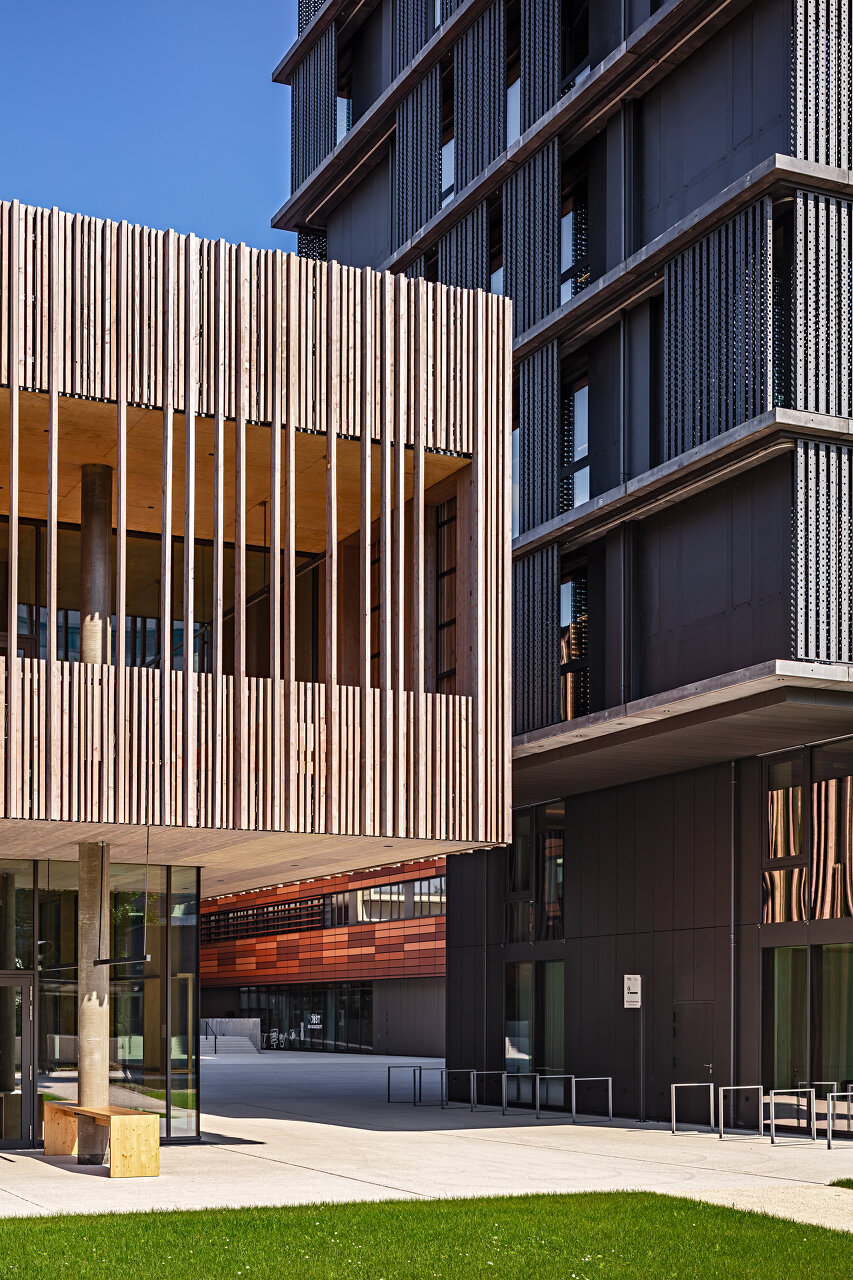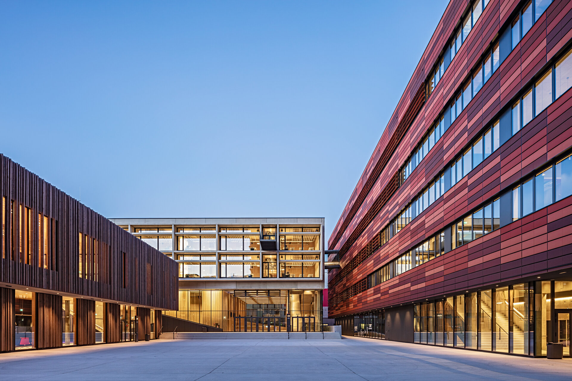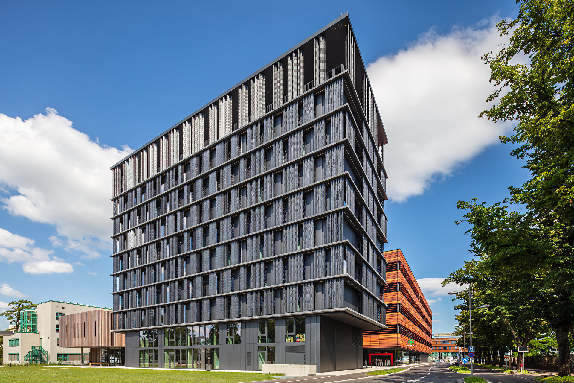 Fassade: METALLICA Stahl- und Fassadentechnik GmbH, Wien; Holzbau Bibliothek: Graf-Holztechnik GmbH, Loosdorf; Dach: METALLICA Stahl- und Fassadentechnik GmbH, Wien; Flachdach Bibliothek: FDD GmbH & Co. KG, Linz; Dachbegrünung Bibliothek: IAT GmbH Greenline; Fenster: METALLICA Stahl- und Fassadentechnik GmbH, Wien; Fritscher Metallbau GmbH, Hörsching; Türen: METALLICA Stahl- und Fassadentechnik GmbH, Wien; Fritscher Metallbau GmbH, Hörsching; Schlosserarbeiten: Fritscher Metallbau GmbH, Hörsching; Metallbau Hulan GmbH; Thomas Kraus, Niederthalheim; Trockenbauarbeiten: Sperer Acoustics GmbH, Wels; Maler: „HAPPY“-Maler Ges.m.b.H., Linz; Baumeisterarbeiten: Strabag AG, LinzEBG GmbH, Linz; Elektroinstallationen: EQOS Energie Österreich GmbH, Linz; Elektrotechnik Tiefgarage: Gottwald GmbH & Co KG, Melk; Sanitär: EBG Haustechnik GmbH & Co KG, Linz; Heizung, Kühlung: Ing. August Lengauer GmbH & CoKG, Linz; Lüftung: Bacon Gebäudetechnik GmbH, Linz; Gebäudeautomation: Honeywell Austria Gesellschaft mbH, Linz; Aufzug: Schindler Aufzüge und Fahrtreppen GmbH, Linz; Medientechnik: PKE Electronics GmbH, Linz; Lichtplanung/-ausstattung: Artluce Produktions GmbH, Vomp; Nimbus Group GmbH, Stuttgart, D; Böden: Raumausstattung Wiesinger GmbH, Eferding; Holzmöbel: Tischlerei Füreder GmbH, Linz; Holzverkleidungen: Tischlerei Scheschy GmbH, Neufelden; Hörsaalbestuhlung: Zehetner Einrichtungen GmbH, Gerersdorf; Küchen: STIERLEN Großküchen Vertriebs GmbH, Wien; Türen Innen: Allmetall Alu- u. Stahlbau GmbH, Klagenfurt; Holzbau Tratter GmbH, St. Kanzian am Klopeiner See; Tischlerei Scheschy GmbH, Neufelden; Laboreinrichtung: Waldner Laboreinrichtungen GmbH & Co. KG, Wangen im Allgäu, D