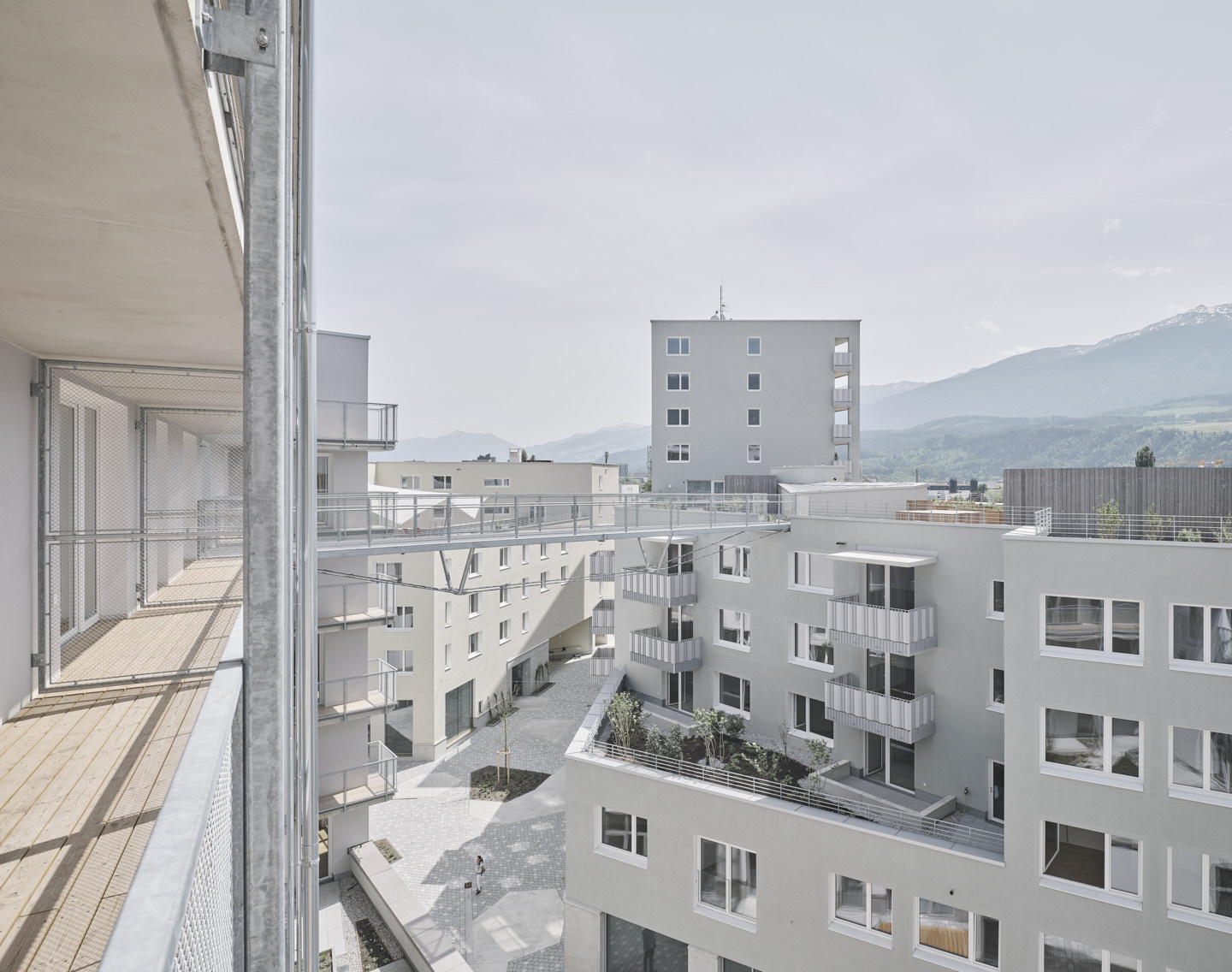 Die Umsetzung der vier Bauteile – jeweils zwei für die IIG und zwei für die Neue Heimat Tirol – erfolgte im Sinne der architektonischen Vielfältigkeit gemeinsam mit Harald Kröpfl, Ralf Eck und Christoph Eigentler, den Zweitplatzierten des Architekturwettbewerbs. (Text: Claudia Wedekind)