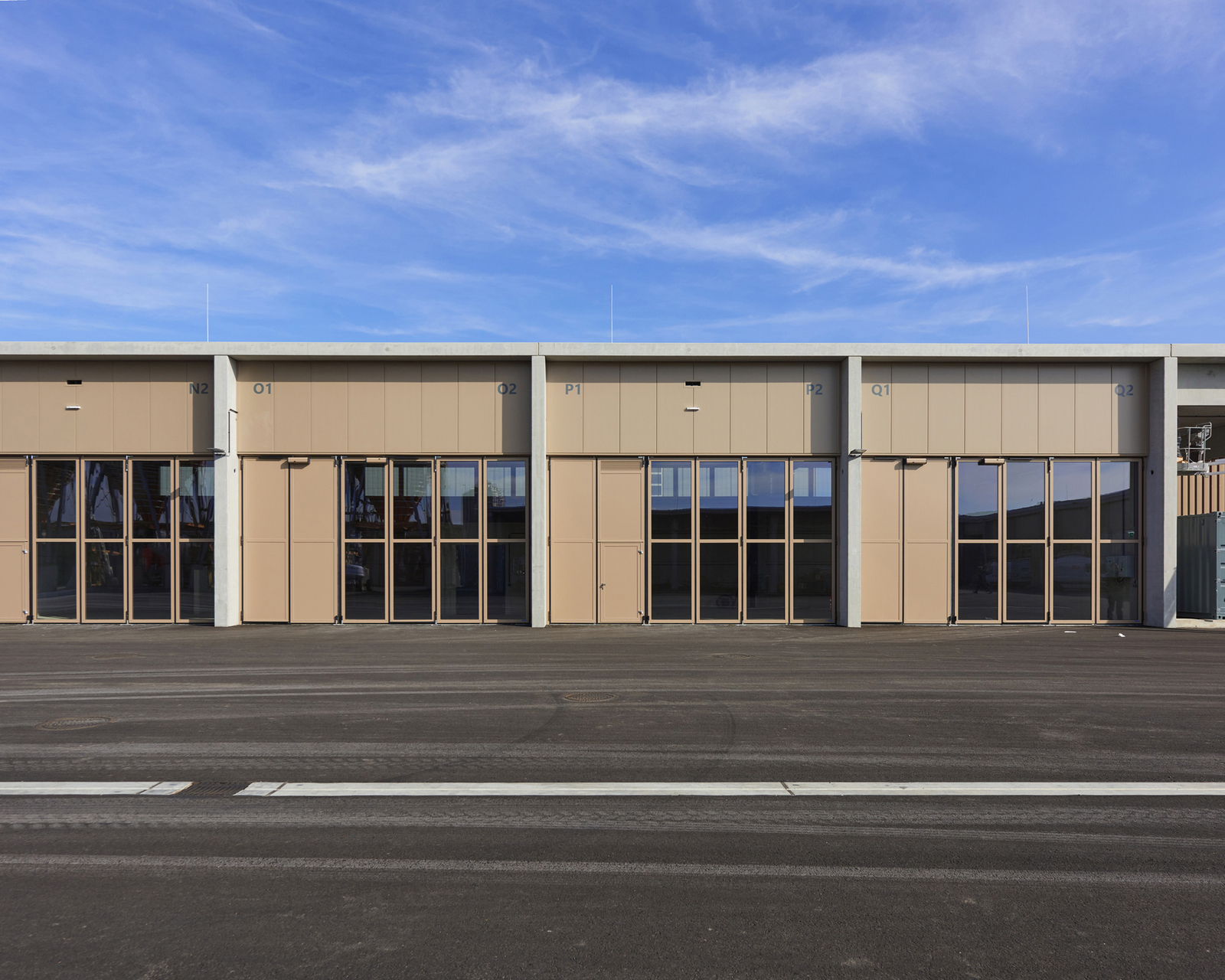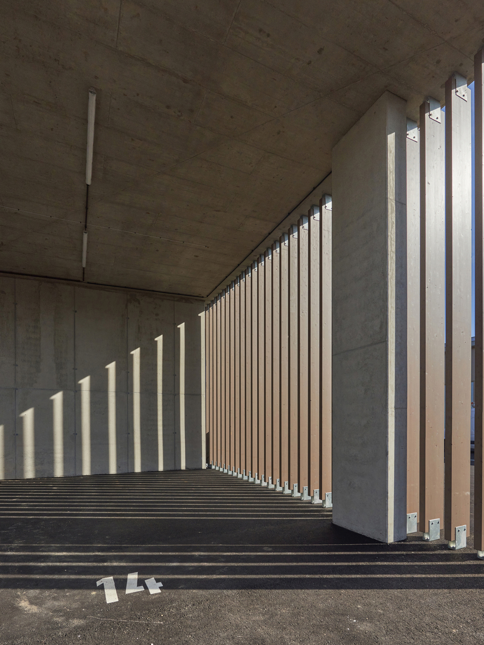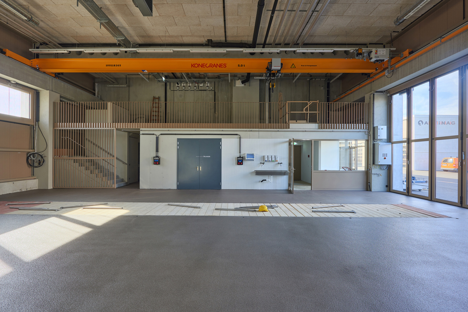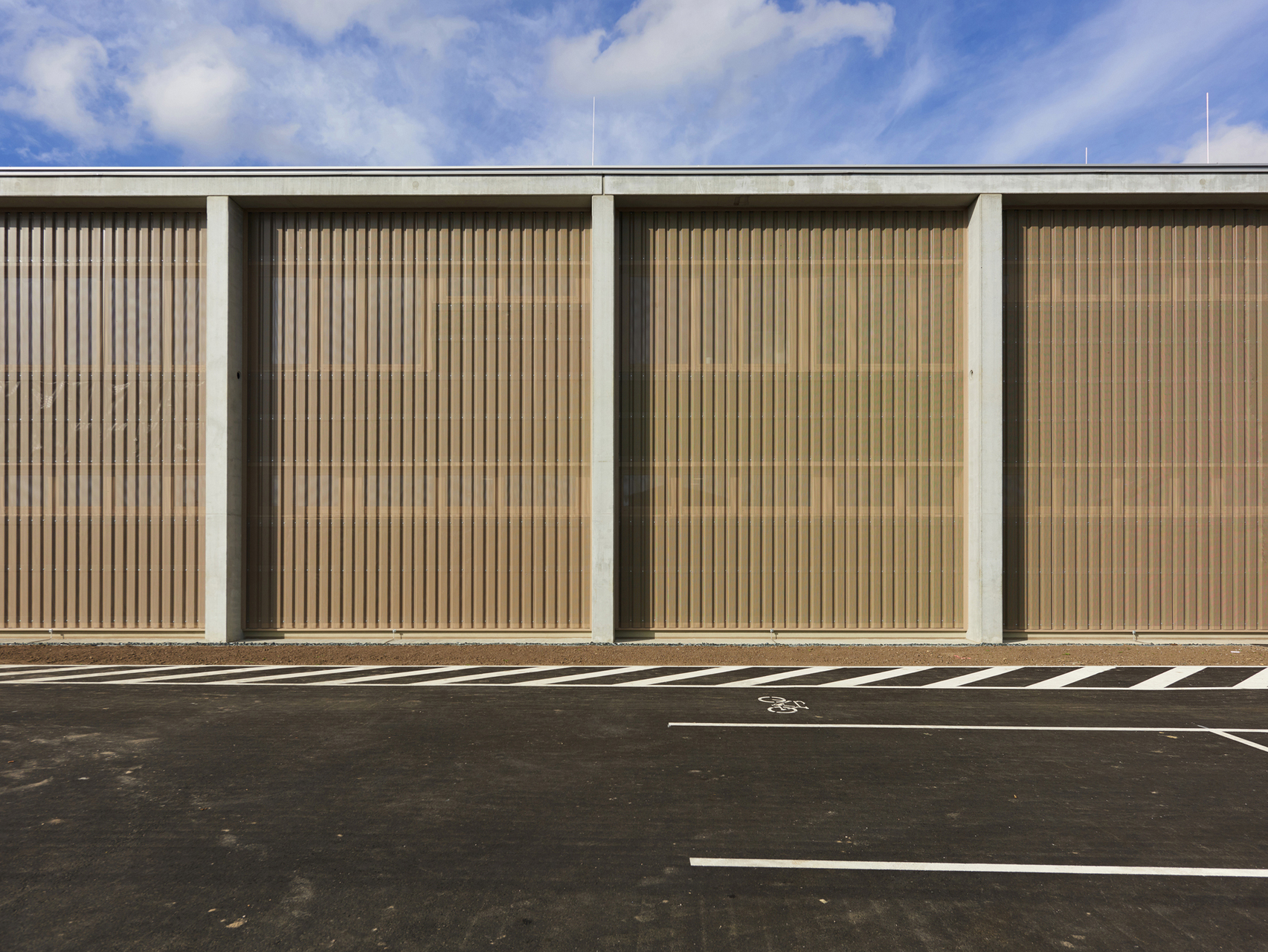 Der Untergrund wurde mit einer Kalk-Stabilisation verbessert. Streifenfundamente und B7 Stahlbeton-Oberflächen mit Besenstrich bilden die Fundierung und den Hallenboden. Die Anlage ist mit Stahlbetonfertigteilen und Sichtbetonoberflächen als Skelett- und Scheibenbau mit massiven Elementdecken ausgeführt. Die Hallen sind größtenteils mit Blechfassaden in Industriequalität mit Stahlunterkonstruktion gebaut, der Bürotrakt ist ebenfalls mit den perforierten Blechfassaden der Hallen in das gesamte Erscheinungsbild eingefügt. Die hellen Betonfassaden dieses Industriebaus - die Fertigteilstützen, Hohlwände, Attikaträger und Ortbetonflächen, die jeweils verschieden hergestellt wurden - bekamen eine einheitliche Materialität. (Text: Architekt, bearbeitet)