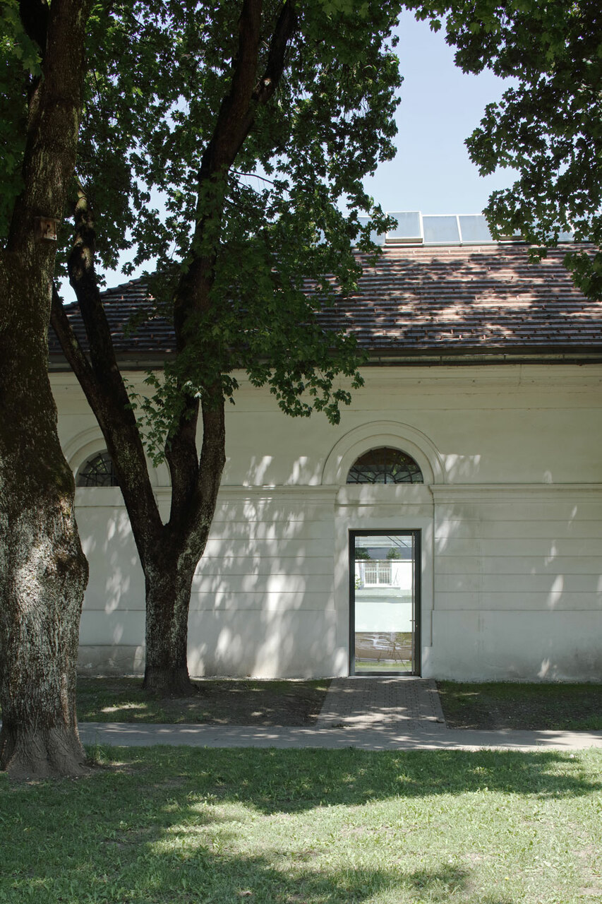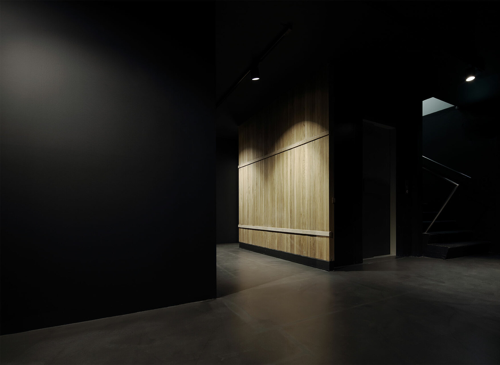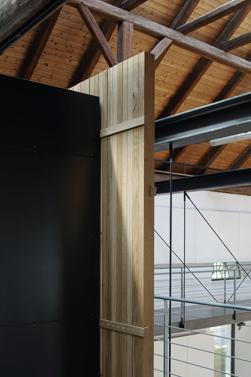 Die Grundhaltung – das denkmalgeschützte Gebäude äußerlich in seinen Grundfesten bestehen zu lassen und die sichtbaren Eingriffe möglichst minimal zu halten – beschreibt die Leitidee. Eine Wandscheibe, das Grundelement um architektonischen Raum zu schaffen, führt über alle drei Geschoße und nimmt neue Funktionen auf.