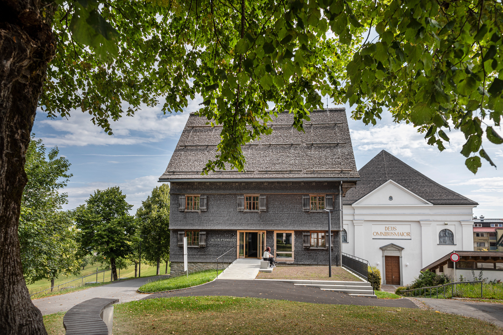 Der alte Pfarrhof steht leicht erhöht auf einem Natursteinsockel zwischen Kirche, Friedhof und dem großen Platz mit der Marienlinde, wo in den 1970ern der Laurenzisaal und später das neue Pfarramt errichtet wurde. Vertreterinnen von Pfarre und Gemeinde waren sich auch der immateriellen Bedeutung des alten Pfarrhofs für den Ort sehr bewusst. Sie haben gemeinsam lange um eine adäquate Nutzung für das leere Haus gerungen. Die Zeit musste reif werden für eine ausgewogene Mischung aus pastoraler und profaner Nutzung.