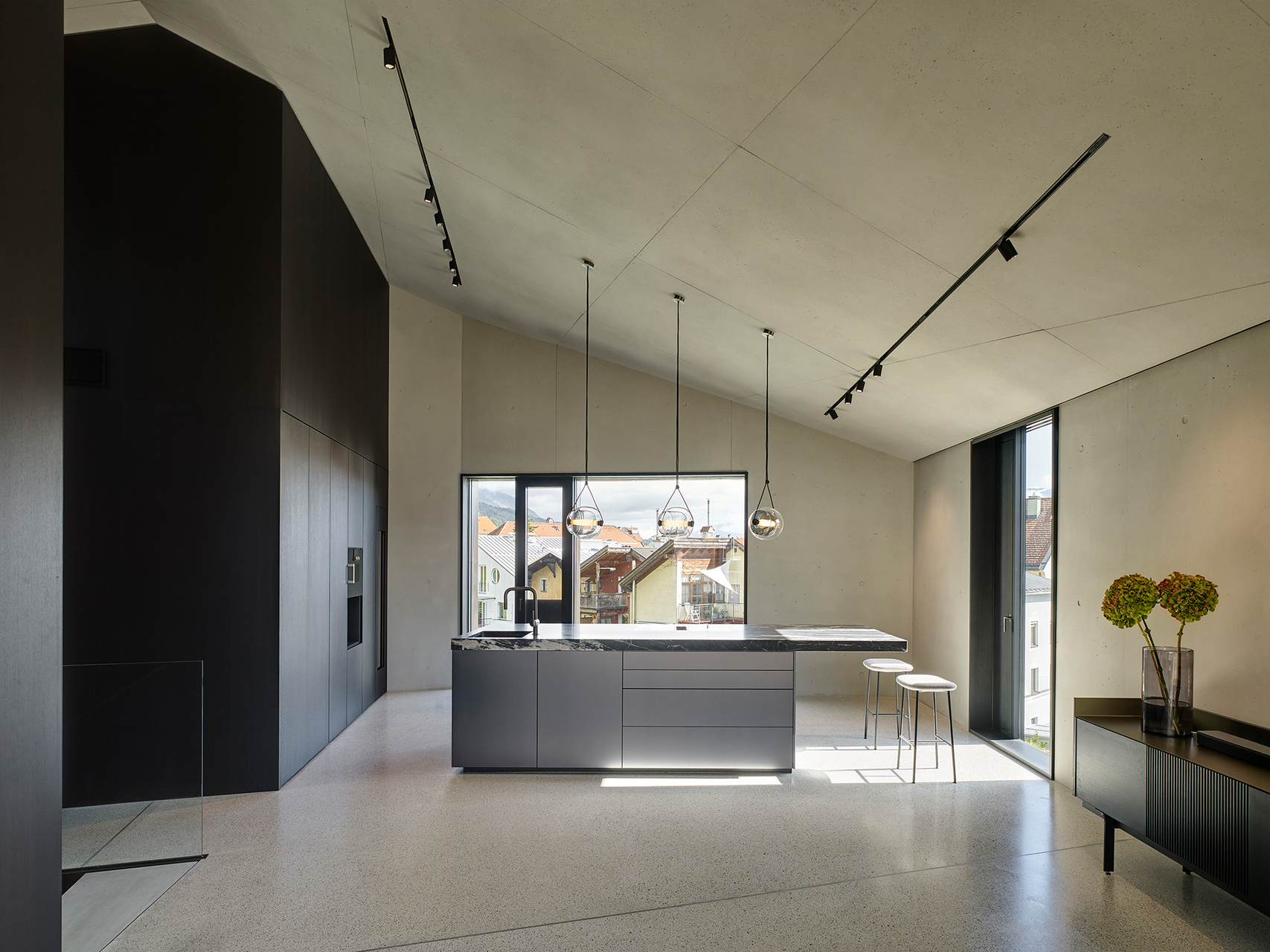 Das auf Grund des Bauzustands nicht mehr zu erhaltende Bestandsgebäude wurde mit einem terrestrischen Laserscanner vermessen, der signifikante Merkmale offenbarte, auf deren Basis eine gestalterisch zeitgemäße und präzise Übersetzung erfolgen konnte. Aufbauend auf dem Laserscan wurden die besondere Morphologie des Altbaus, die geometrischen Abweichungen, Ungenauigkeiten, Einschnitte und Kanten herausgearbeitet.