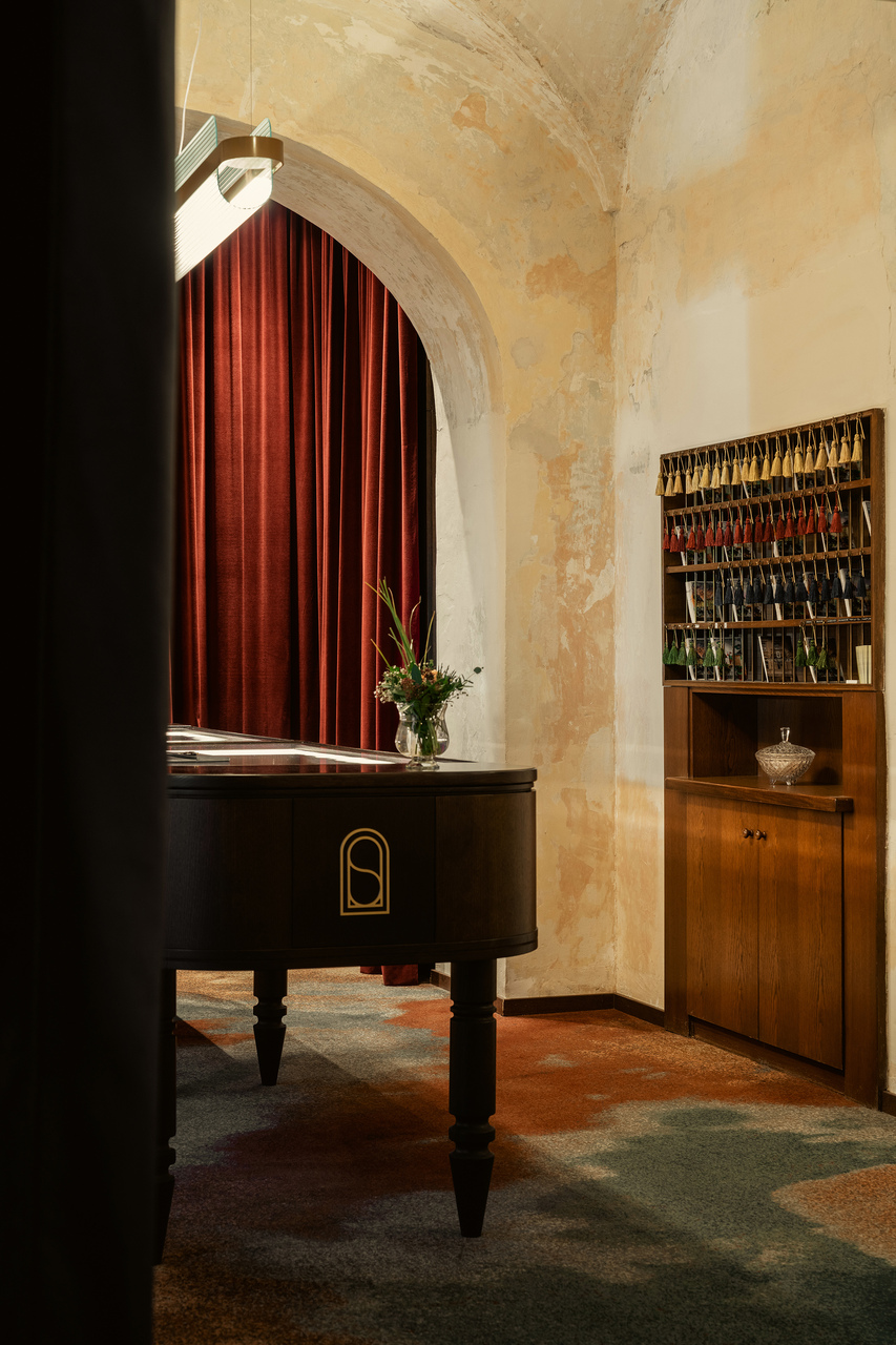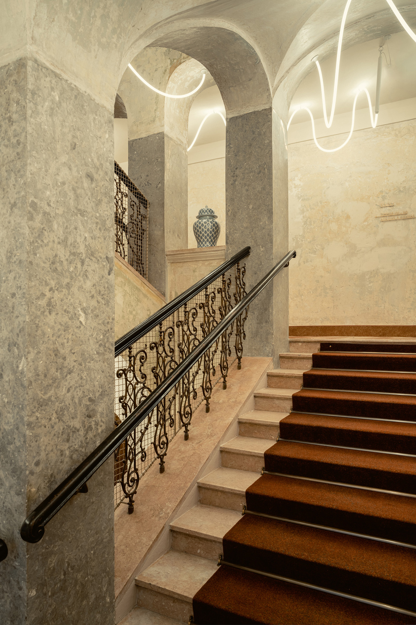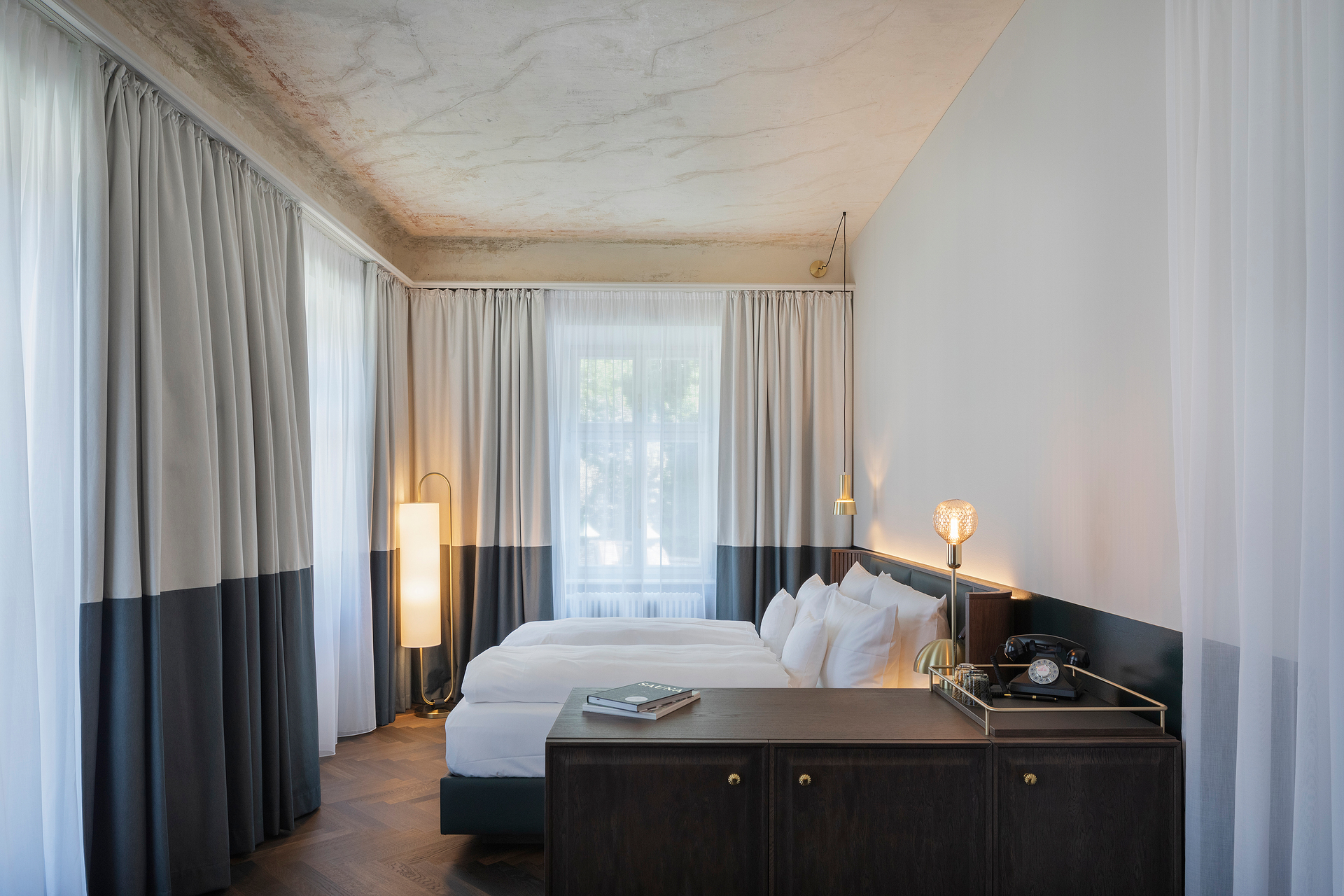 Wendet man sich am Eingang nach links, auf der Westseite des Hauses, gelangt man in den über mehrere Stockwerke reichenden, knapp 700 m² umfassende Spa-Bereich (350 m² indoor, ca. 330 m² Terrasse mit Pool), der sich über den Bestands- und einen Neubau erstreckt. Letzterer war erforderlich, weil der Baukörper im Anschluss an das Haus Straubingerplatz 1 in seiner Struktur über der neuen Poolterrasse nicht gehalten werden konnte und durch einen Glasvorbau mit vorgesetzter Lamellenfassade ersetzt wurde. „Durch die großflächige Verglasung ist der Baukörper zum Tal hin geöffnet. Den Gästen bietet sich ein freier Blick auf die umliegende Landschaft. Die vorgesetzten Holzlamellen wiederum verhindern unerwünschte Einblicke, sodass die Intimität der Räume gewährleistet bleibt“, erklärt Markus Kaplan, BWM Designers & Architects. Mit dieser Neugestaltung wurde auch die ursprüngliche Fuge zwischen Hotel Straubinger und dem Haus Straubingerplatz 1, die erst Anfang des 20. Jahrhunderts baulich geschlossen wurde, wieder geöffnet. Für beide Häuser wurde ein kuratiertes Kunstkonzept mit Andrea von Goetz und Schwanenfliess ausgearbeitet. (Text: Roman Höllbacher)