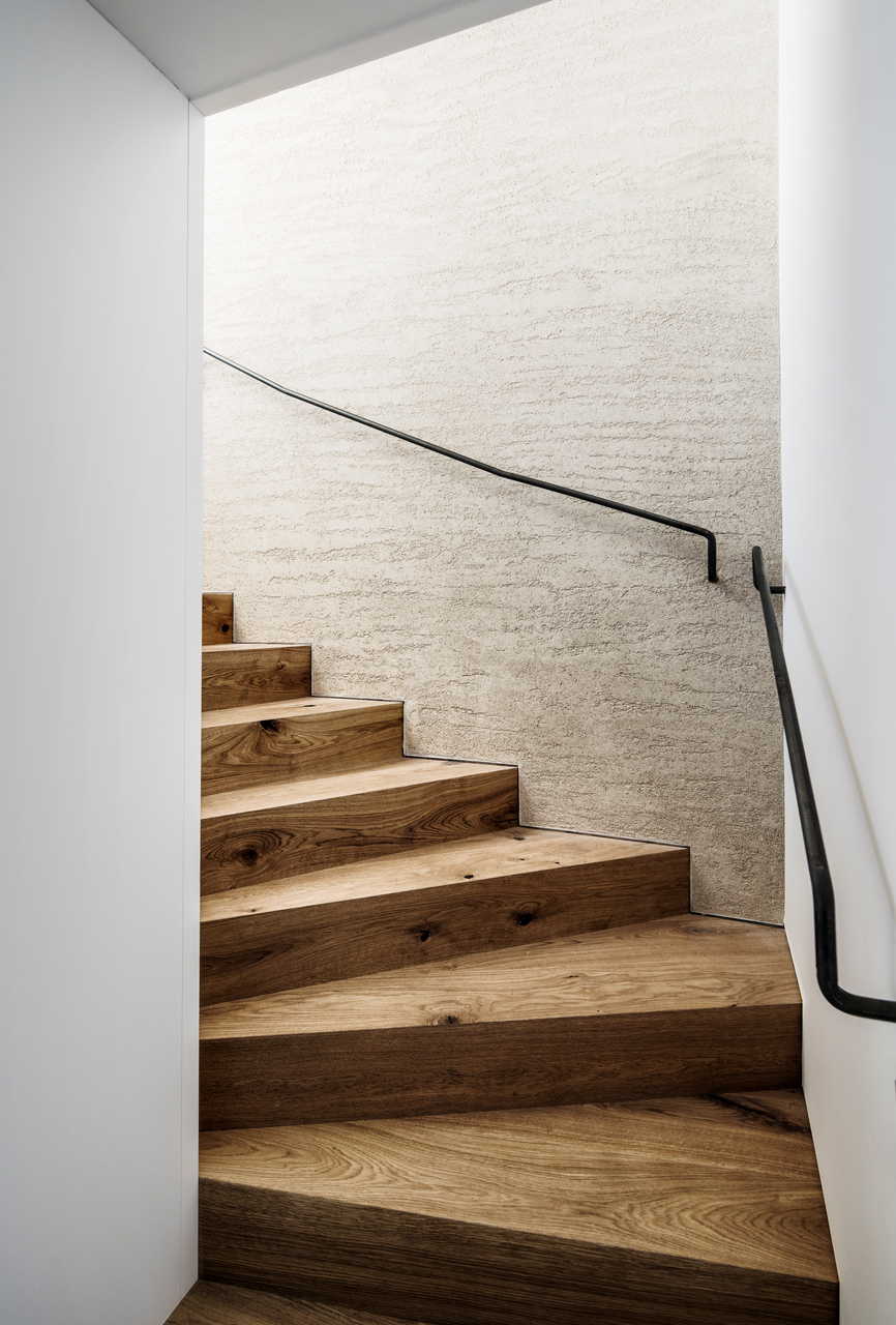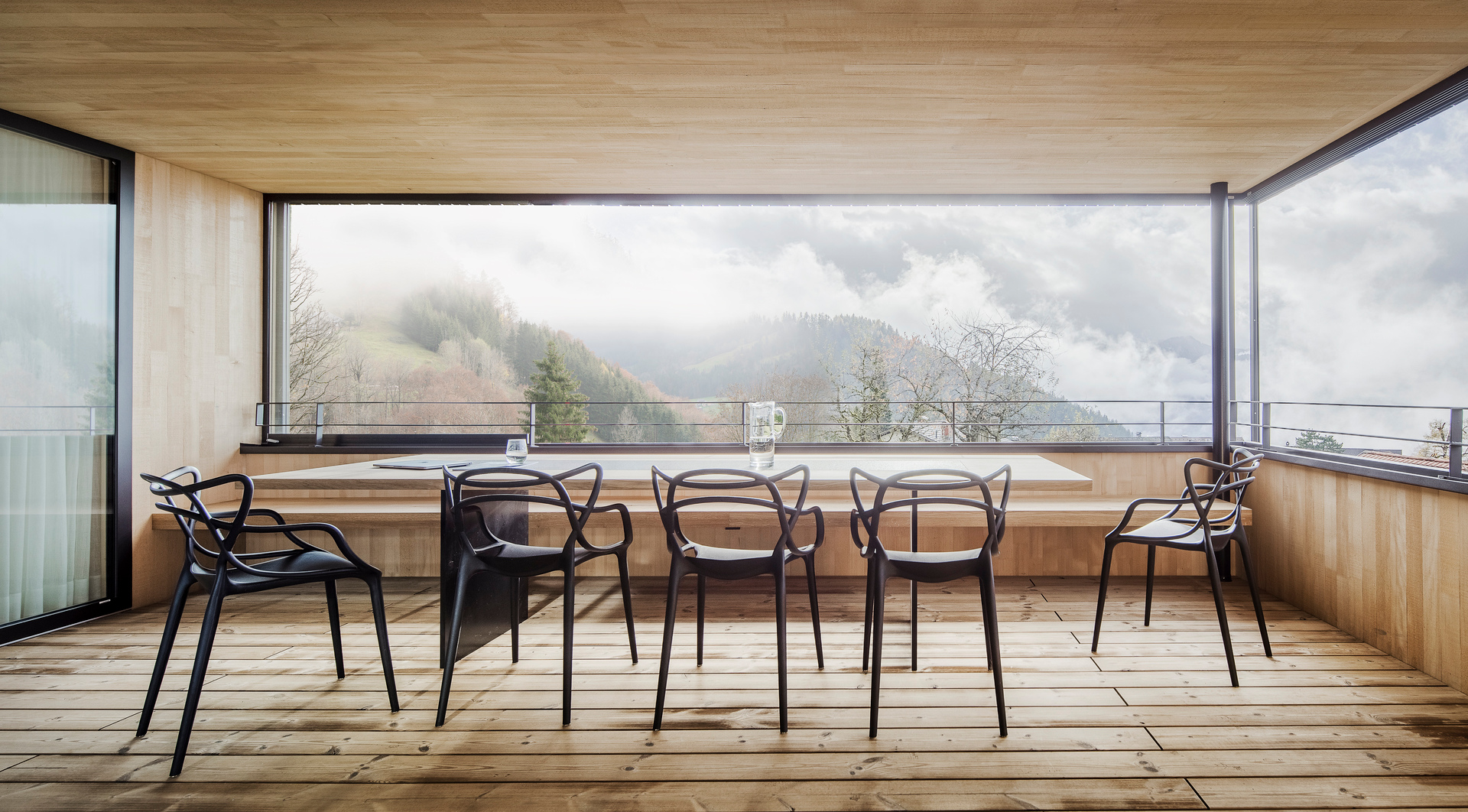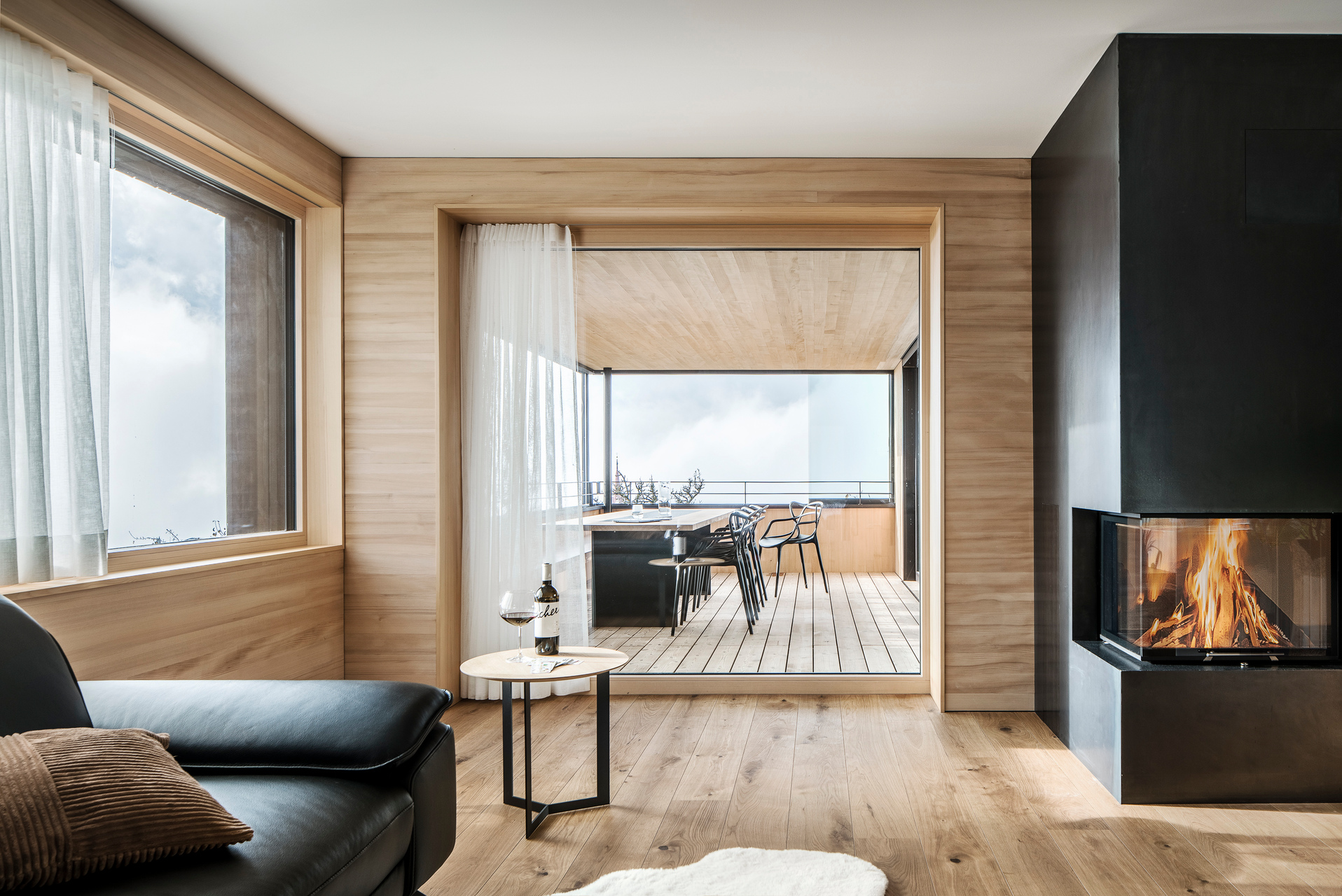 Der Bestand wurde thermisch saniert, die Fenster durch Passivhausfenster in Holz ersetzt. Eine schwarze, stehende Holzfassade bettet die großzügige Kubatur stimmig ihre Umgebung ein. Die Innenräume sind mit Weißtannentäfer, Lehmoberflächen und Holzböden gestaltet. Das Haus wird mit einer Wärmepumpe, Erdsonde und Photovoltaik-Anlage über den Fußboden beheizt. Das Haus Matino beweist, dass sich bestehende Strukturen, moderne Technik, sowie ein traditionelles Verständnis von Handwerkskunst verbinden lassen. Die eingesetzten Materialien vermitteln Behaglichkeit, geschickt geschnittene Räume und Blickachsen in die Natur schaffen hohe Wohnqualität. Absolutes Highlight: Der Dachpool mit Infinity-Blick auf die umgebende Bergwelt. Dieser geglückte Aus- und Umbau zeigt, dass sich Bestand sehr gut langfristig und nachhaltig aufwerten lässt. (Text: Isabella Marboe, nach einem Text der Architekten)