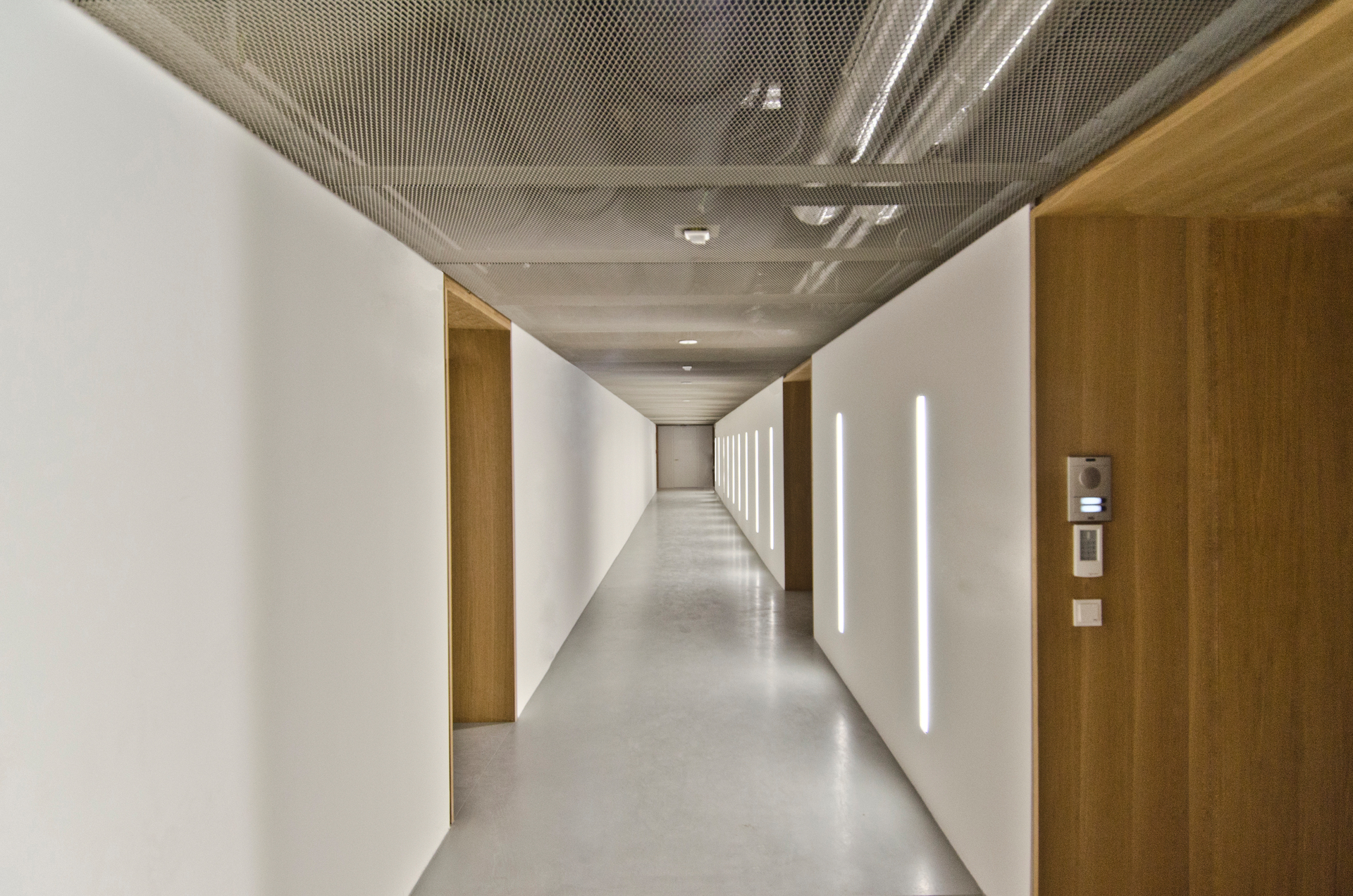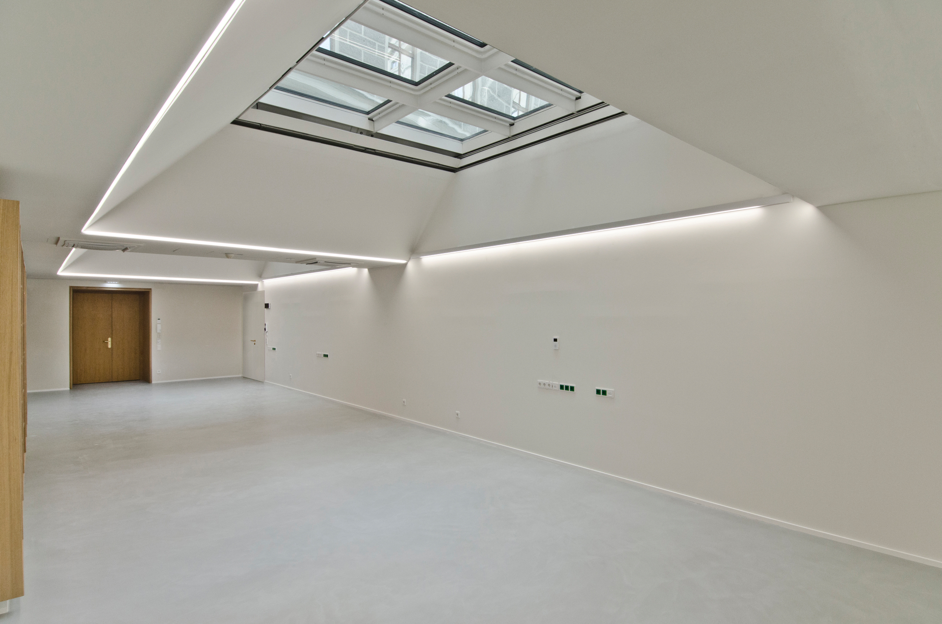 Spätere Einbauten wurden entfernt und die massiven Heizkörper in den Gängen durch eine Außenwand-integrierte Heizung ersetzt.