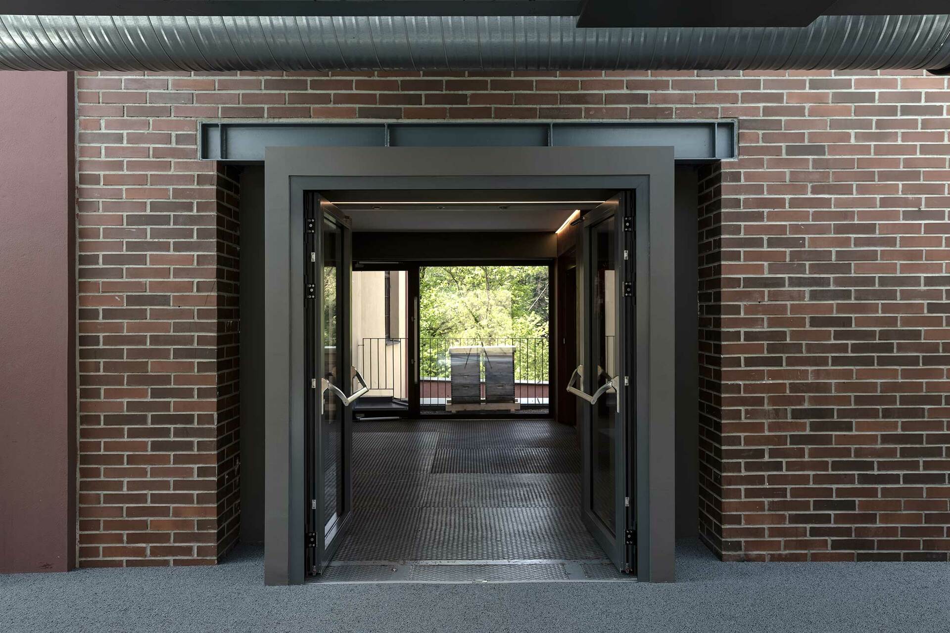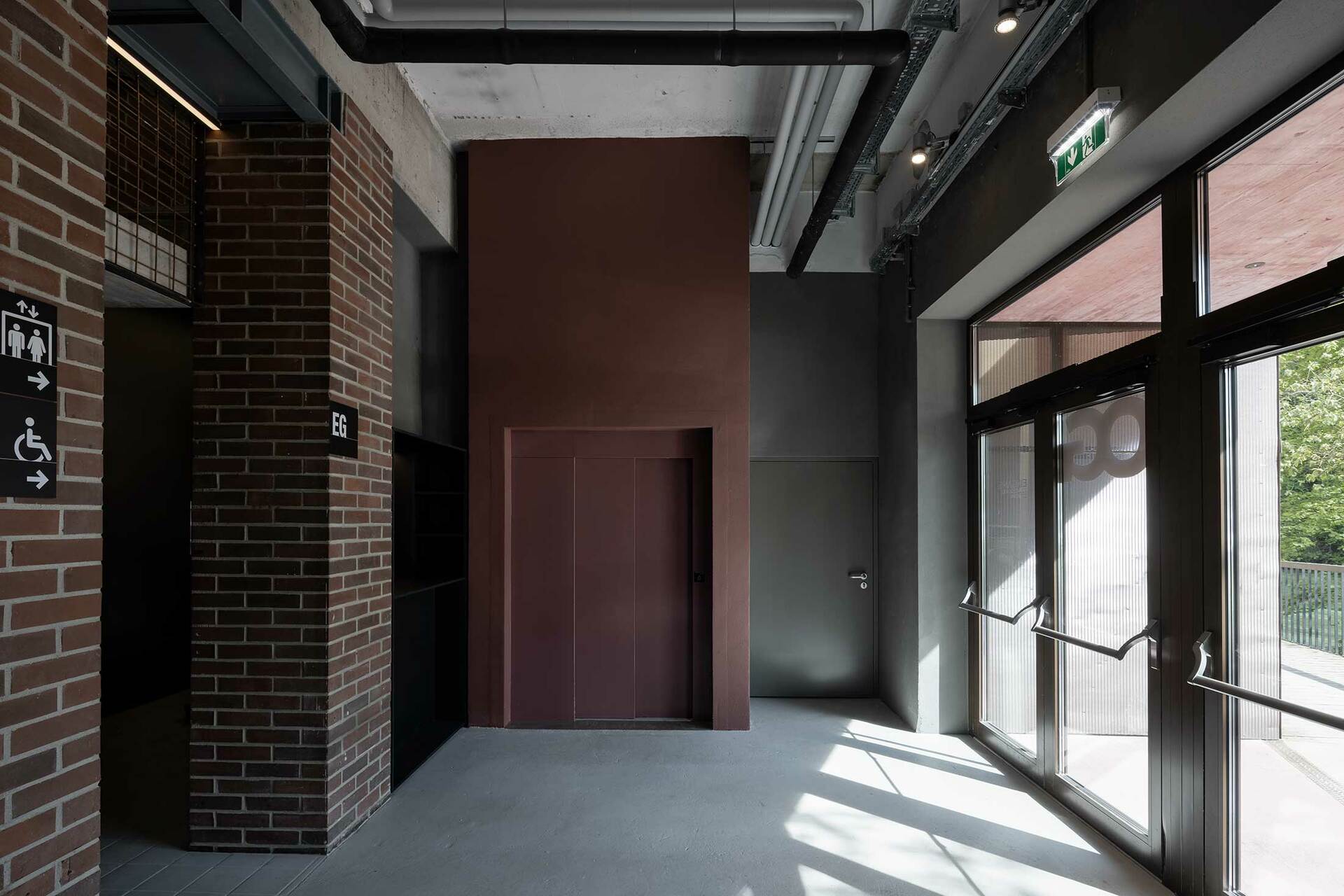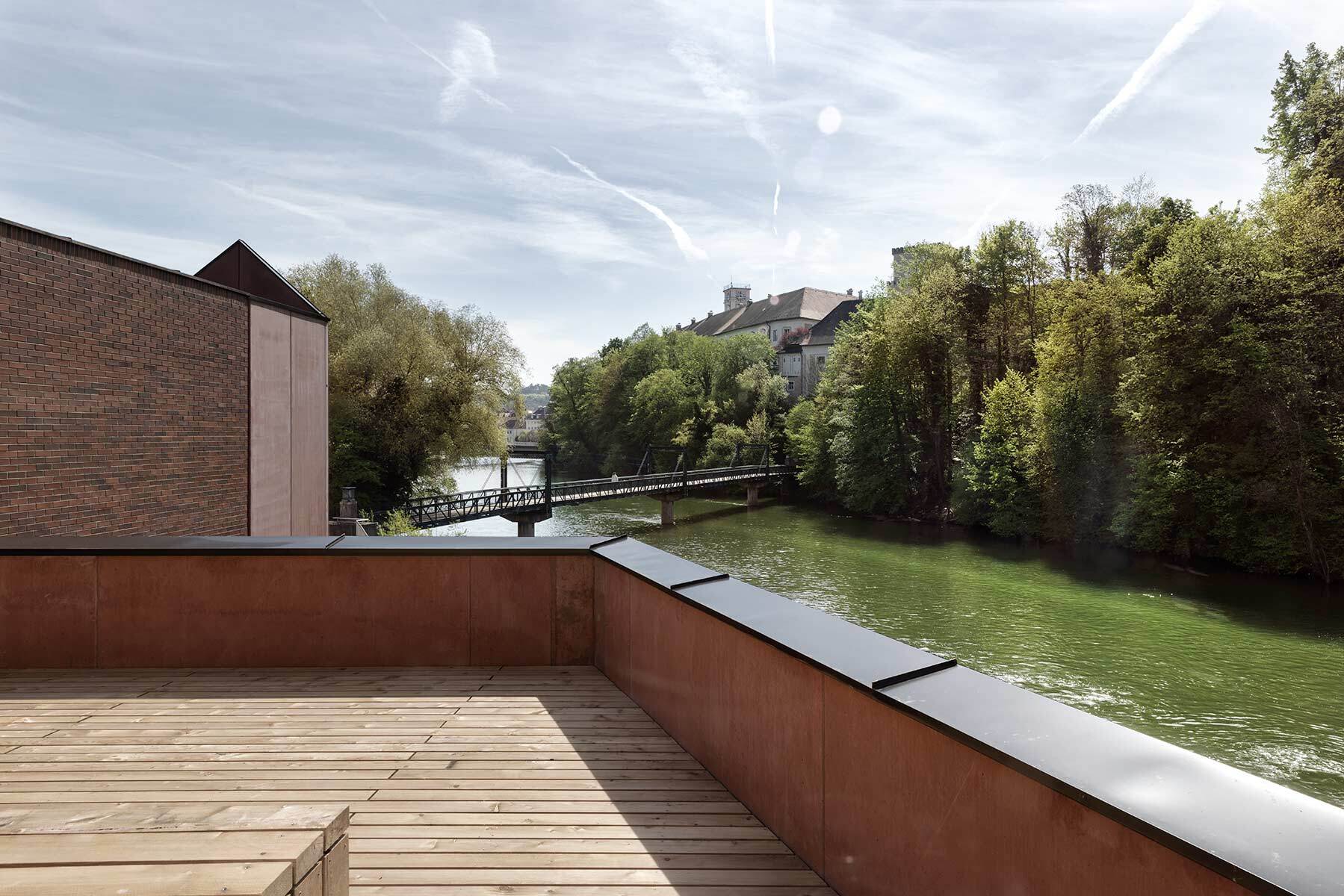 Die einzelnen Zonen und Funktionen im Haus wurden räumlich neu stukturiert, sodass alle Bereiche unabhängig voneinander funktionieren. Das offene Foyer dient einerseits als niederschwelliger Zugang in den Ausstellungsbereich, andererseits als Gastgartenerweiterung und Wohnzimmer für die Stadt. Es bildet mit dem Museums-Café und den WC-Anlagen eine eigene Zone, die unabhängig von den Öffnungszeiten des Museums betrieben werden kann. Der Nebeneingang dient als Liefereingang für das Café und als direkter Zugang in die Büroräume im ersten Obergeschoss.