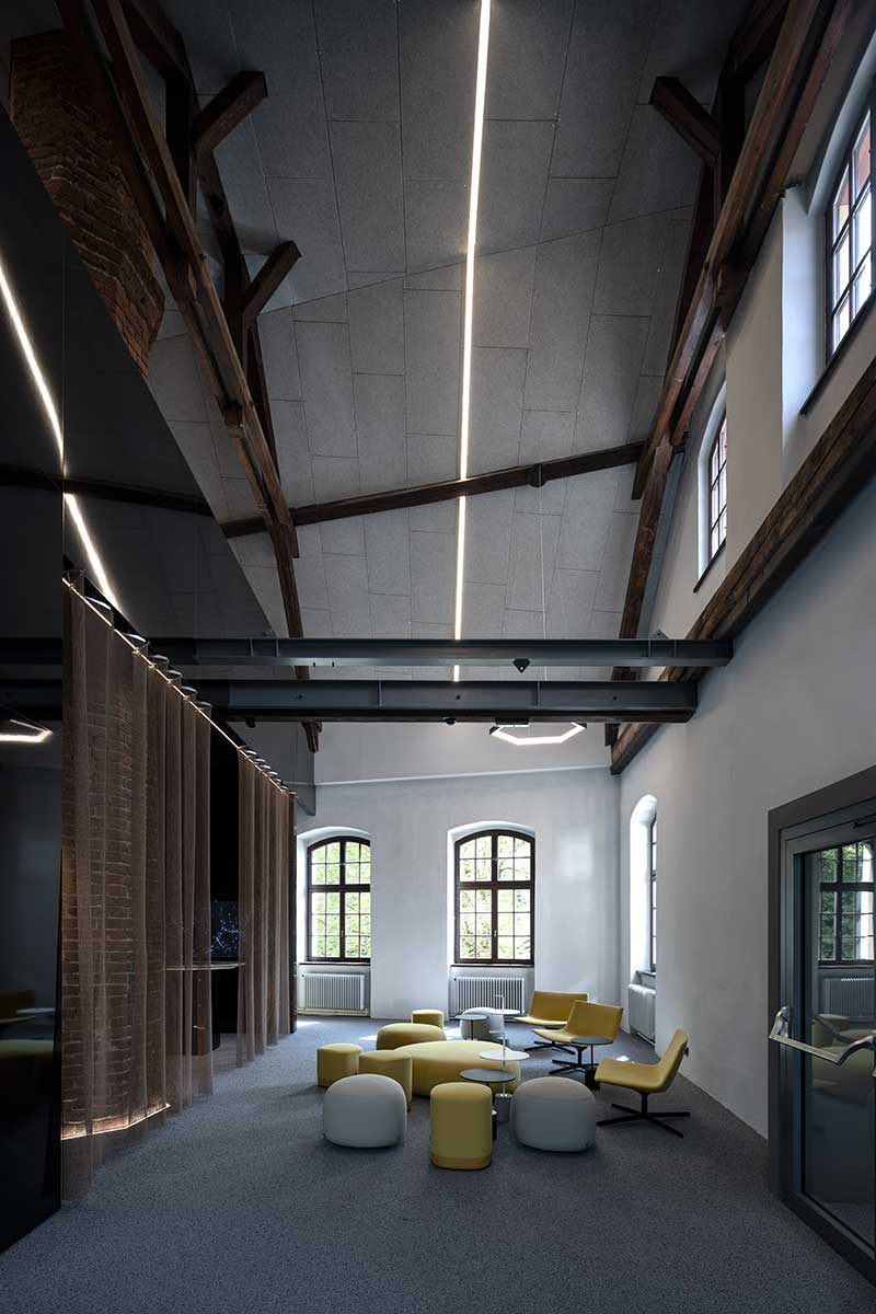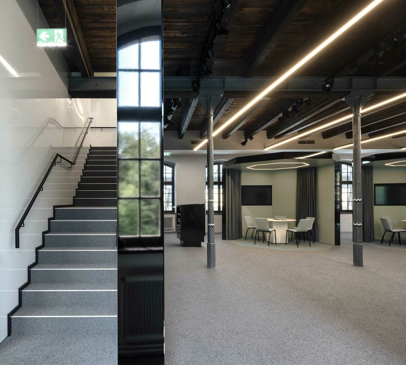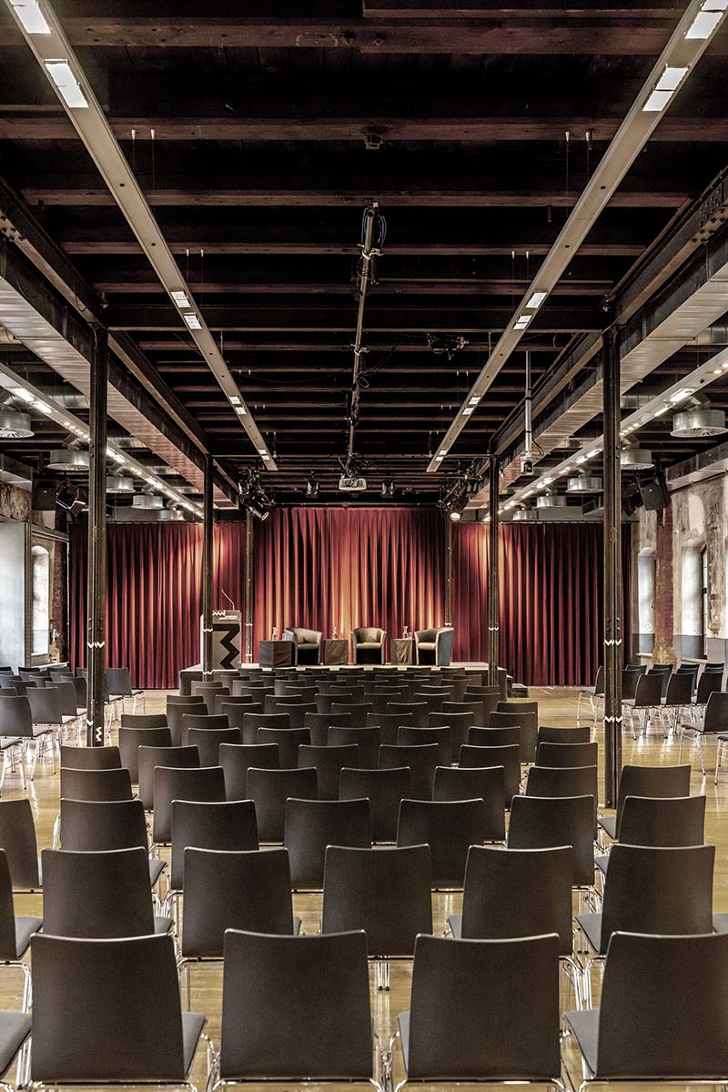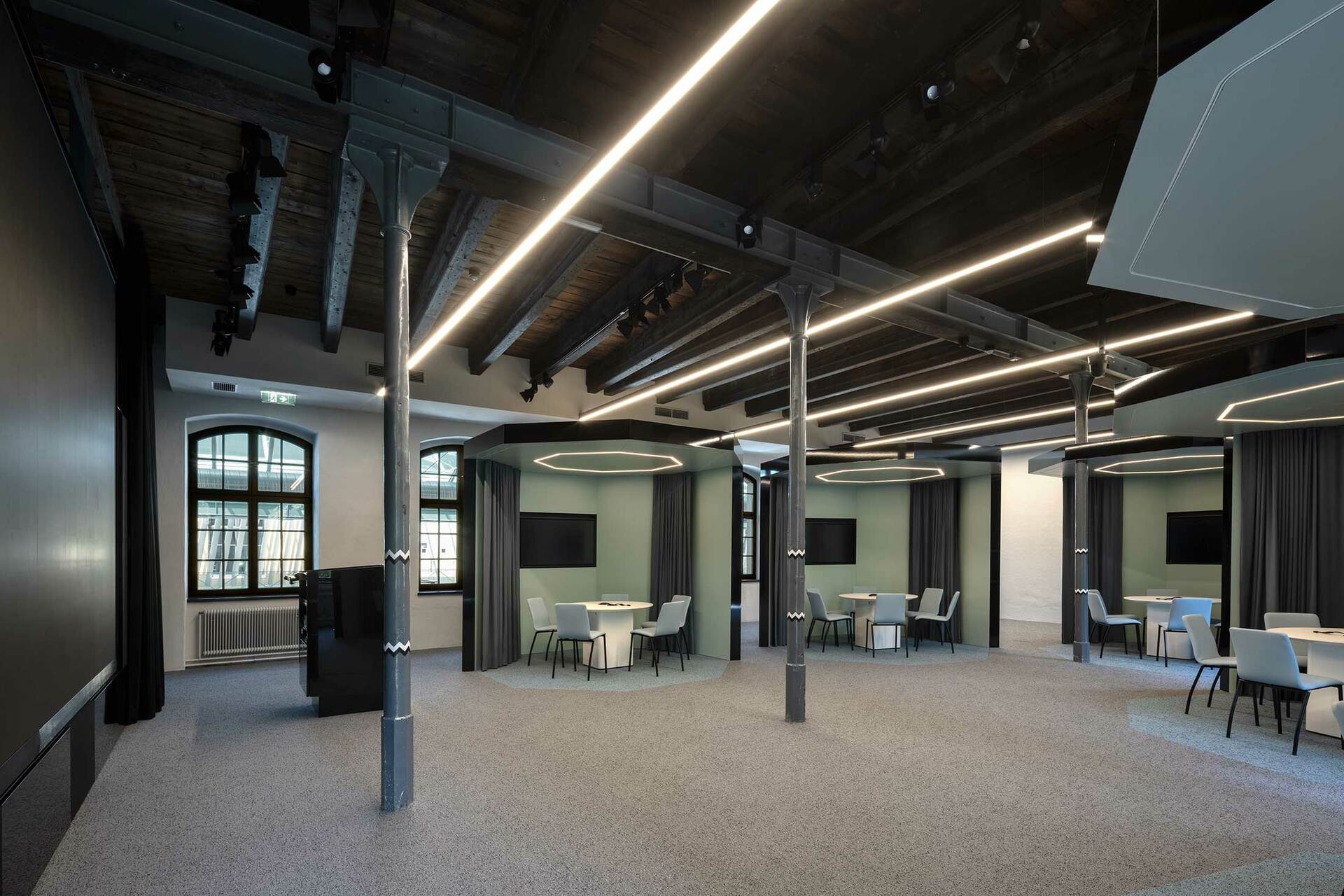 Die einzelnen Zonen und Funktionen im Haus wurden räumlich neu stukturiert, sodass alle Bereiche unabhängig voneinander funktionieren. Das offene Foyer dient einerseits als niederschwelliger Zugang in den Ausstellungsbereich, andererseits als Gastgartenerweiterung und Wohnzimmer für die Stadt. Es bildet mit dem Museums-Café und den WC-Anlagen eine eigene Zone, die unabhängig von den Öffnungszeiten des Museums betrieben werden kann. Der Nebeneingang dient als Liefereingang für das Café und als direkter Zugang in die Büroräume im ersten Obergeschoss.
