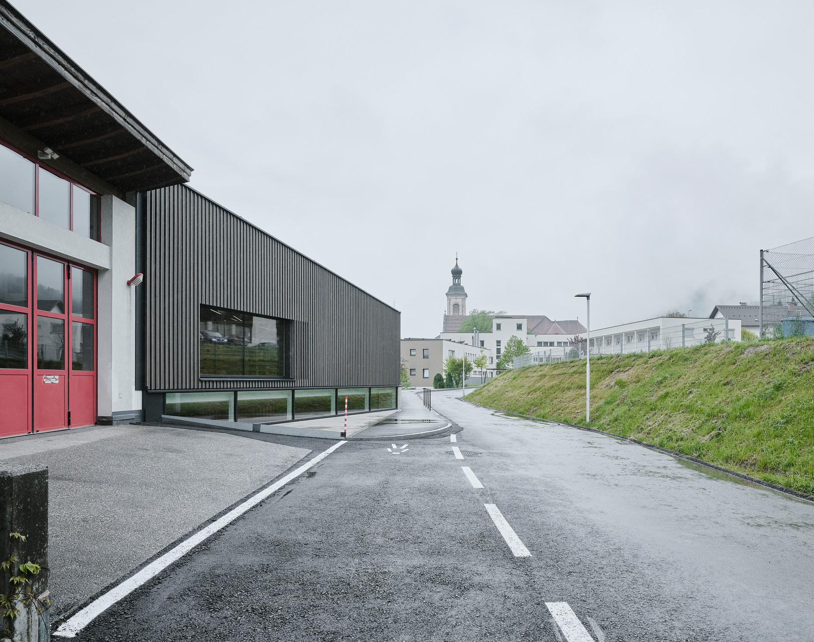 Eva López und Markus Malin platzierten den längsorientierten Neubau so auf dem Hanggrundstück, dass er sich an seiner Schmalseite kompakt an ein bestehendes Gebäude anfügt, an der Längsseite jedoch klar vom Bestand abgerückt ist, wodurch zwischen Alt und Neu ein großzügiger Freiraum geschaffen werden konnte. Der Baukörper nimmt die vorhandenen Gebäudefluchten und Dachgeometrien auf und entwickelt sie mit einem Faltdach aus geneigten Dachflächen zu einer eigenständigen Figur weiter, deren charakteristisches Erscheinungsbild durch eine Fassade aus achatgrauen Holzlatten unterstrichen wird.